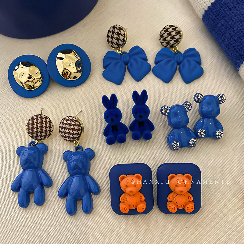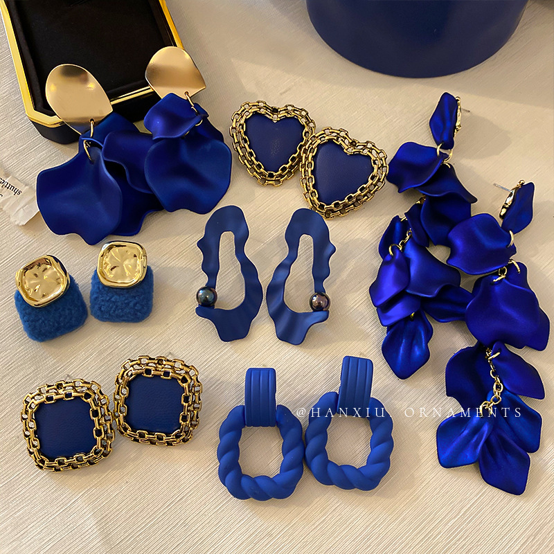 银针克莱因蓝流苏耳环时尚复古几何爱心耳坠ins气质高级感耳饰女