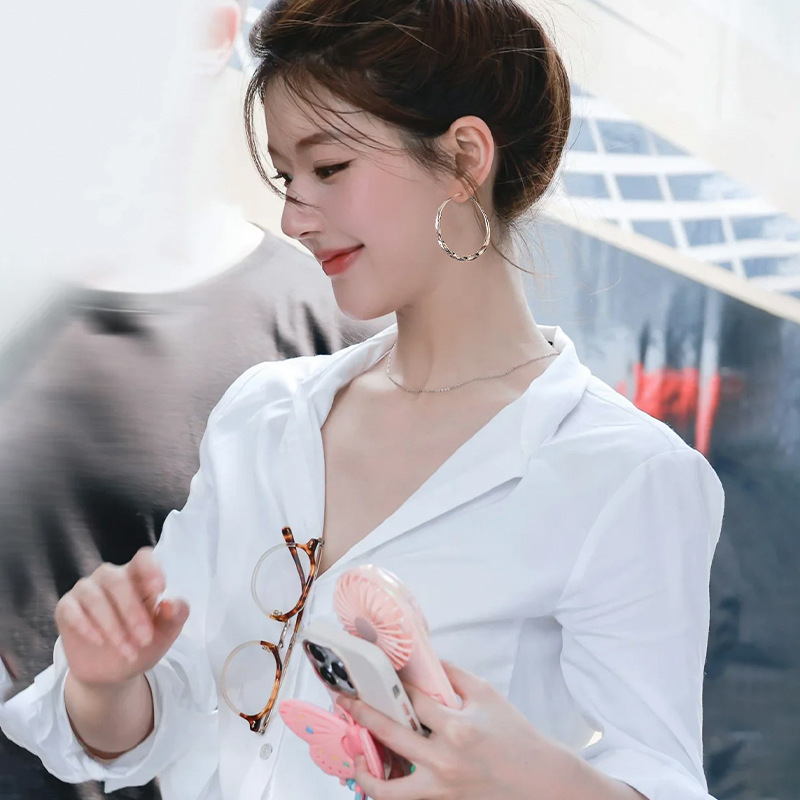 许我耀眼赵露思同款银针圆形耳圈女韩系简约耳环小众设计感耳饰女