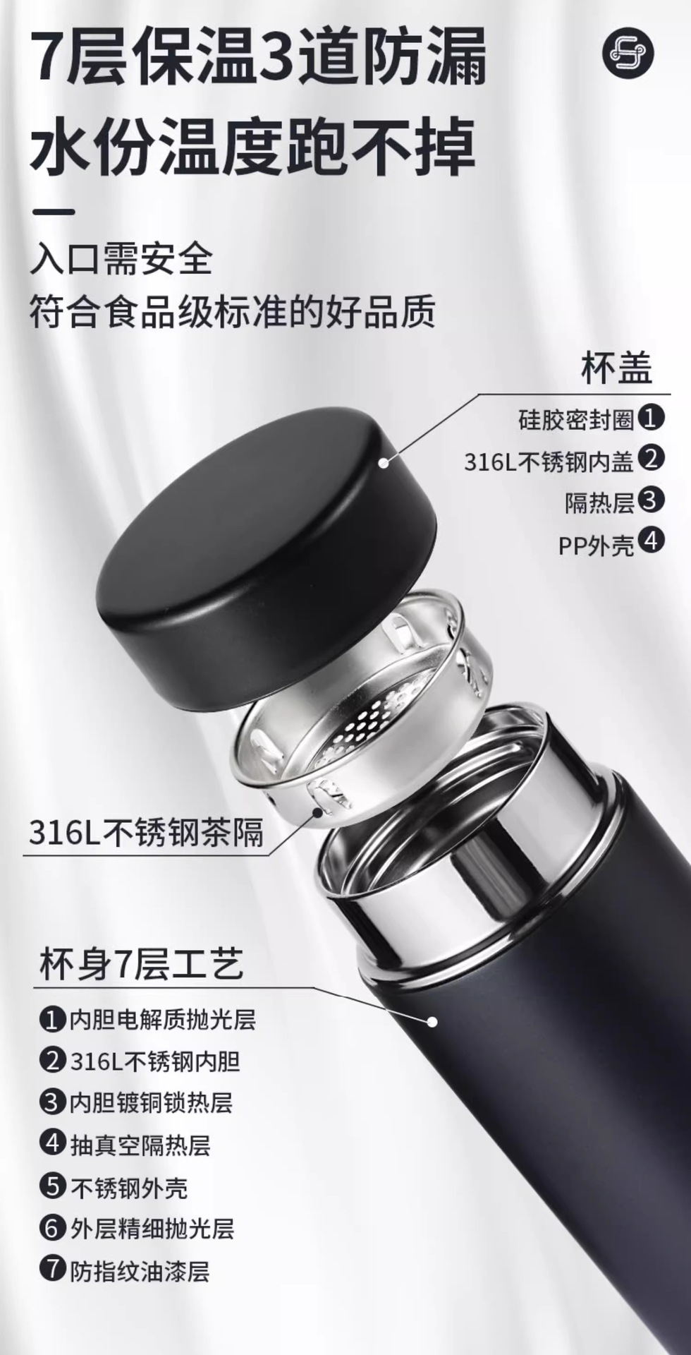 富光保温杯316不锈钢便携大容量茶水杯男士高档商务杯子批发定制