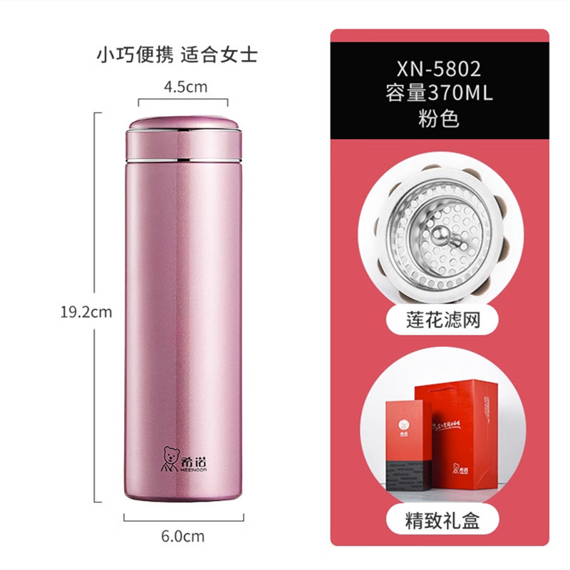 希诺水杯刻字不锈钢保温杯泡茶过滤礼盒粉色送礼茶杯XN5802礼品杯