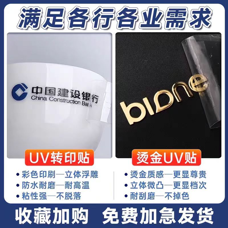 UV转印贴水晶贴烫金水晶标撕膜留字公司LOGO转印贴烫银商标分体标