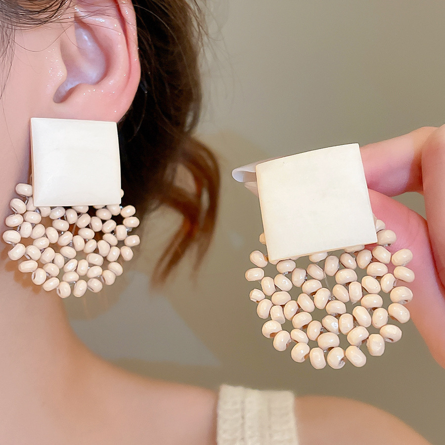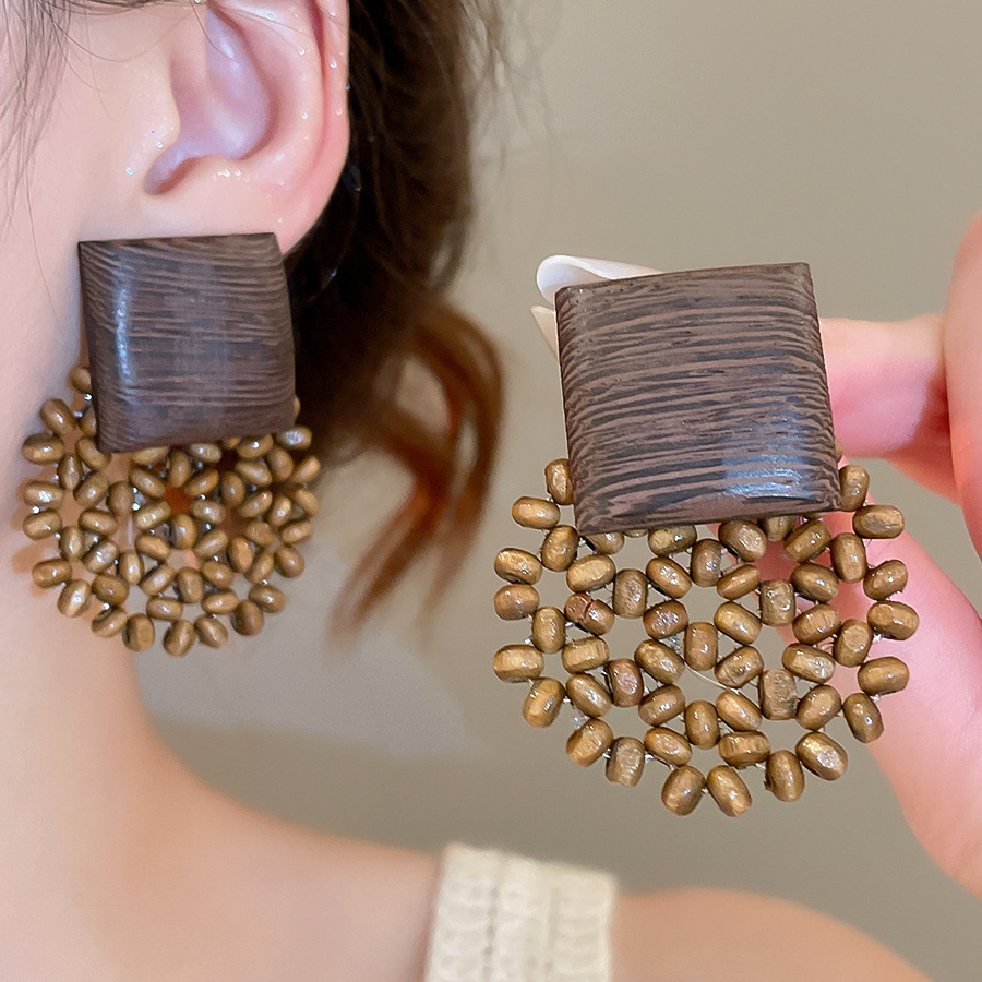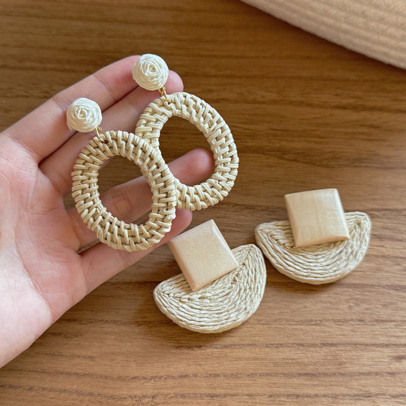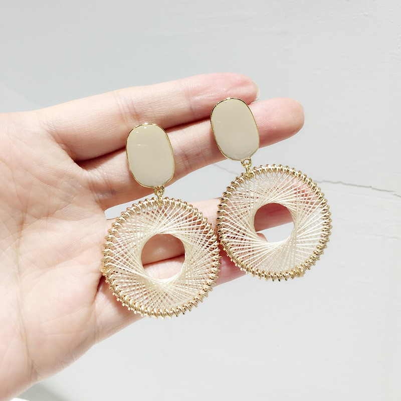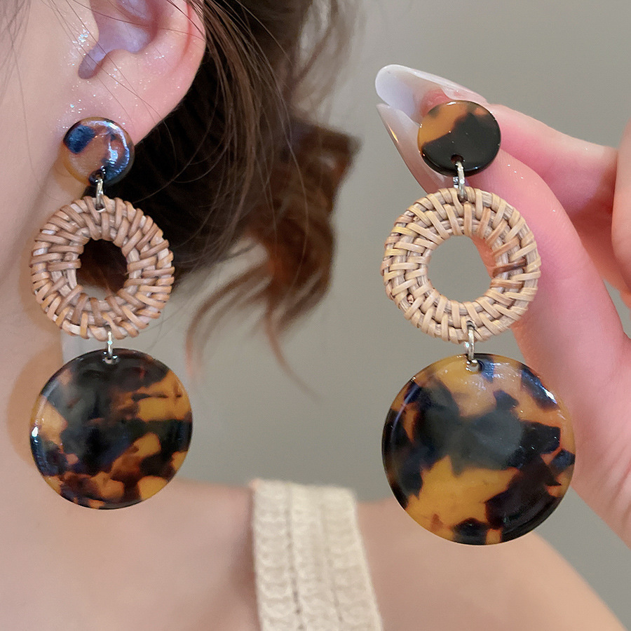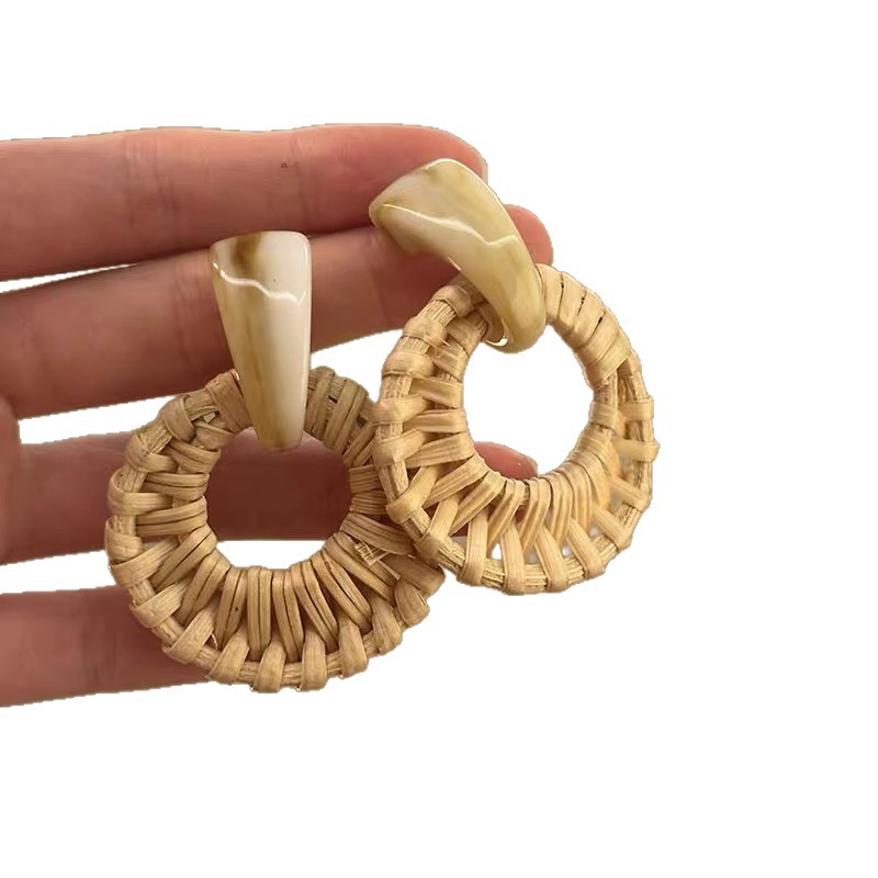 复古民族风银针树脂藤编珠子圆形吊坠耳环时尚百搭耳钉设计感耳饰