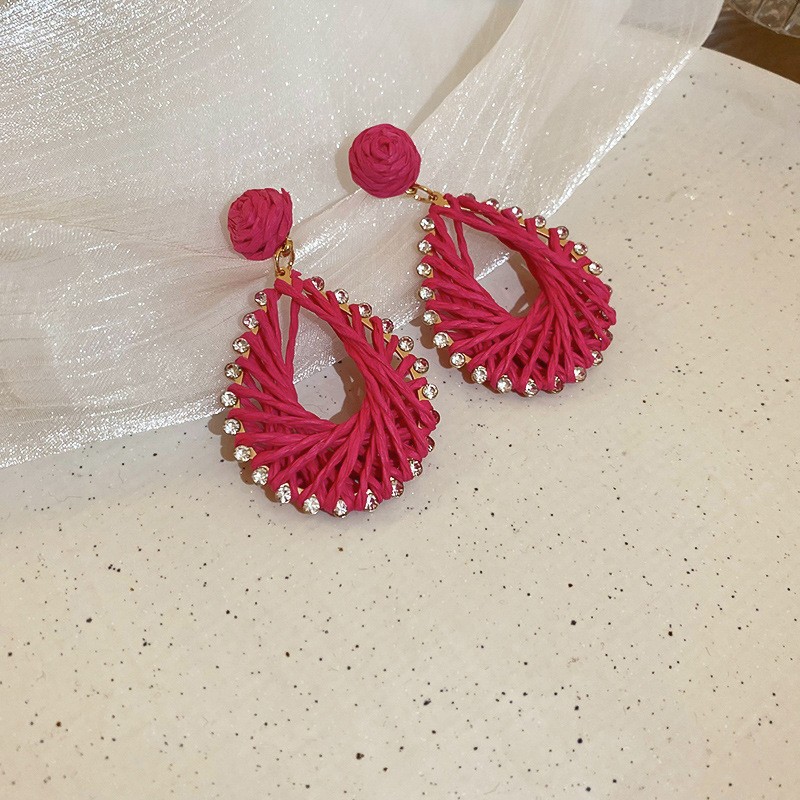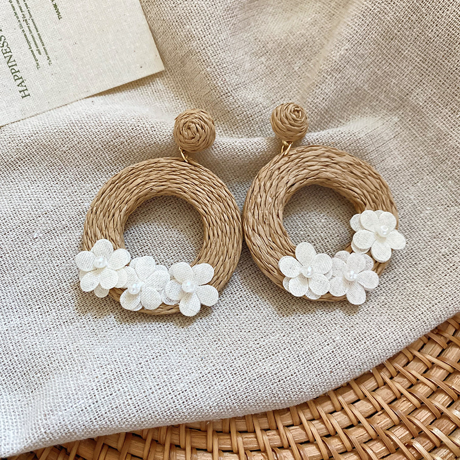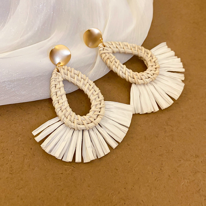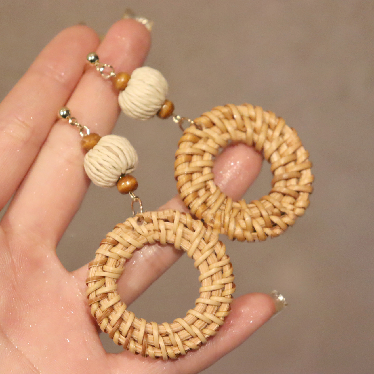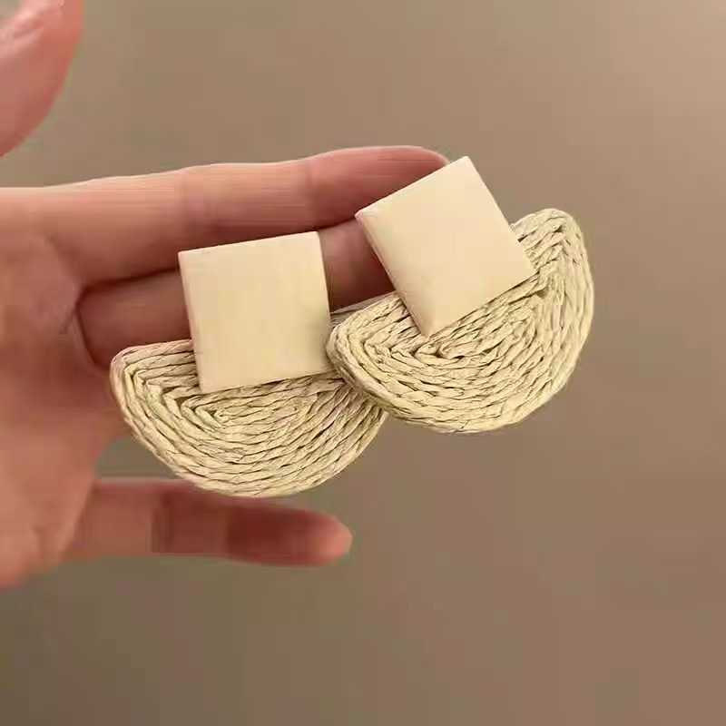 复古民族风银针树脂藤编珠子圆形吊坠耳环时尚百搭耳钉设计感耳饰