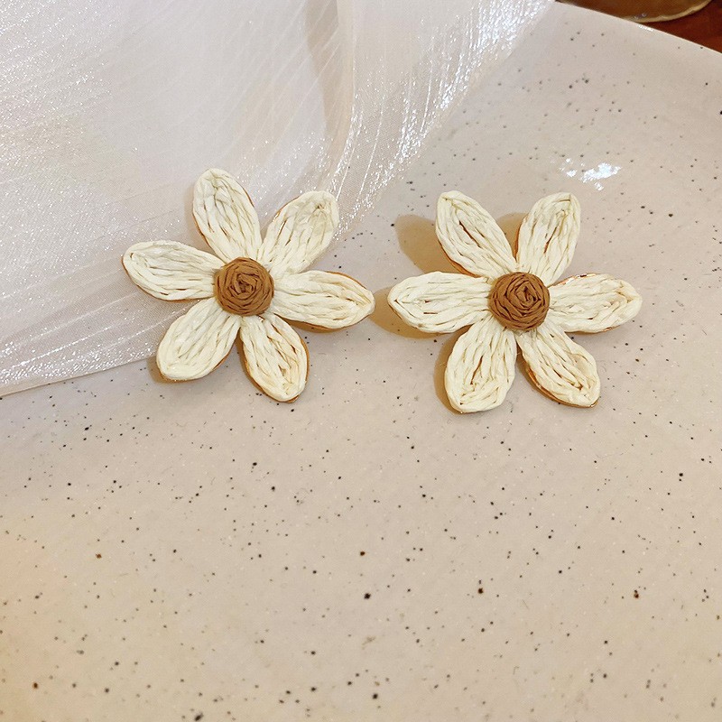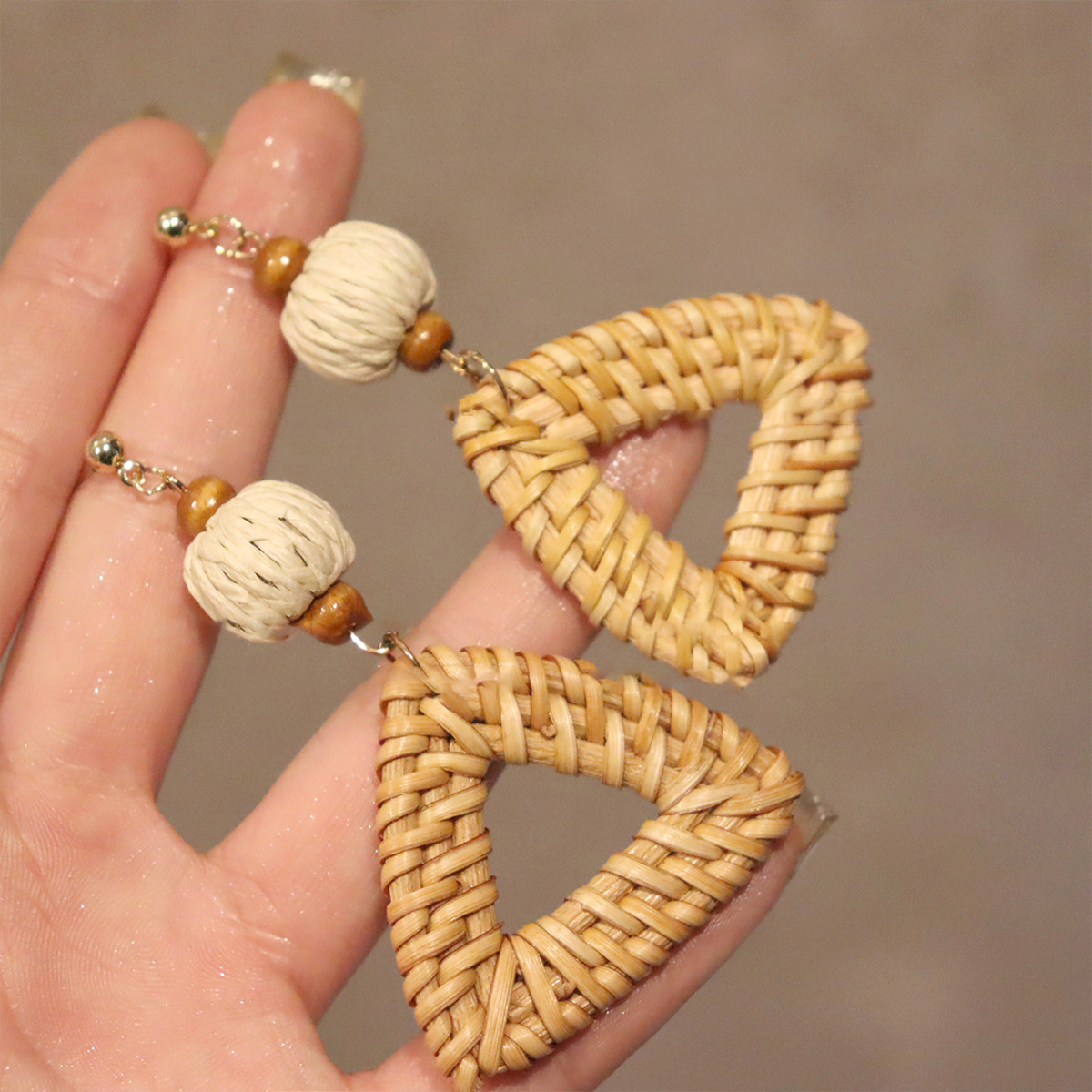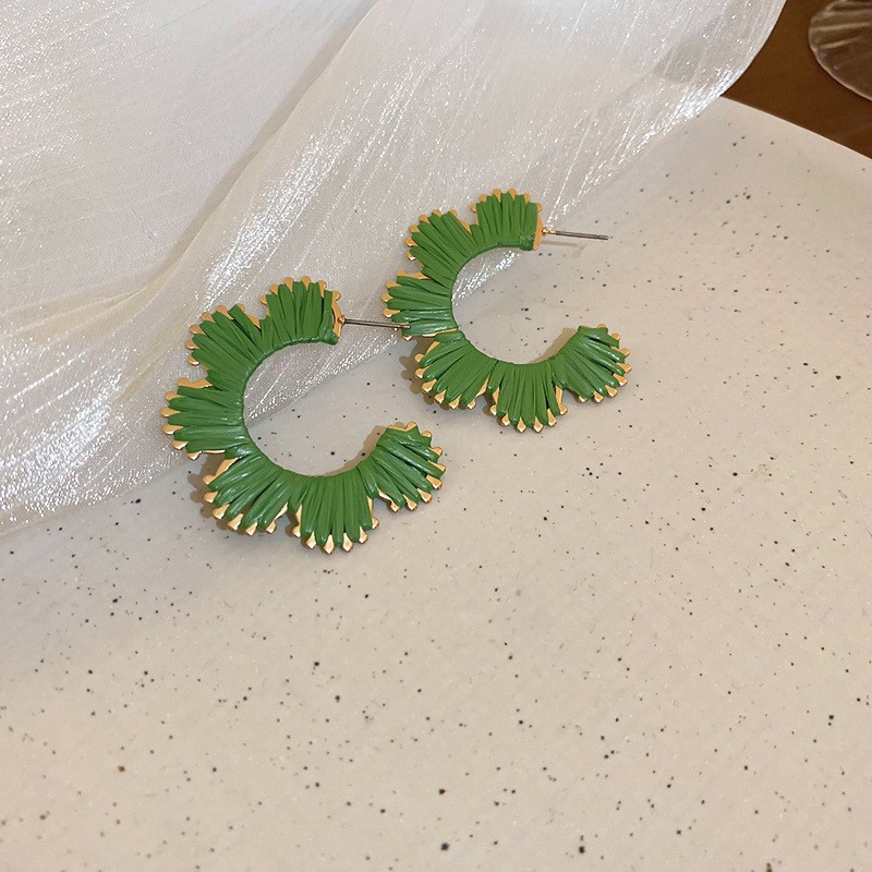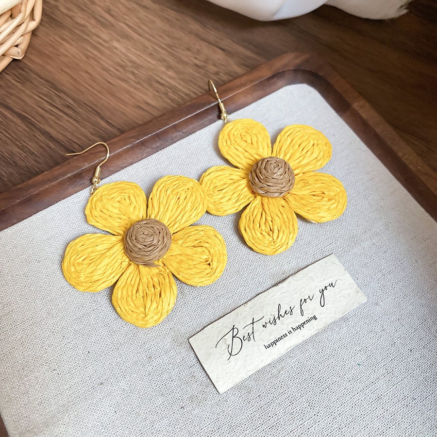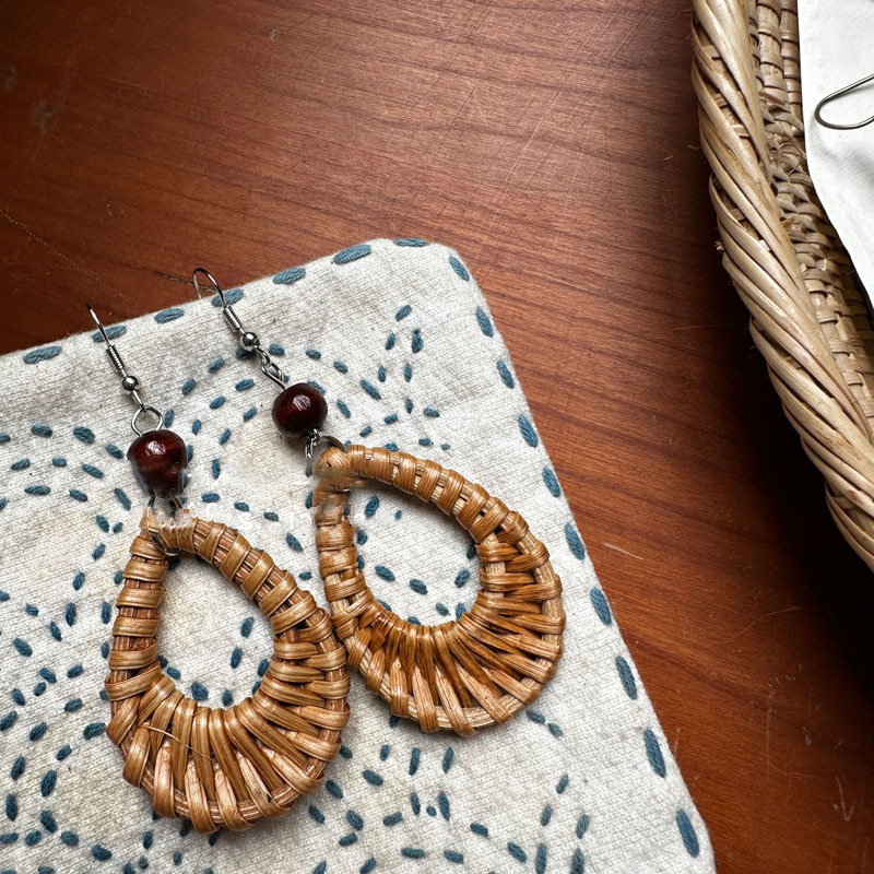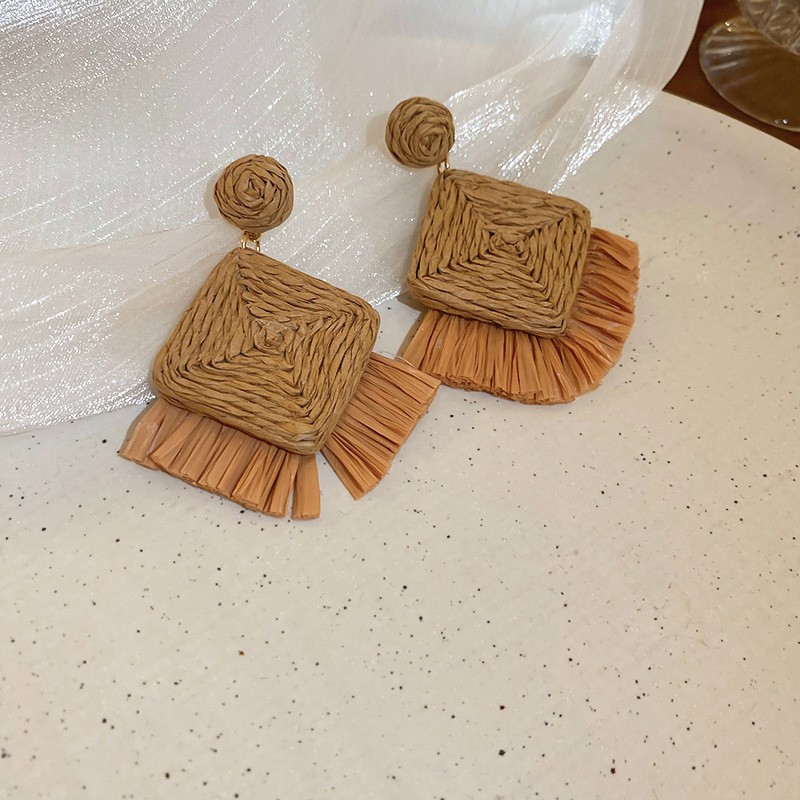 复古民族风银针树脂藤编珠子圆形吊坠耳环时尚百搭耳钉设计感耳饰