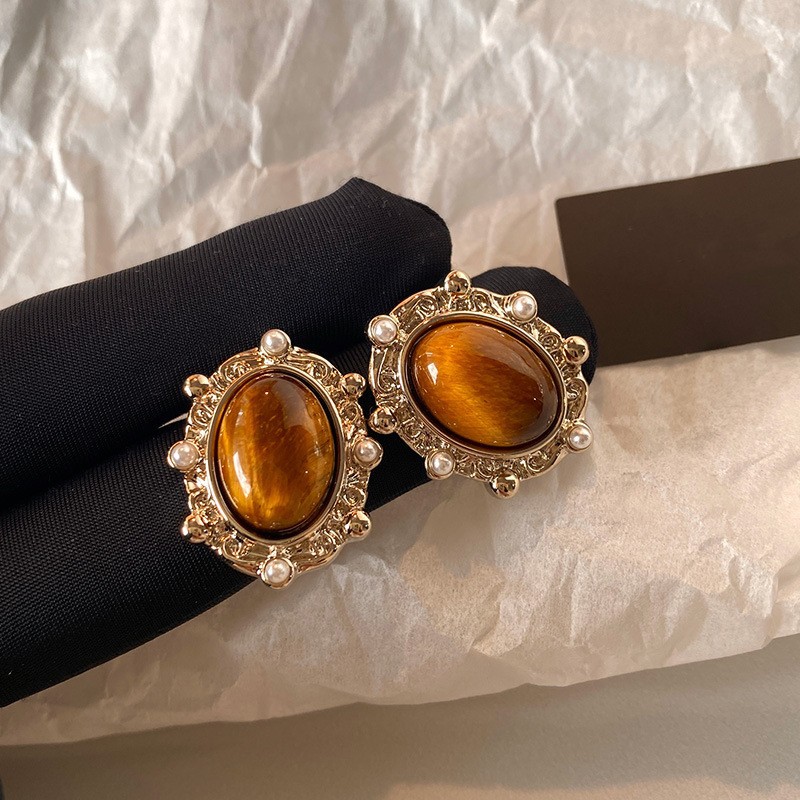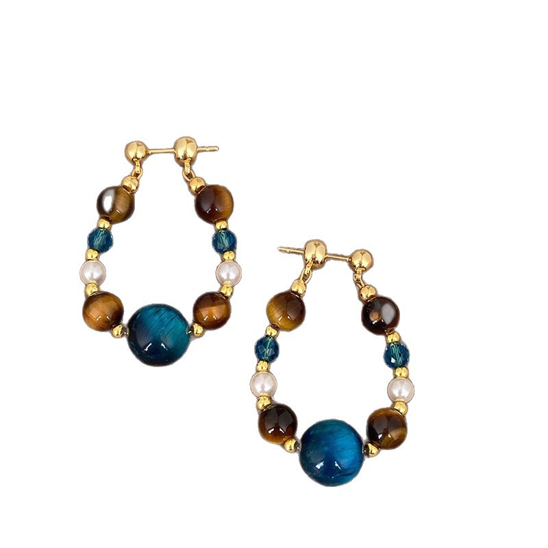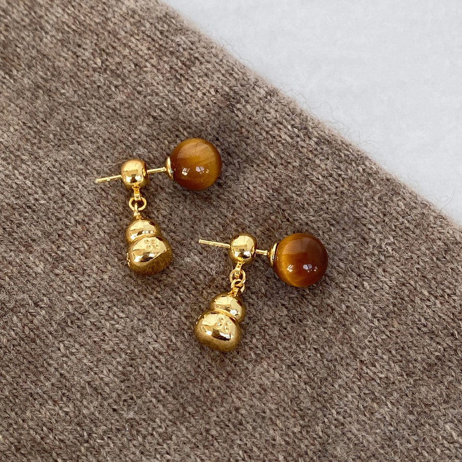 银针珍珠虎眼石水晶串珠水滴吊坠耳环复古耳坠耳钉小众设计感耳饰