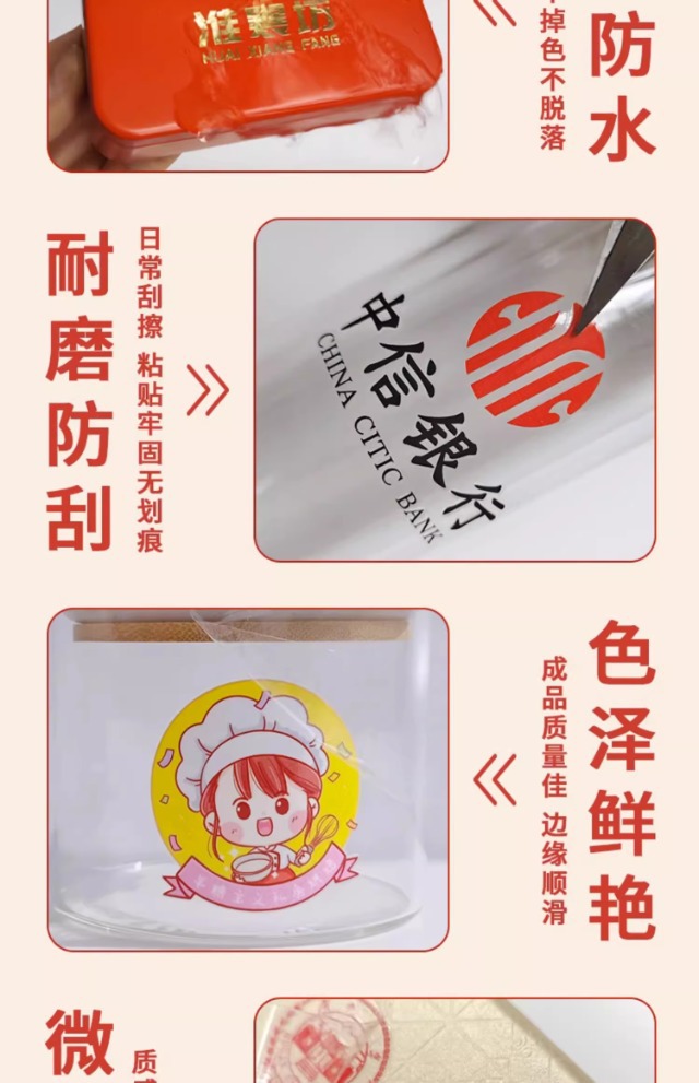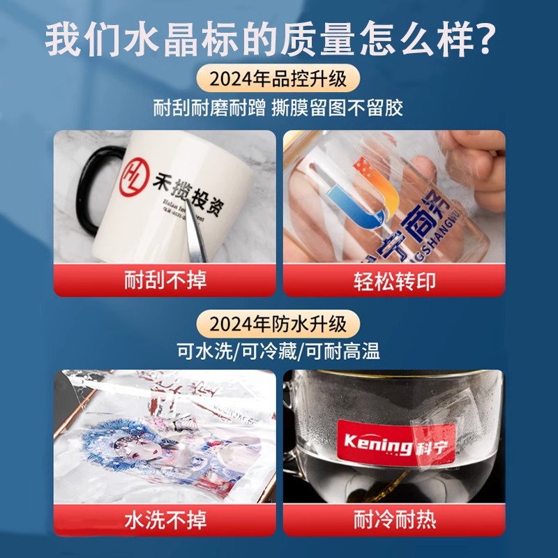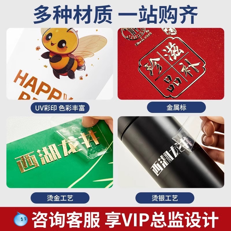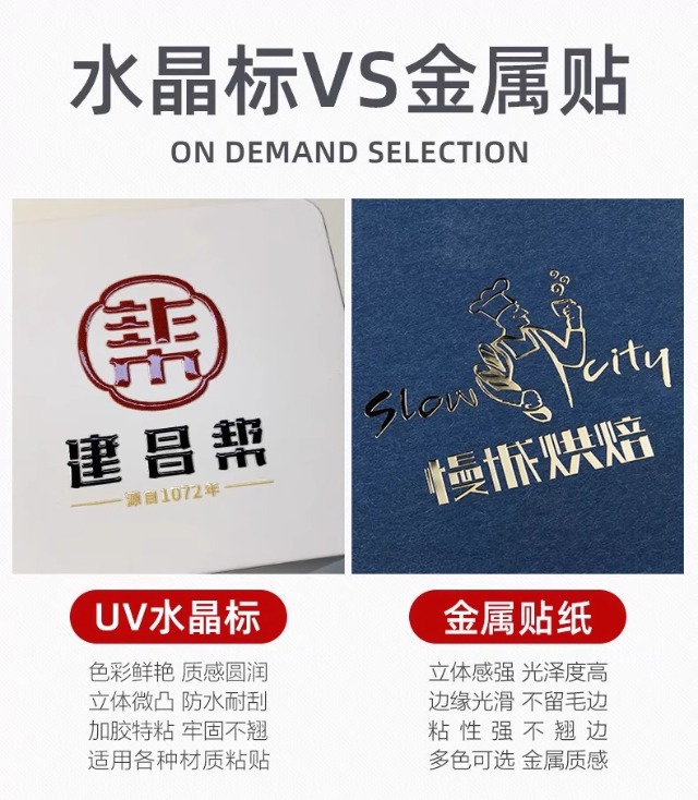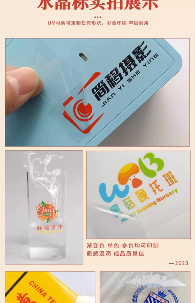水晶标UV转印贴烫金烫银贴LOGO商标二维码撕膜留字镂空透明底贴纸