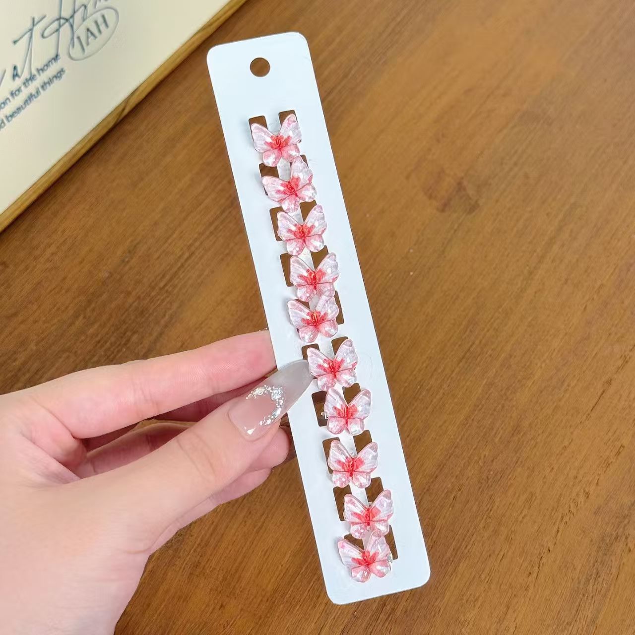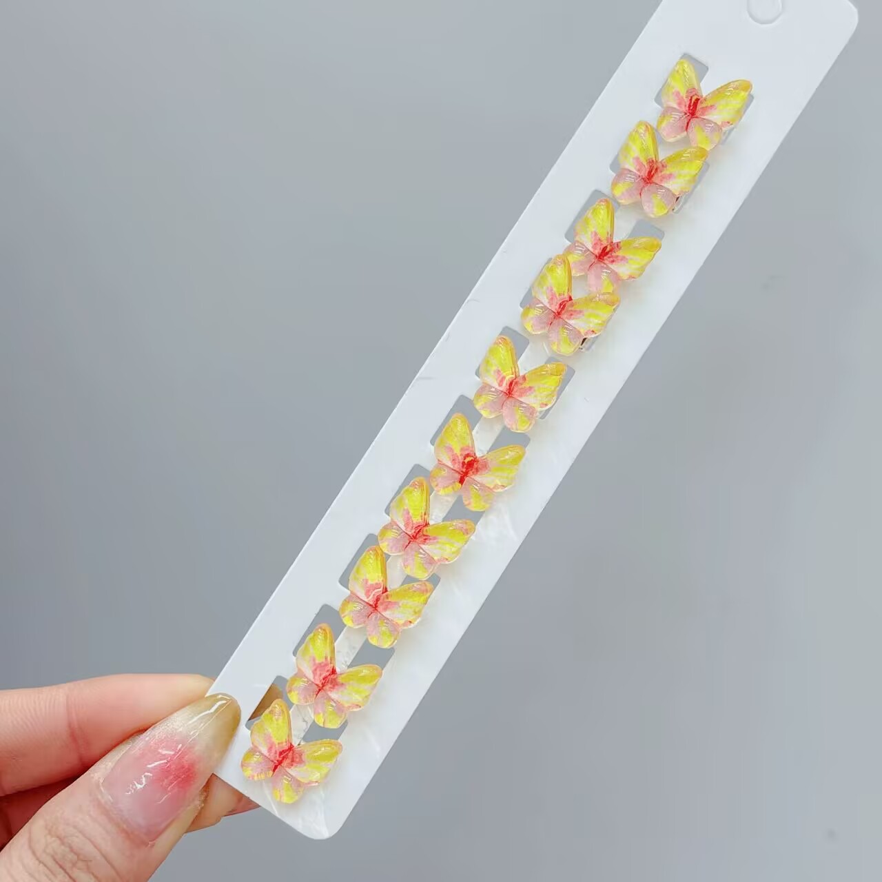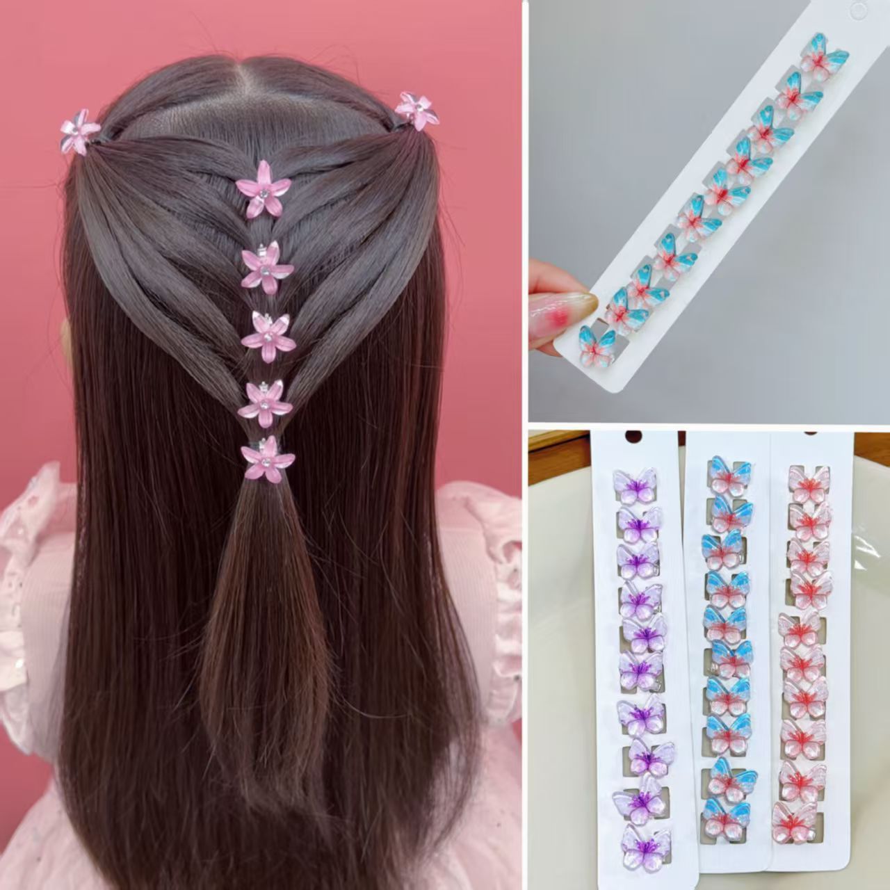 10个装~渐变色蝴蝶豆扣儿童套装可爱盘发小辫子编发不伤发女发夹