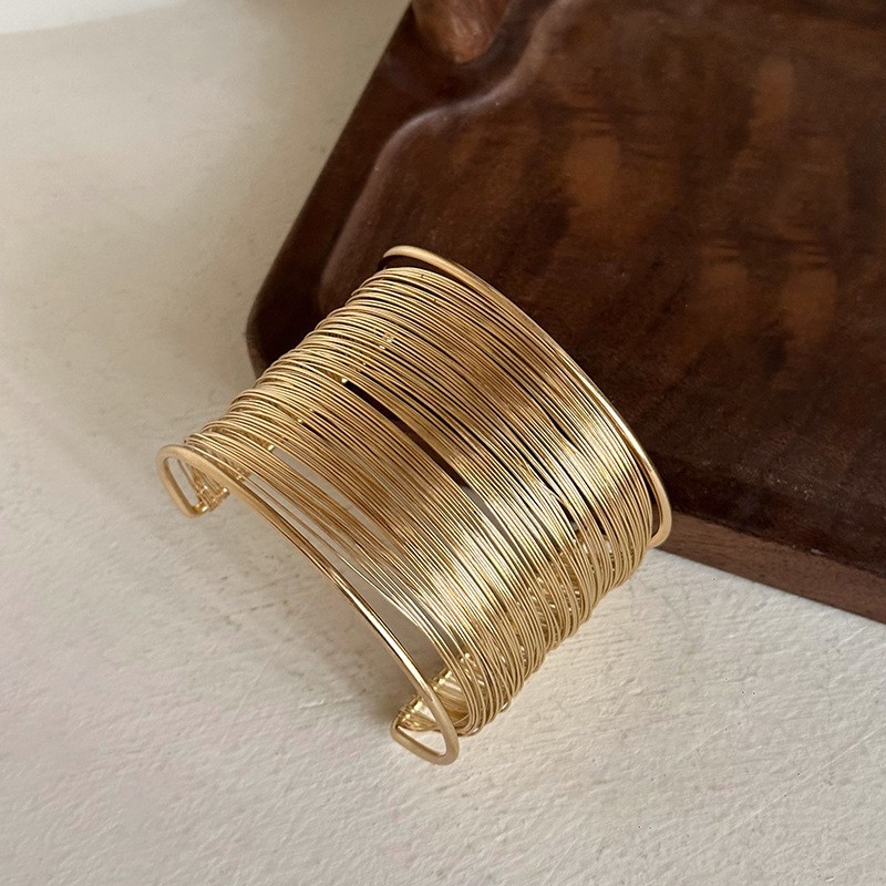 欧美多层铁线开口手镯时尚百搭夸张高级感手环个性设计感小众手饰