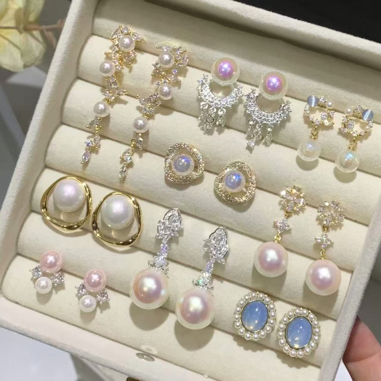银针锆石几何珍珠耳钉秋冬高级感复古优雅耳环轻奢小众气质耳饰女