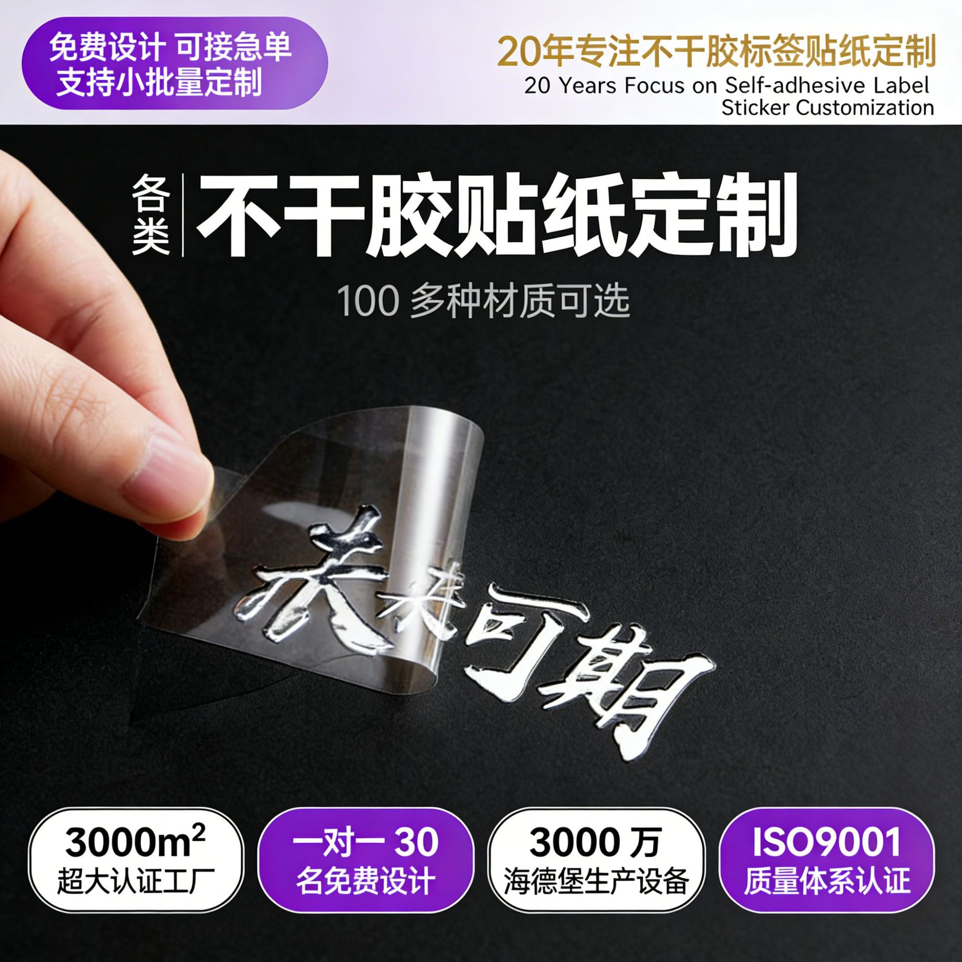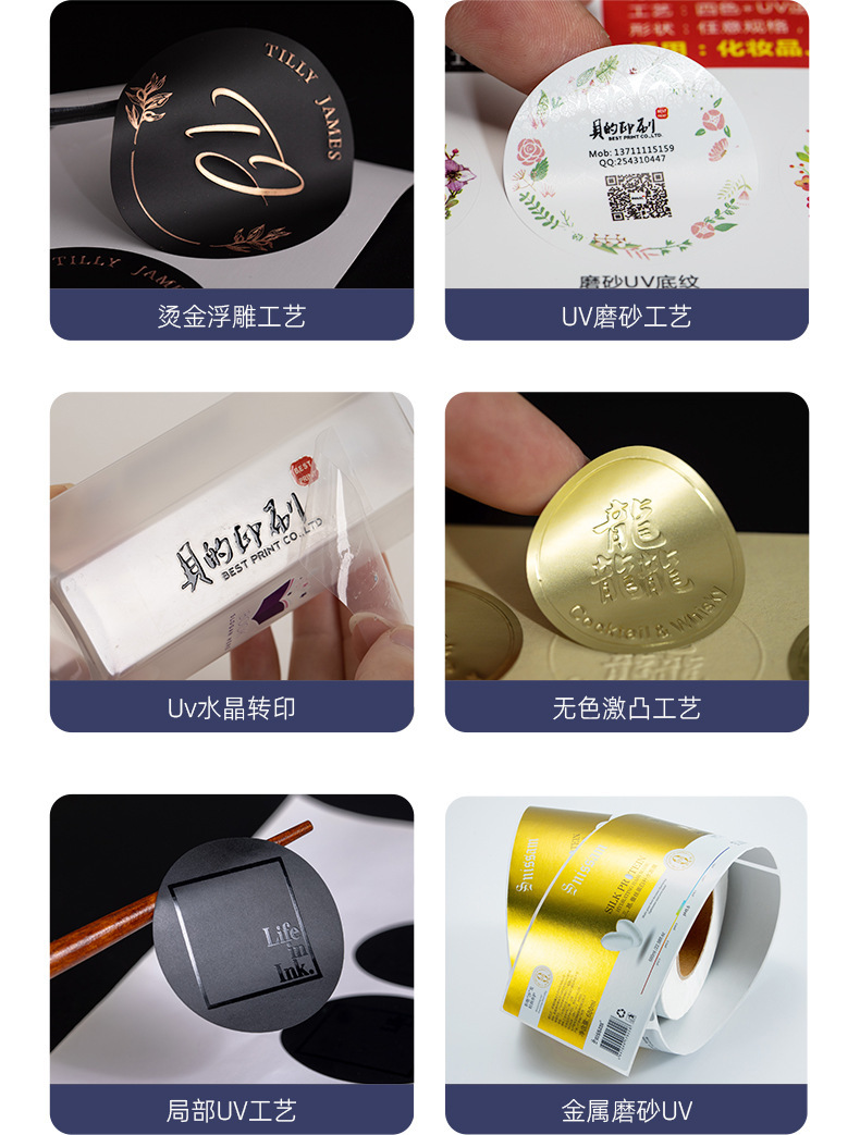 水晶标贴烫金UV转印贴 防水透明印刷高档定制商标不干胶标签贴纸