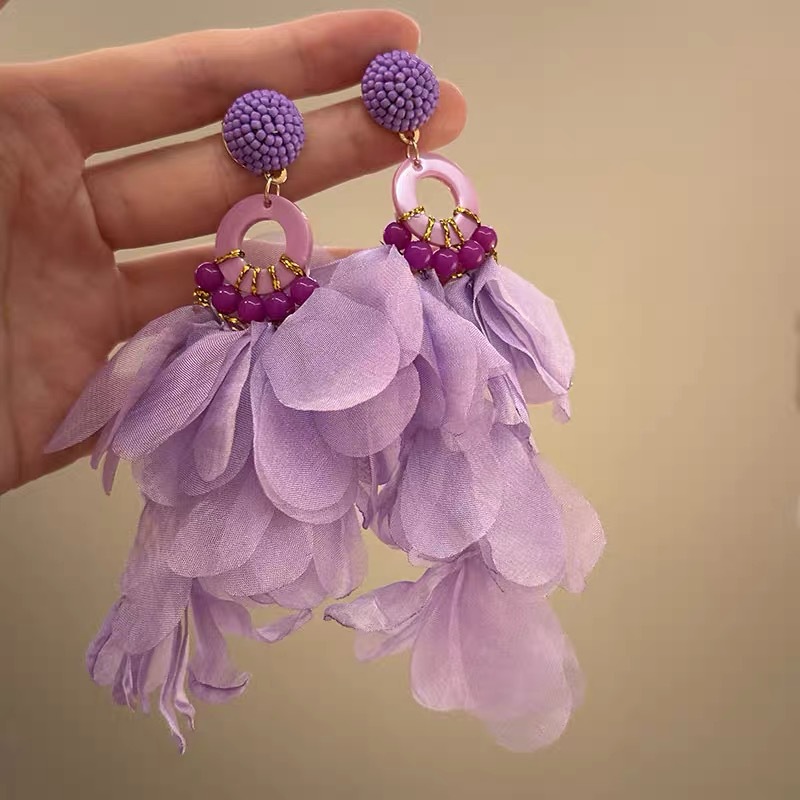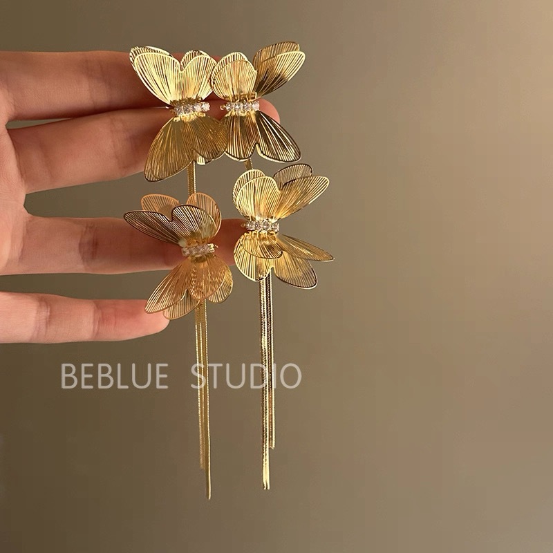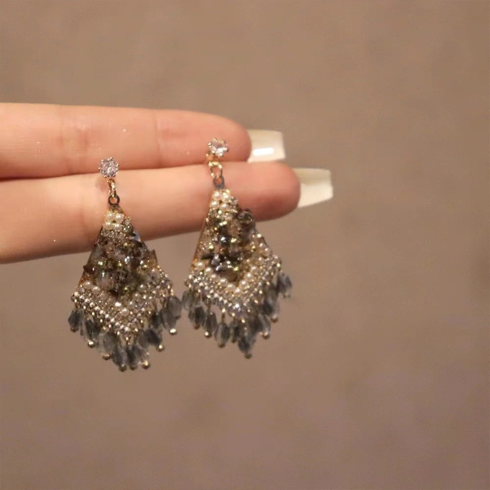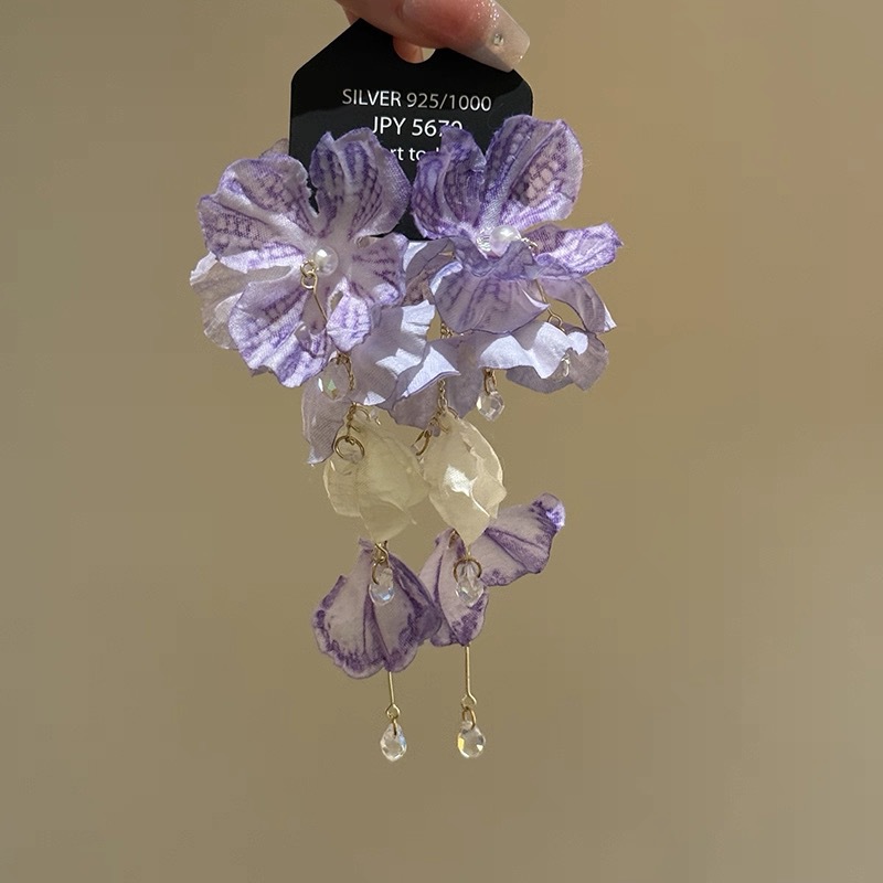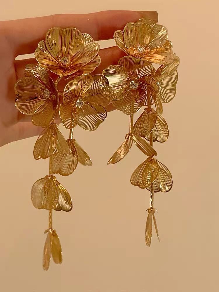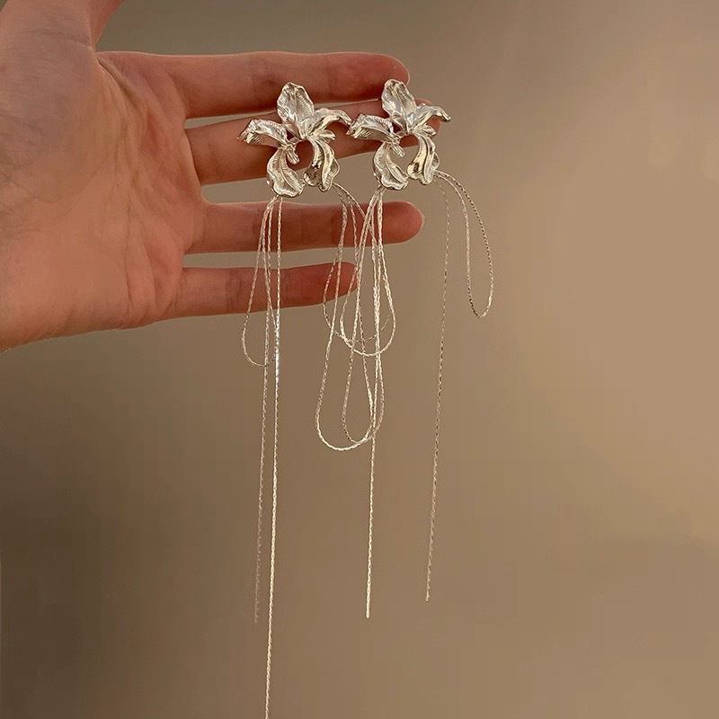 银针欧美时尚唯美新娘造型镶钻花朵流苏耳环百搭耳钉女设计感耳饰