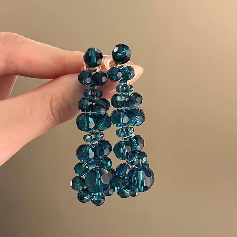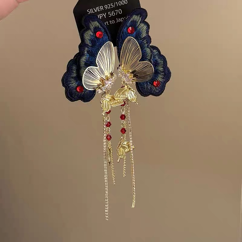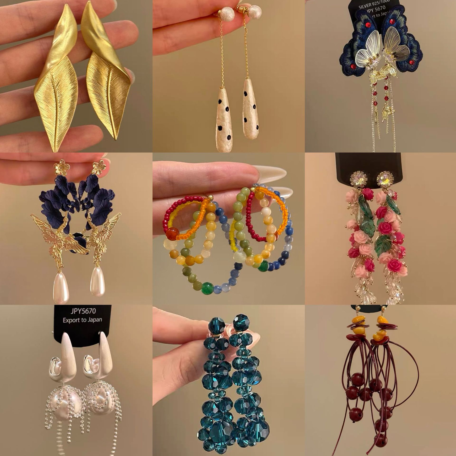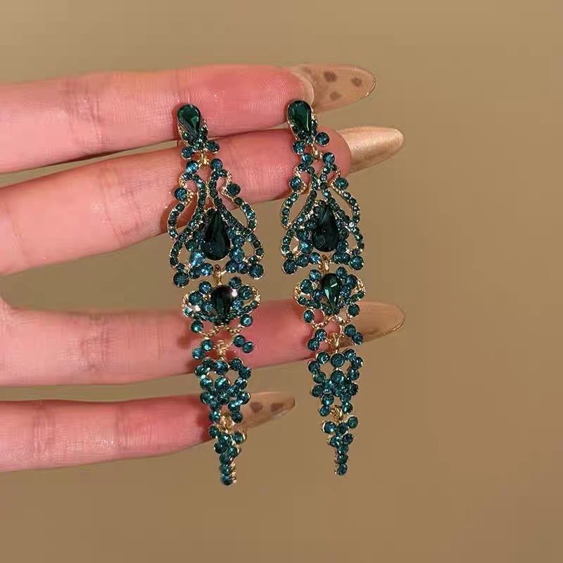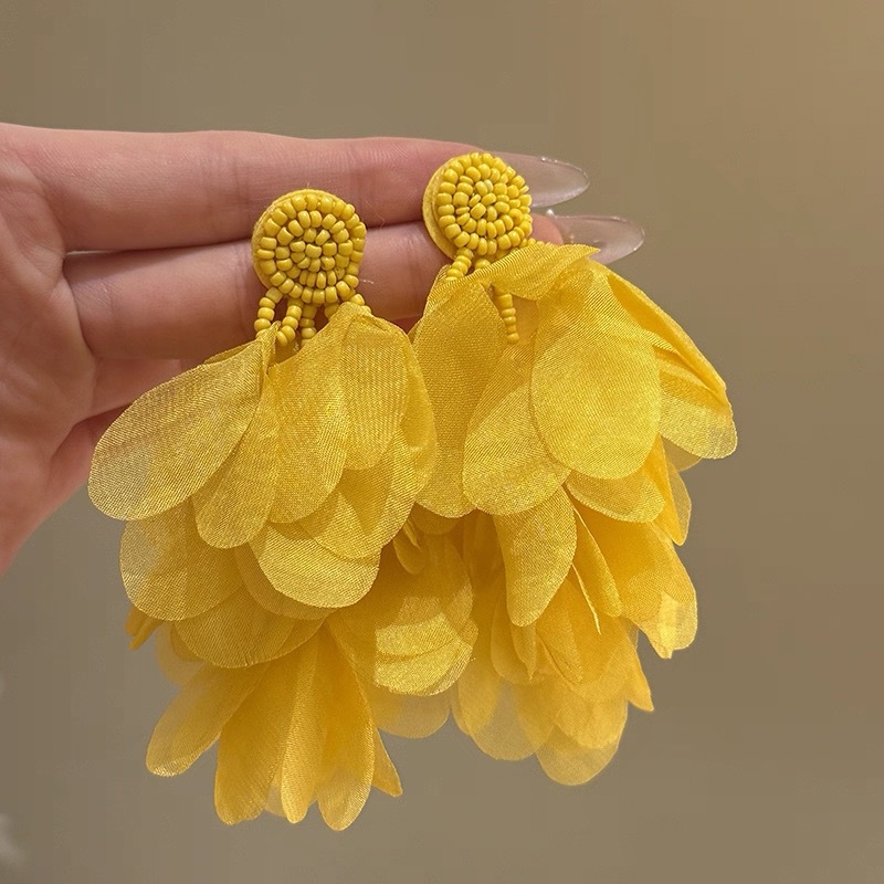 银针欧美时尚唯美新娘造型镶钻花朵流苏耳环百搭耳钉女设计感耳饰
