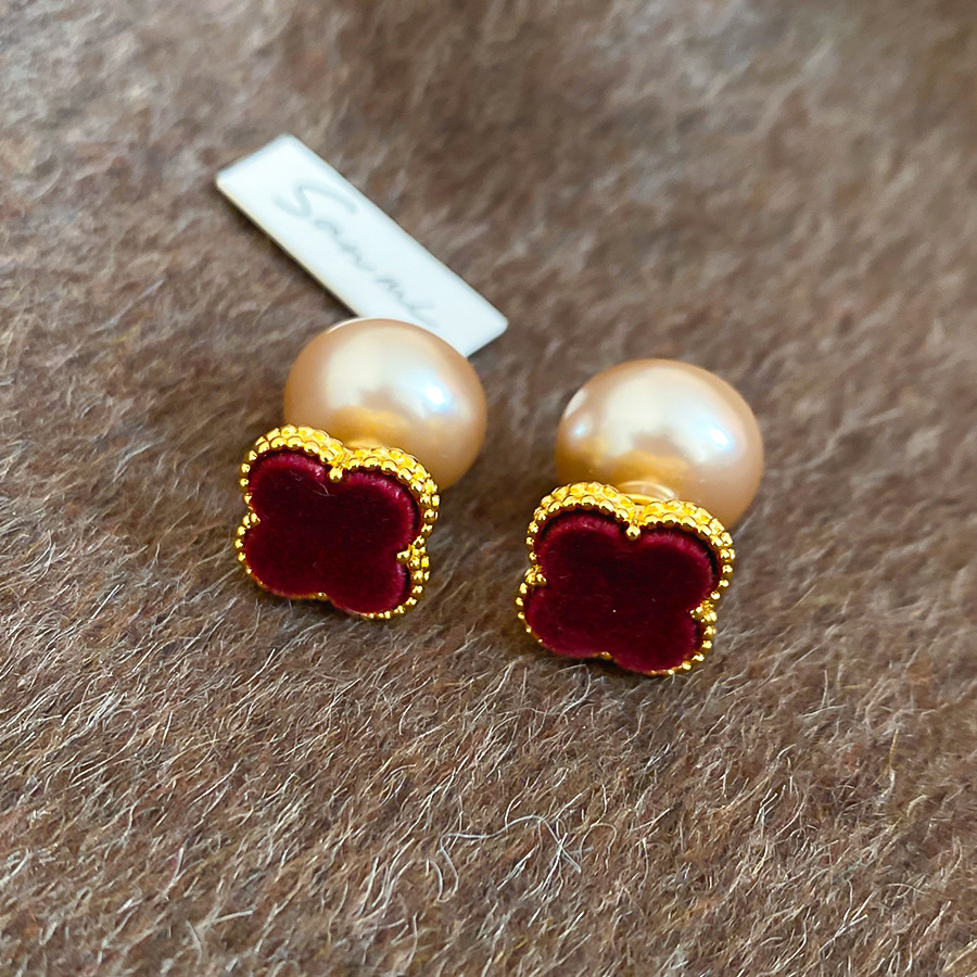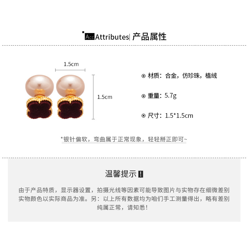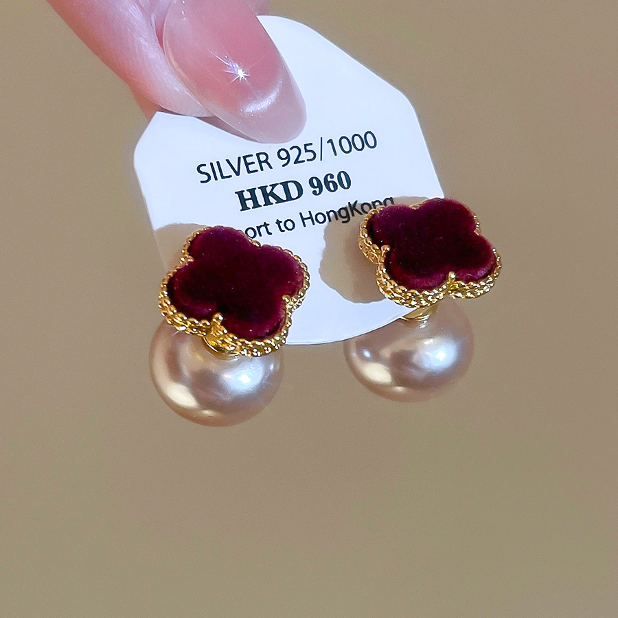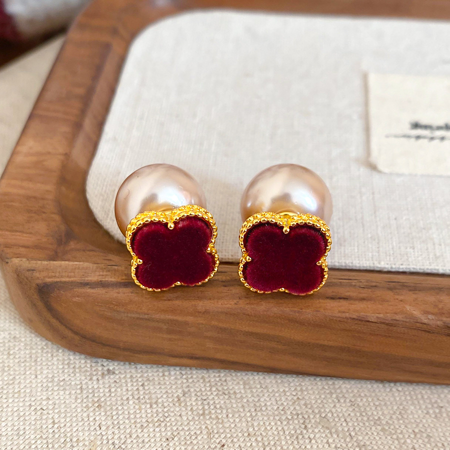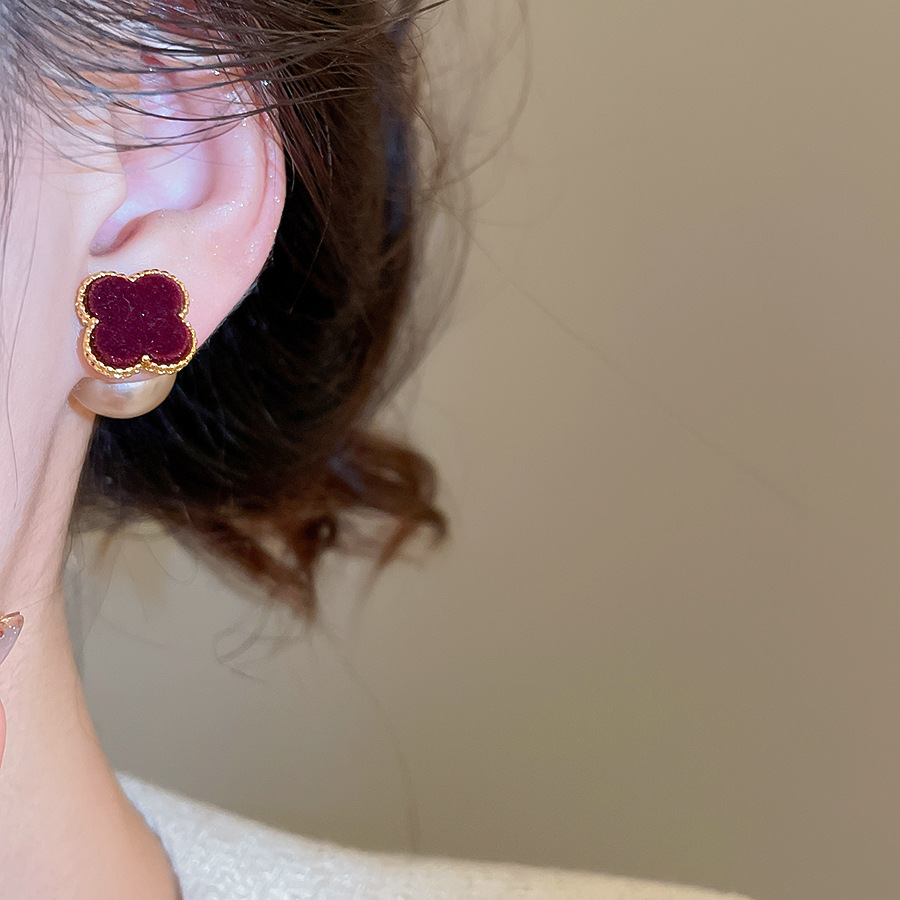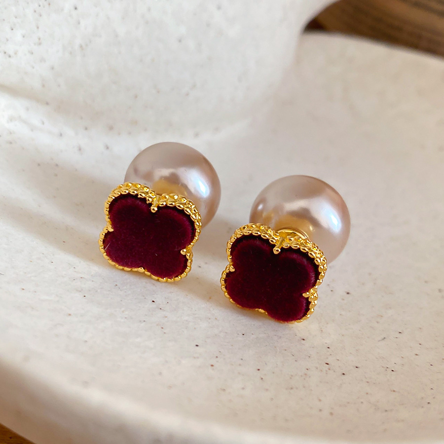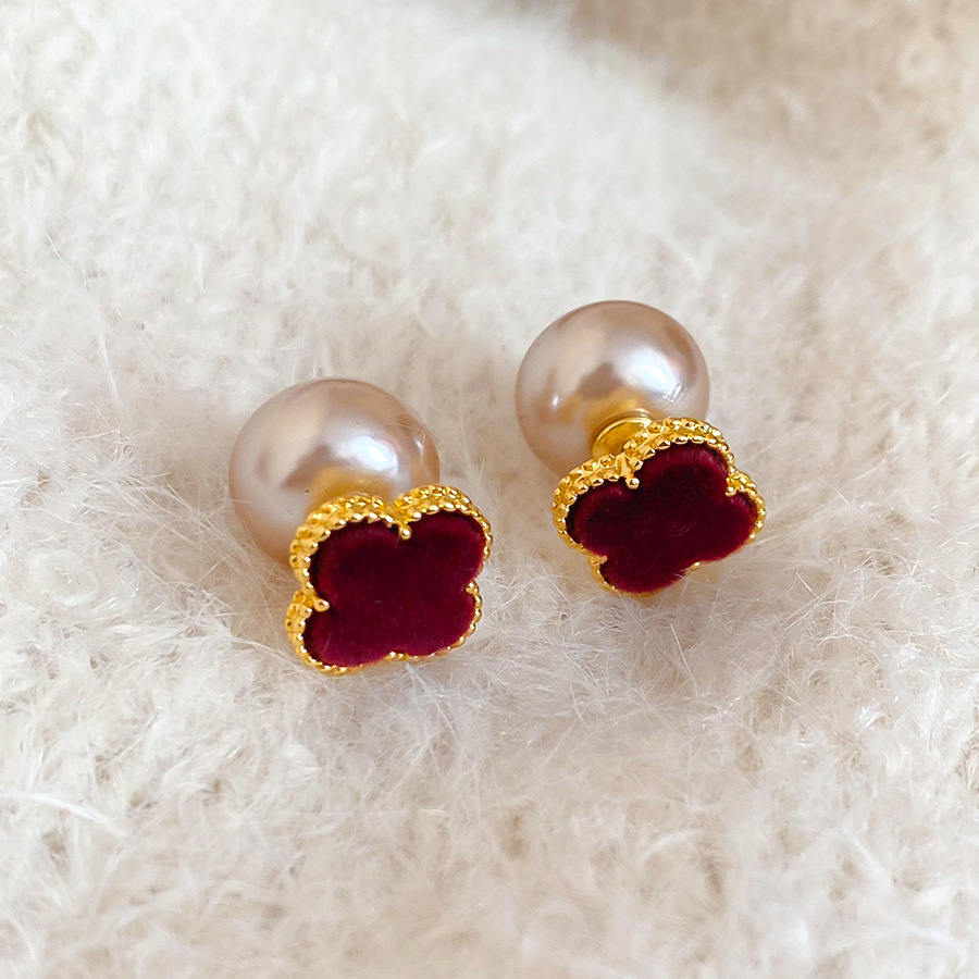 银针植绒花朵珍珠耳钉简约时尚复古气质小众耳环轻奢高级感耳饰女
