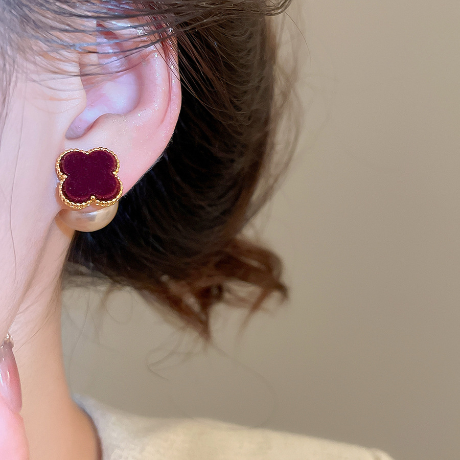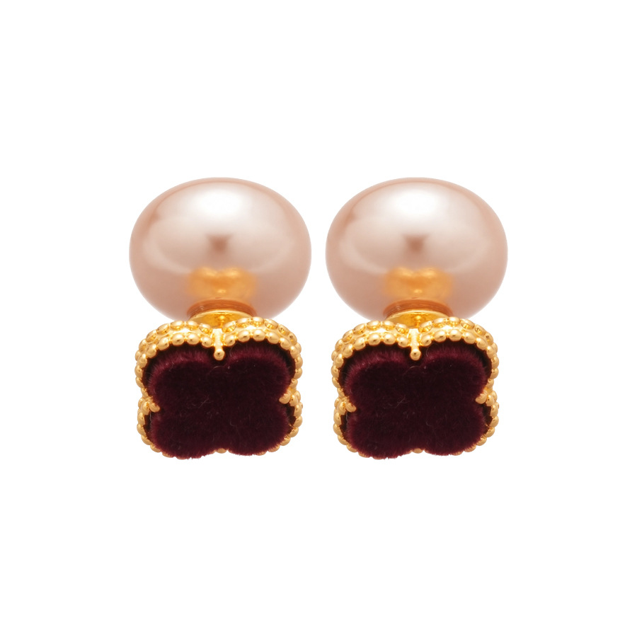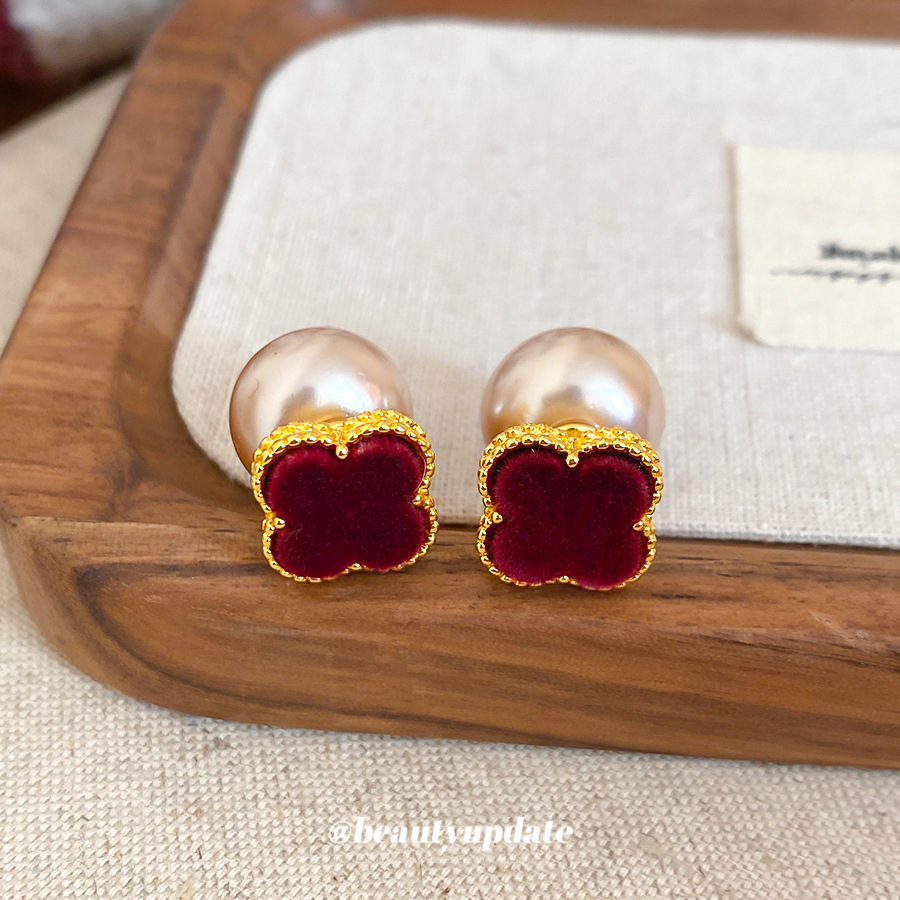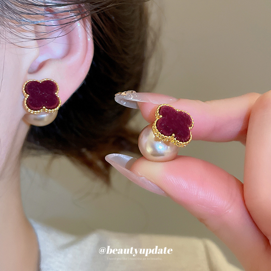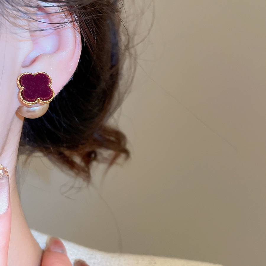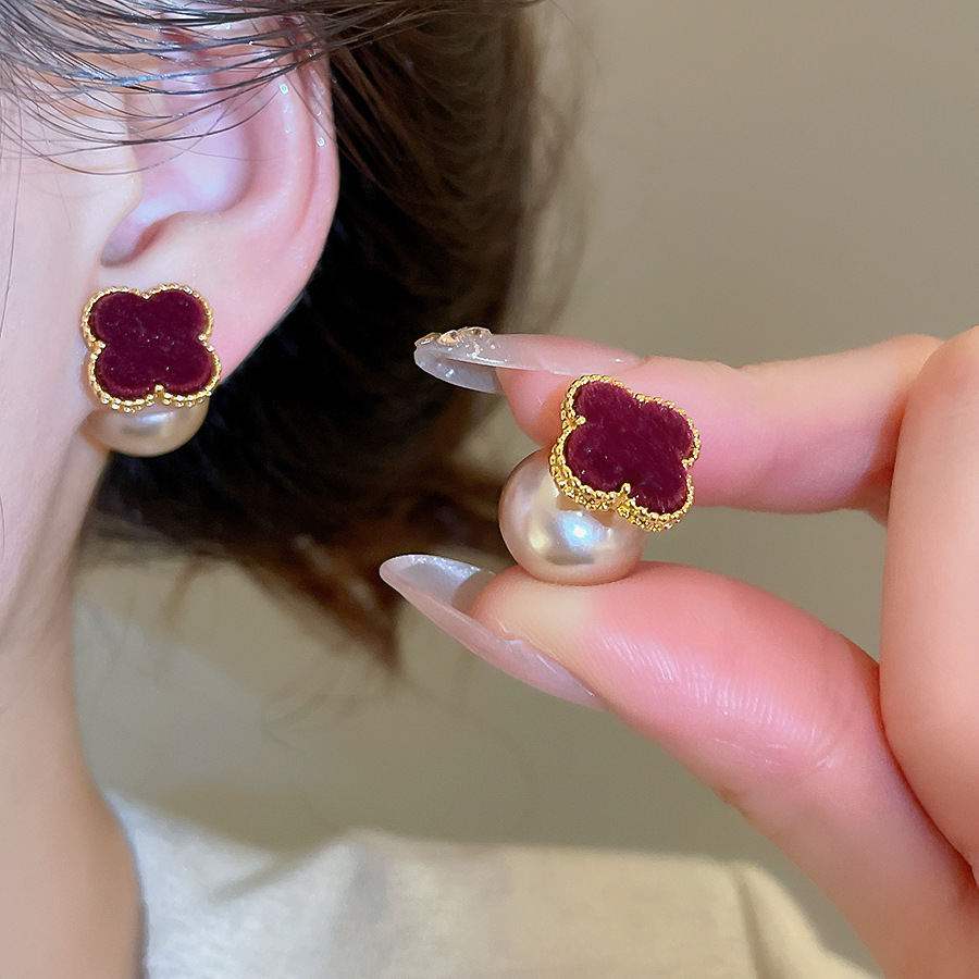 银针植绒花朵珍珠耳钉简约时尚复古气质小众耳环轻奢高级感耳饰女