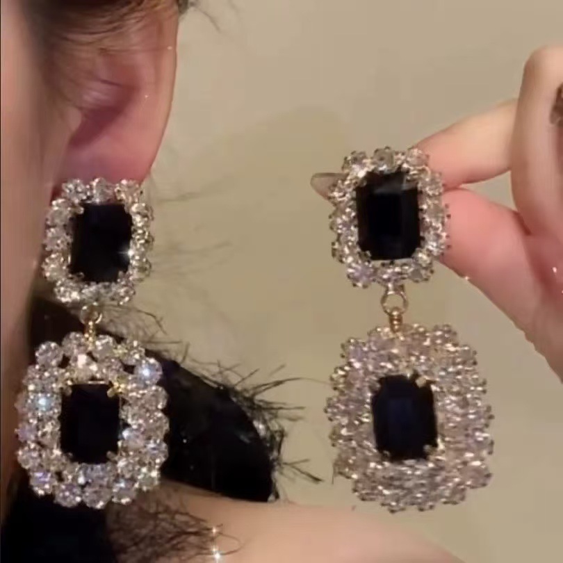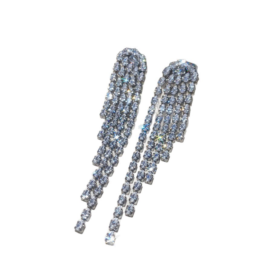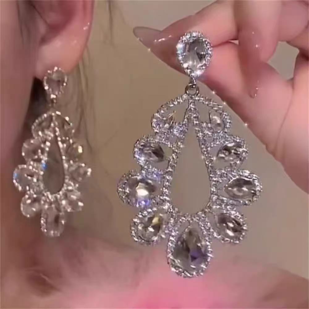 银针镶钻水滴流苏耳钉宫廷风气质小众百搭耳环轻奢高级感耳饰批发
