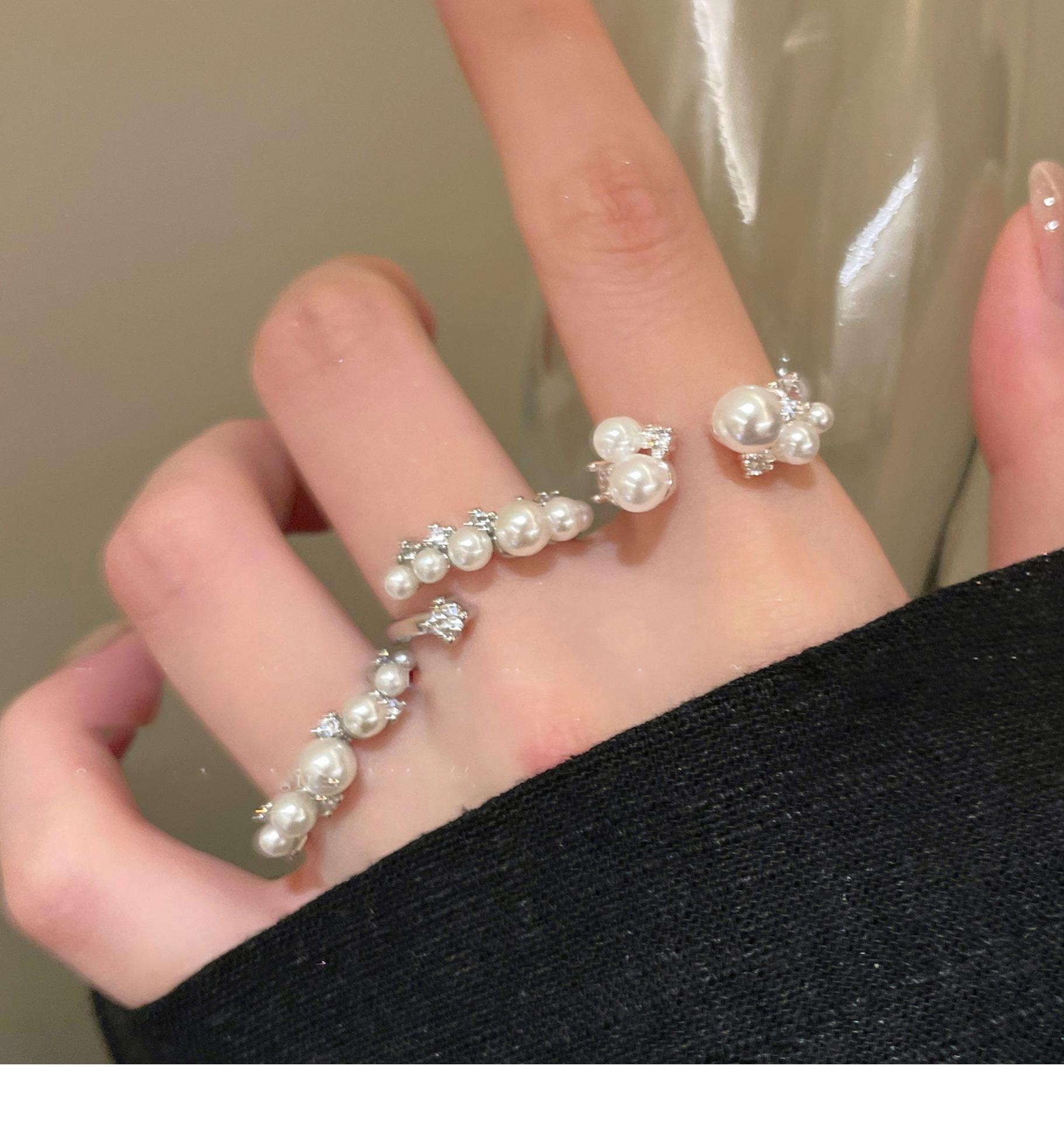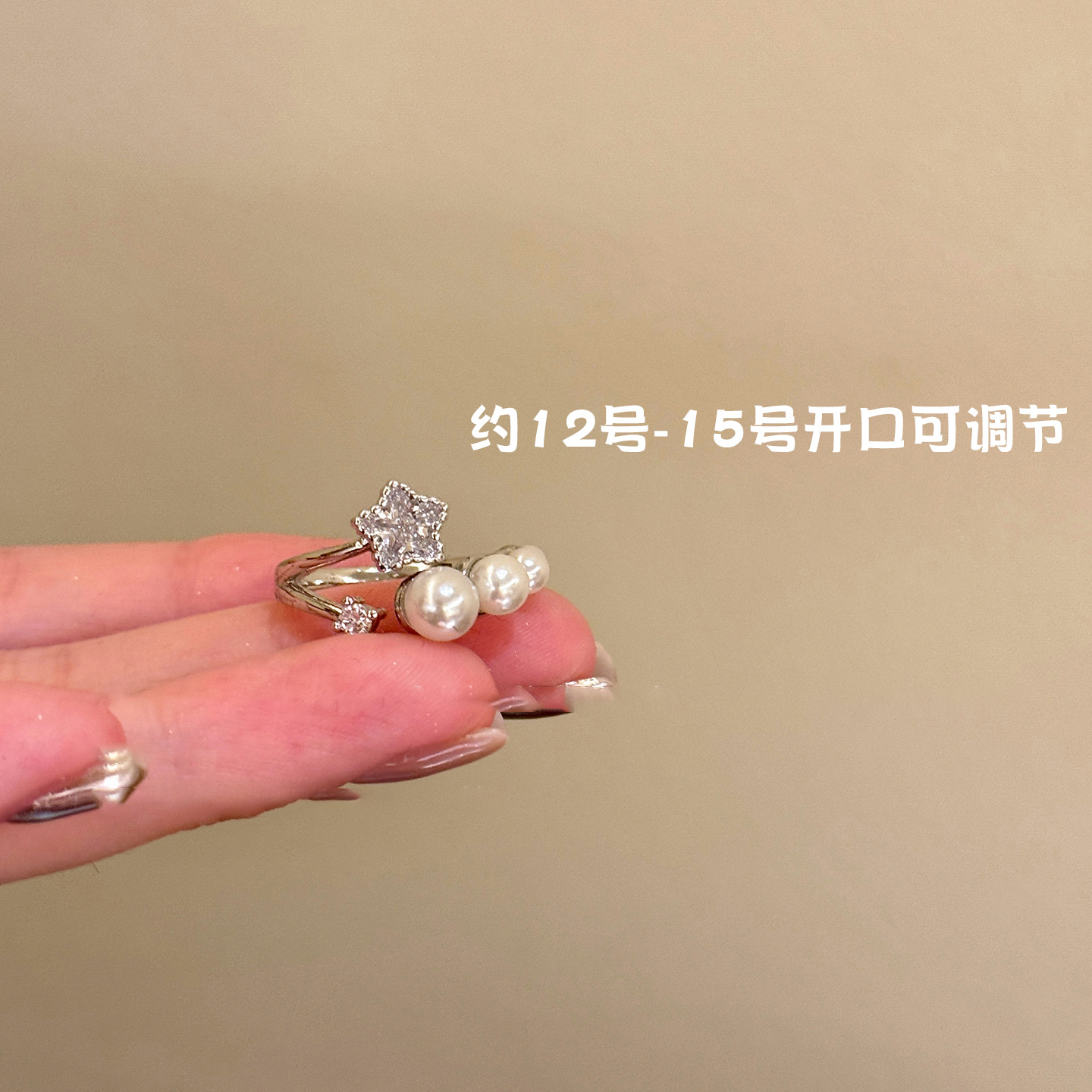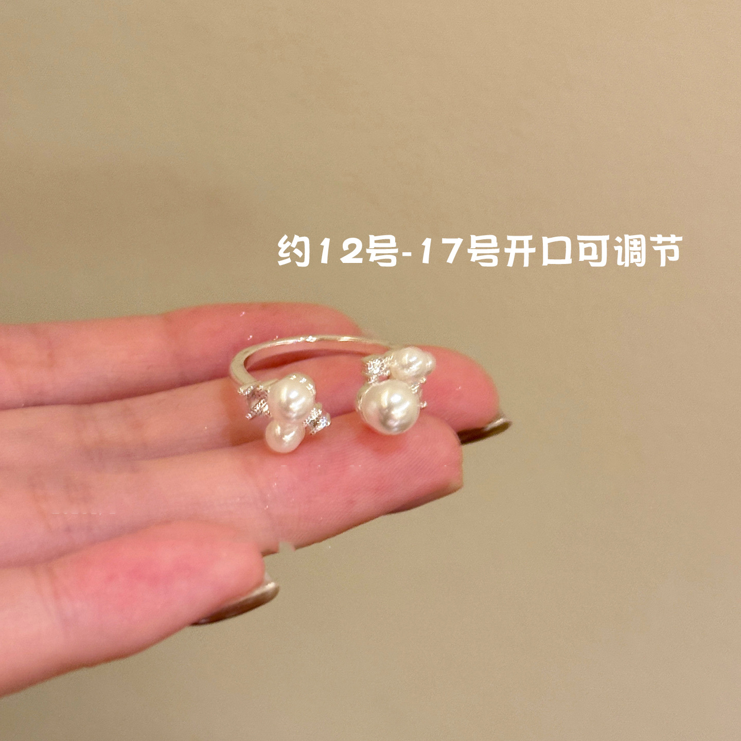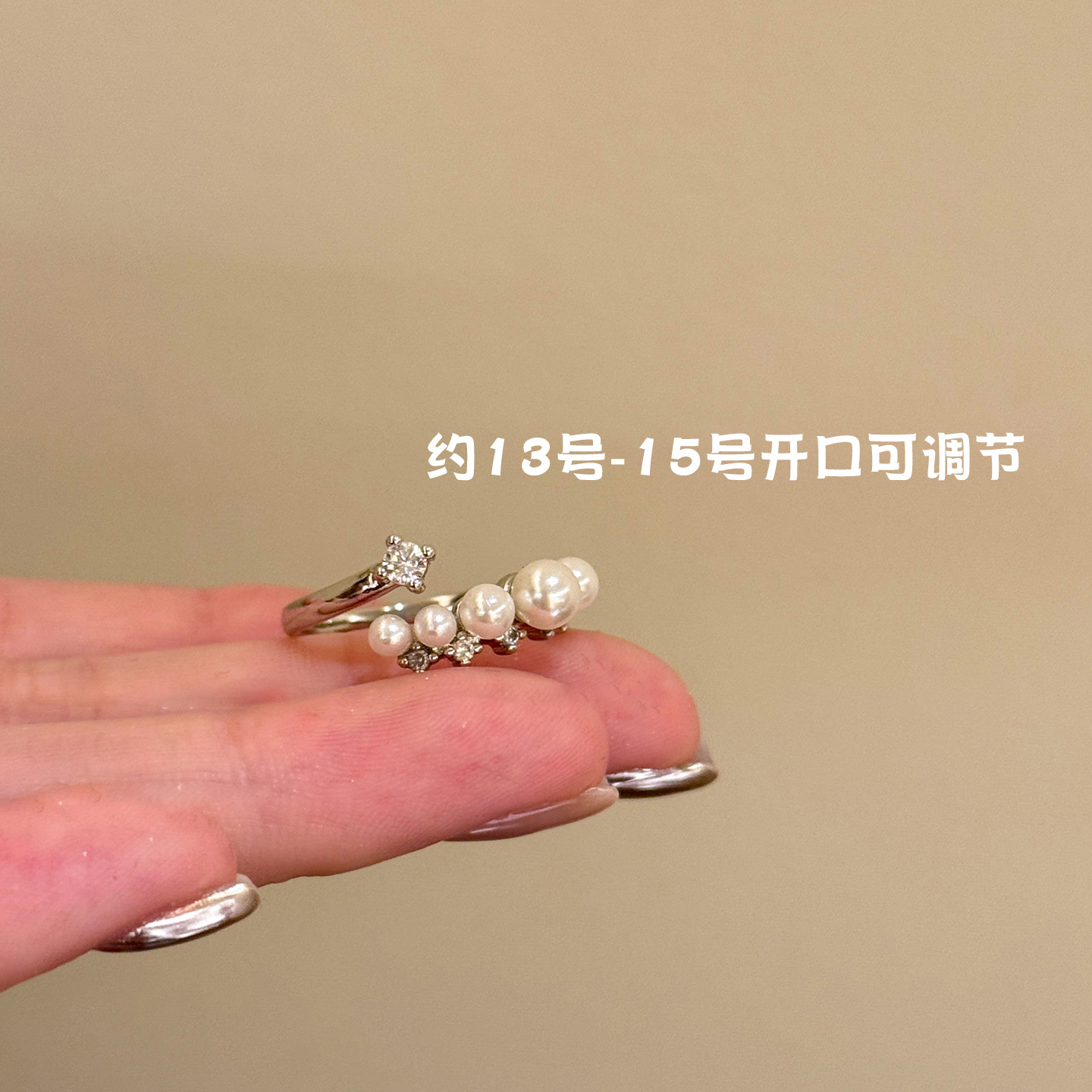 冷淡风锆石珍珠开口戒指韩系优雅气质百搭食指戒轻奢高级感手饰女