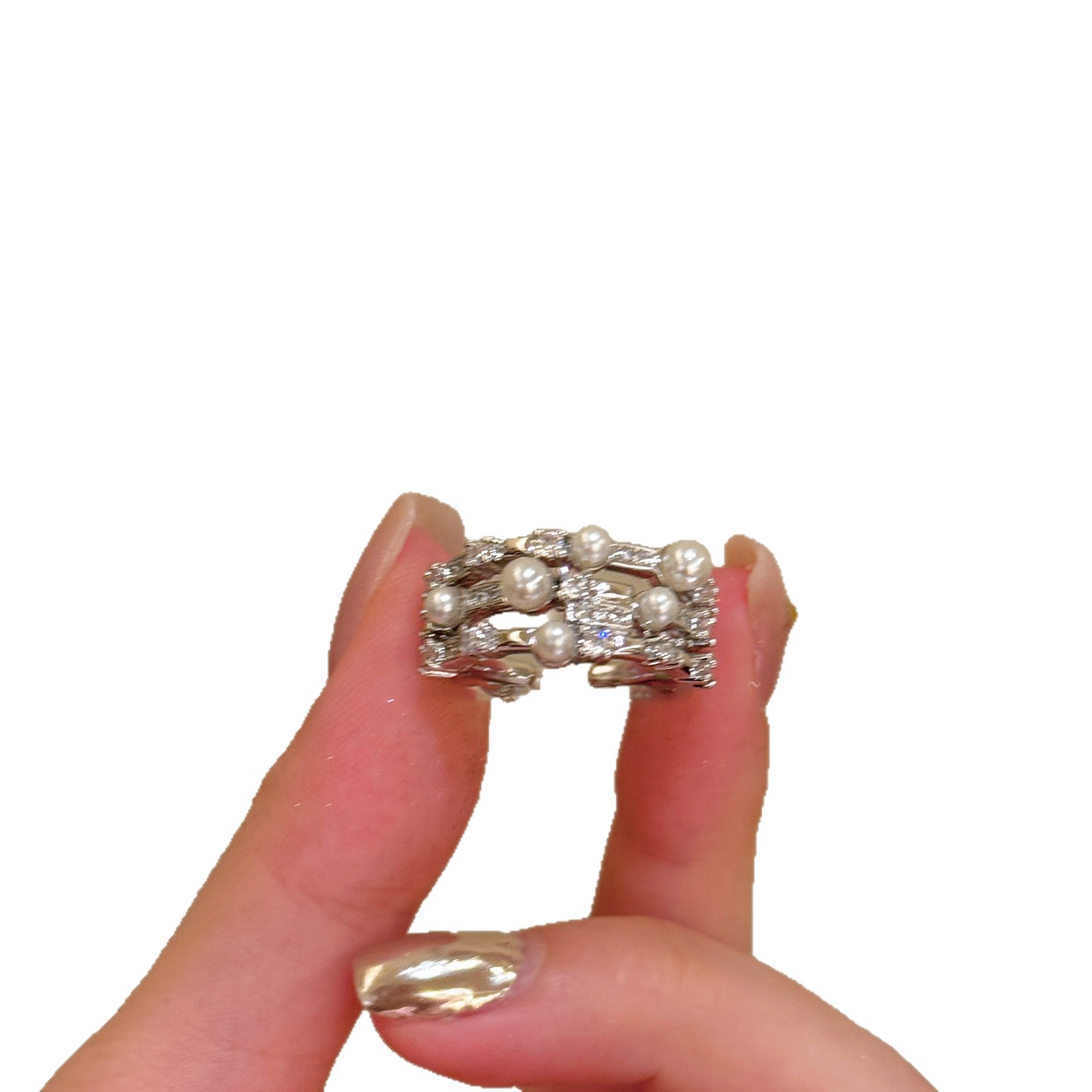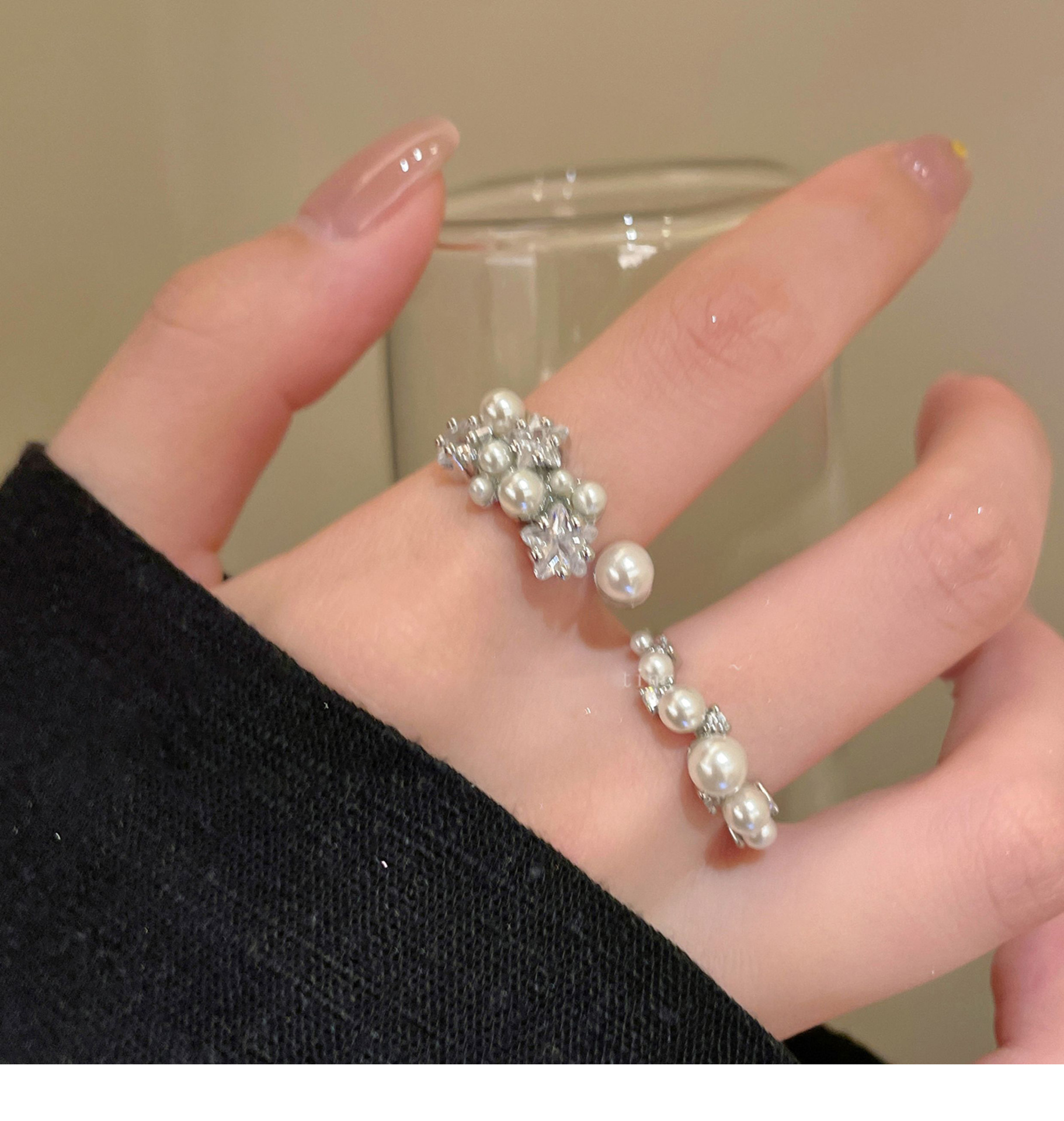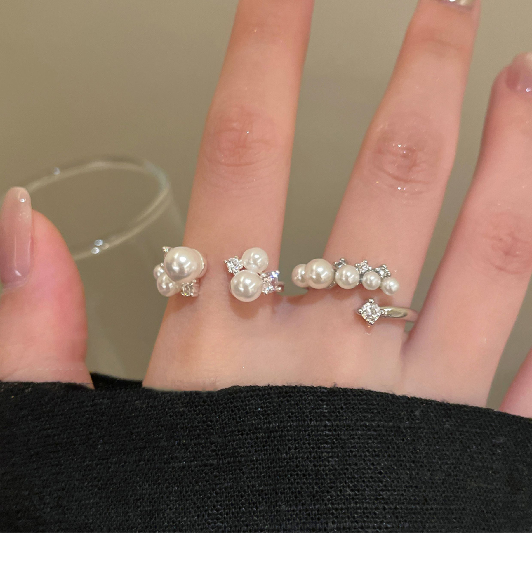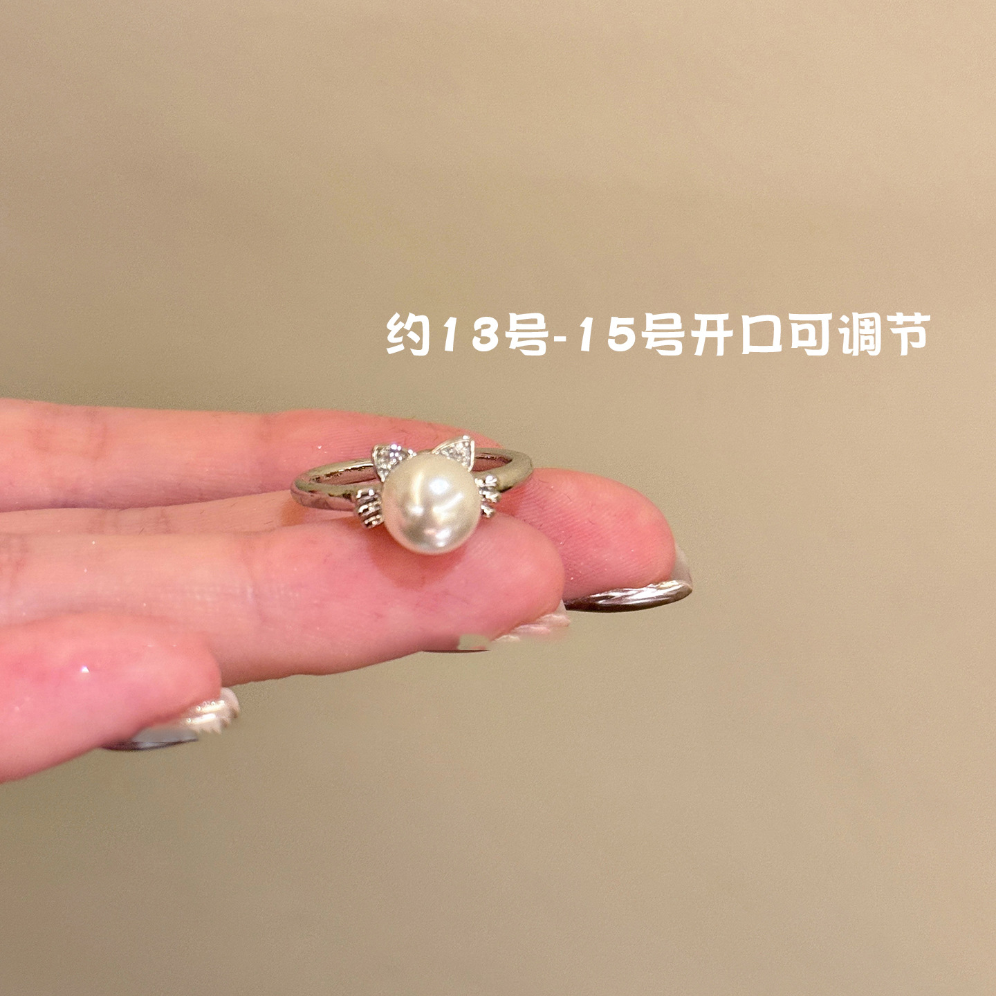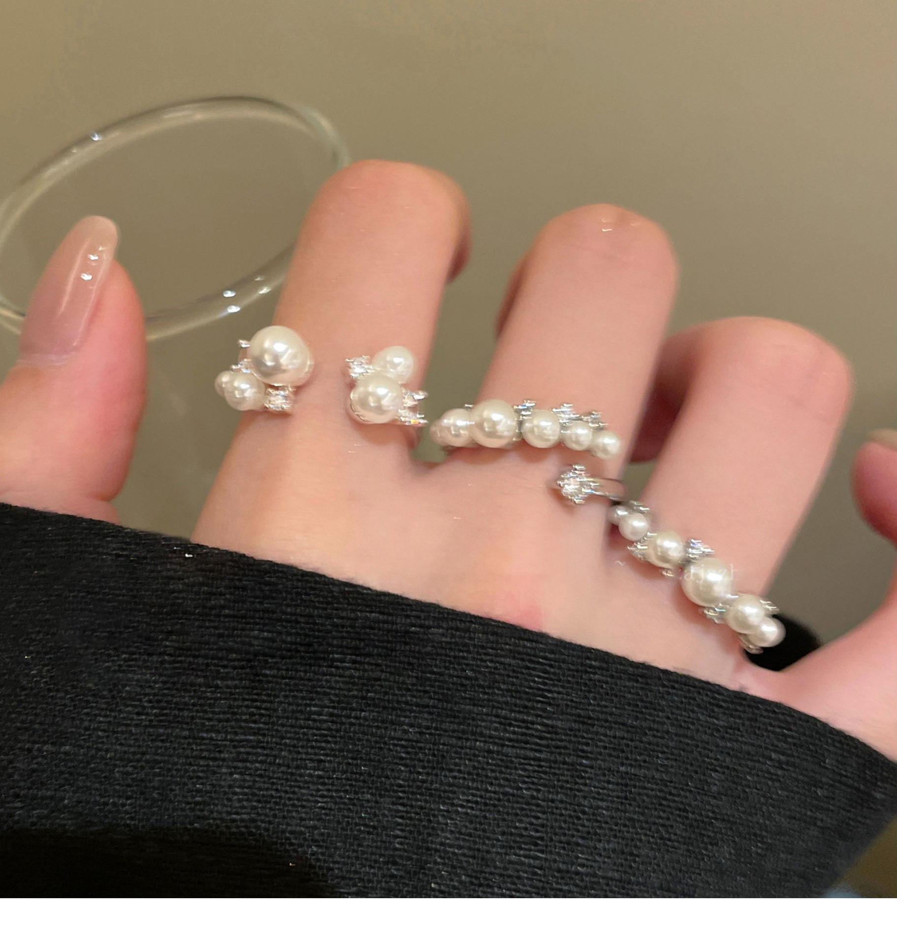 冷淡风锆石珍珠开口戒指韩系优雅气质百搭食指戒轻奢高级感手饰女