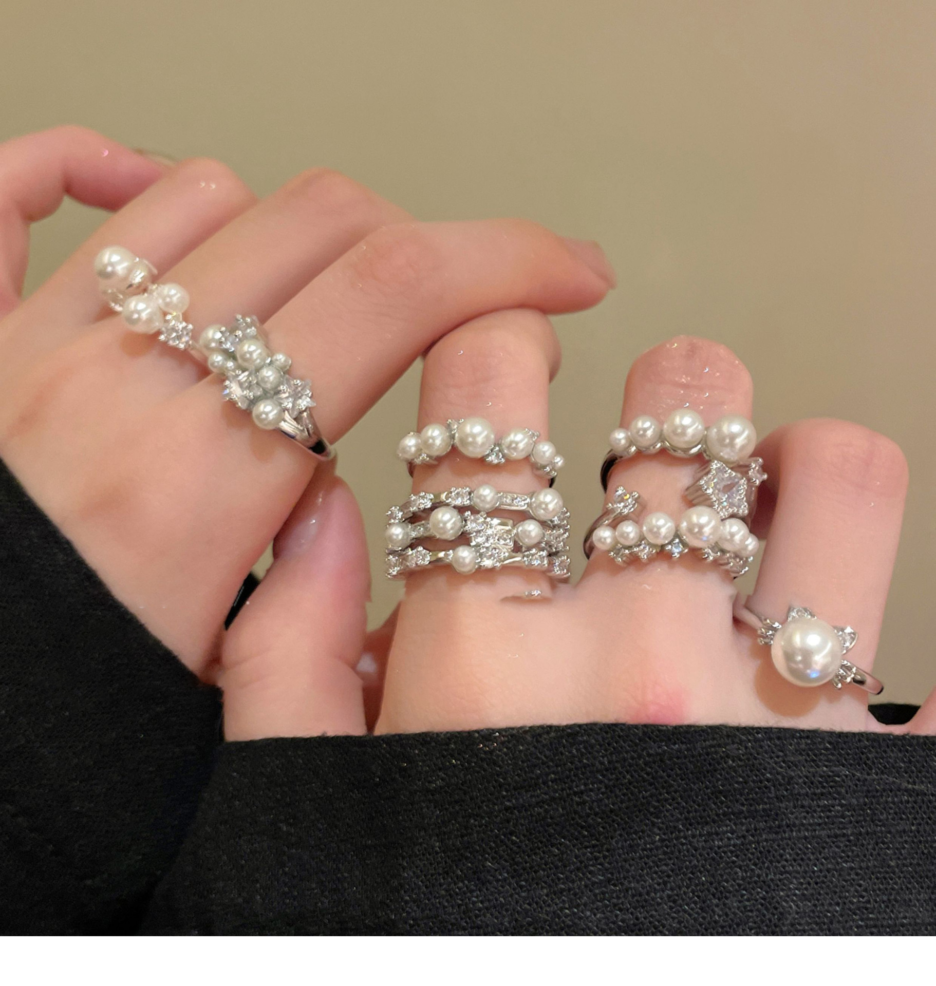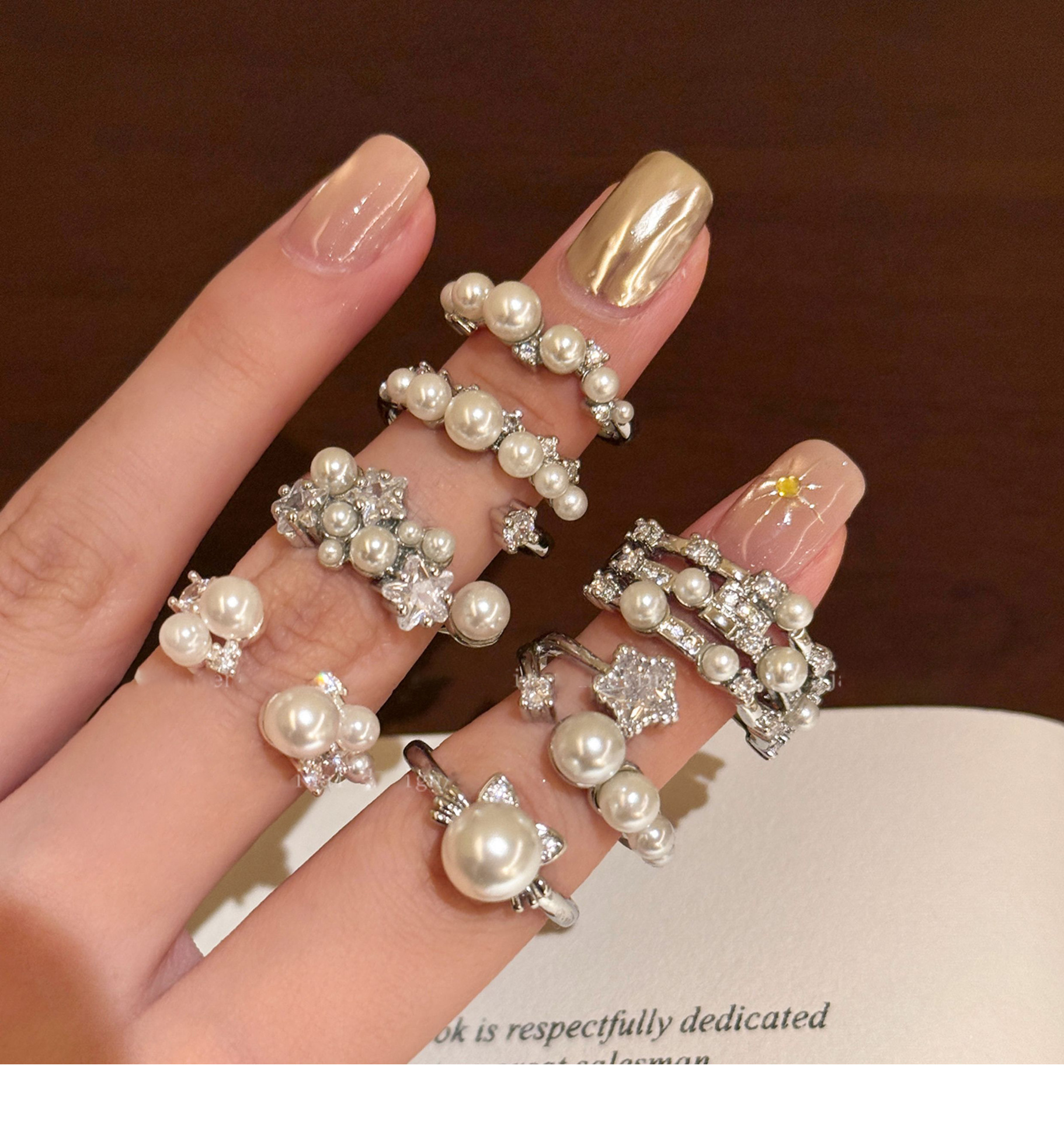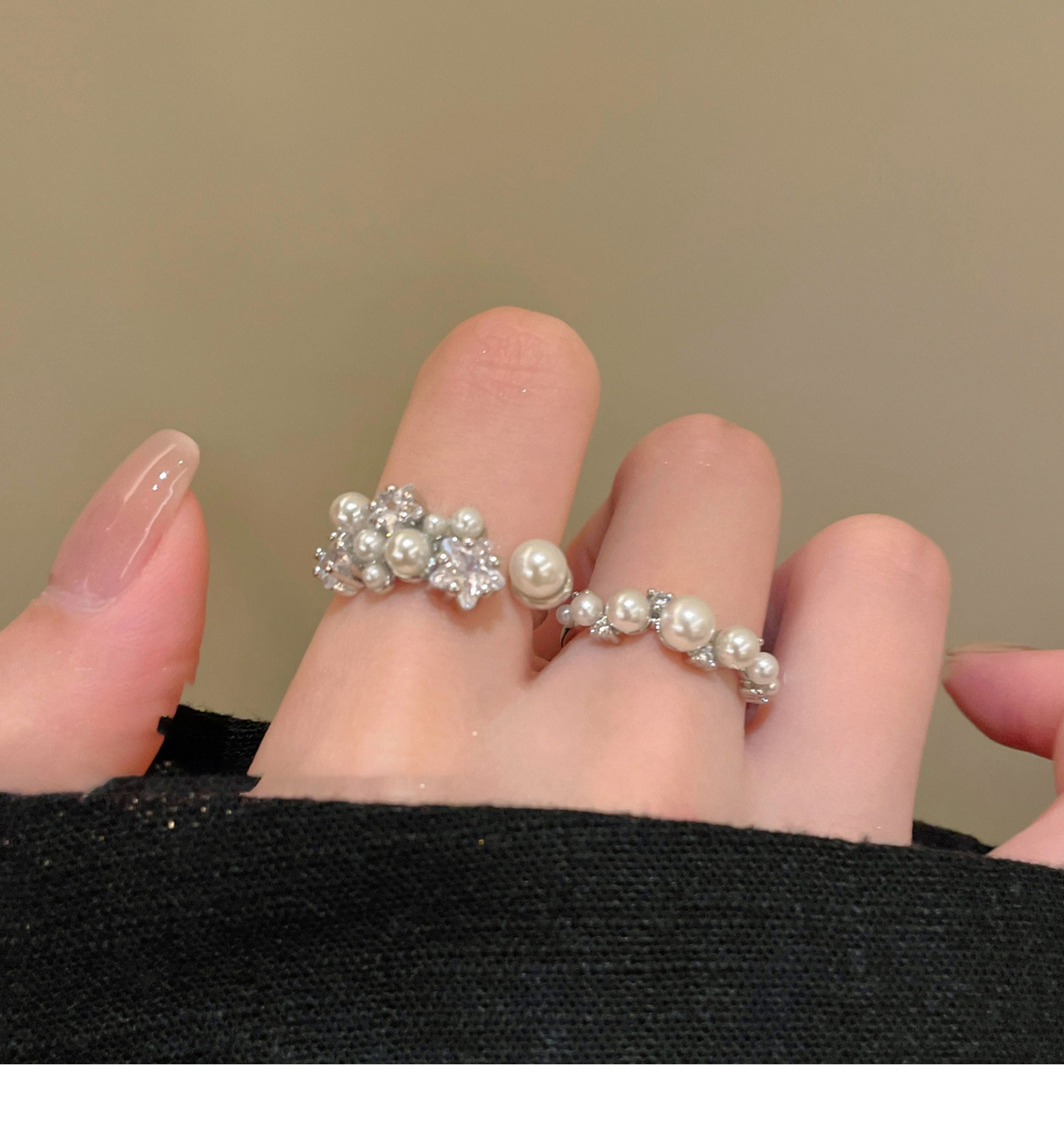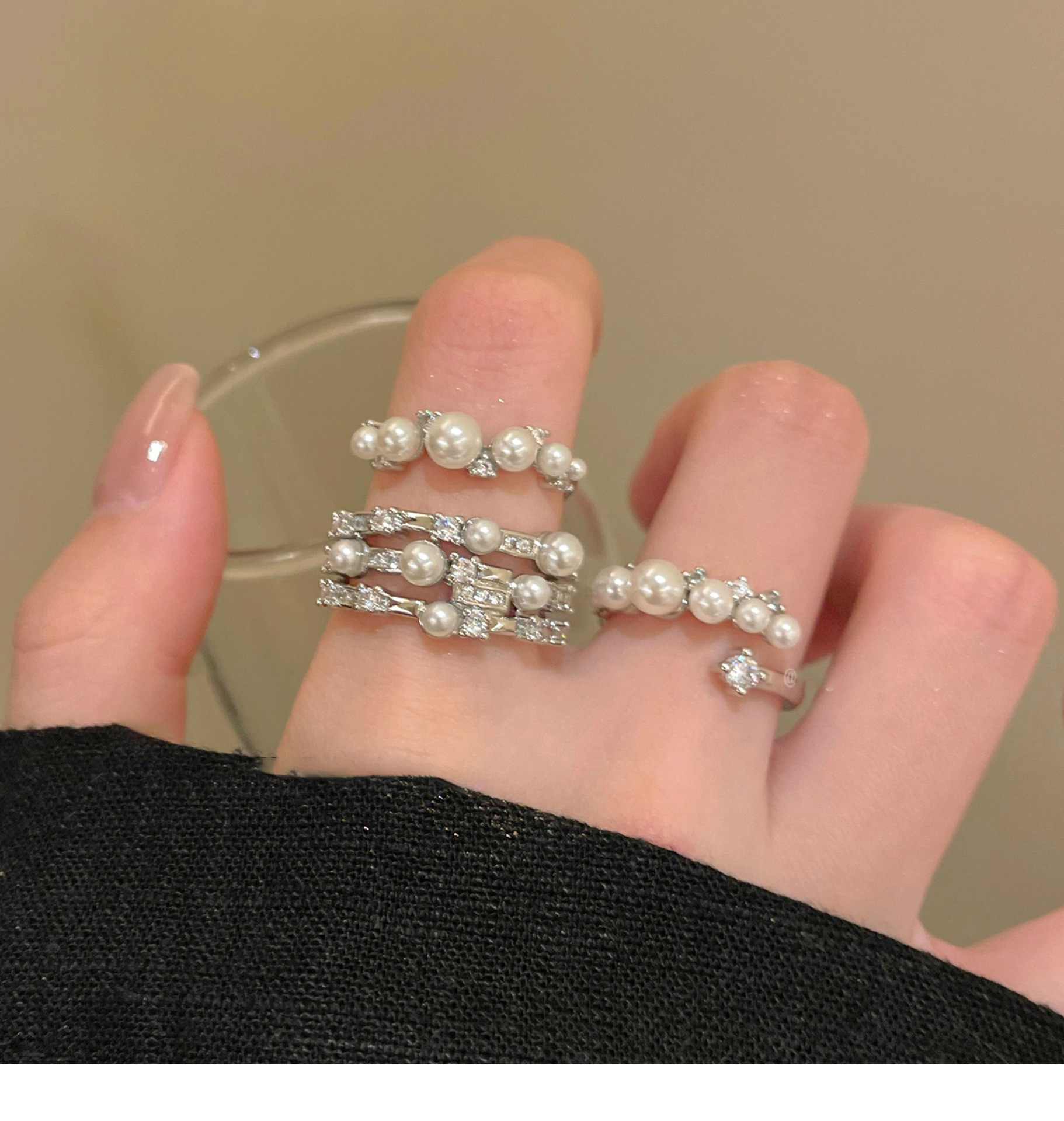 冷淡风锆石珍珠开口戒指韩系优雅气质百搭食指戒轻奢高级感手饰女