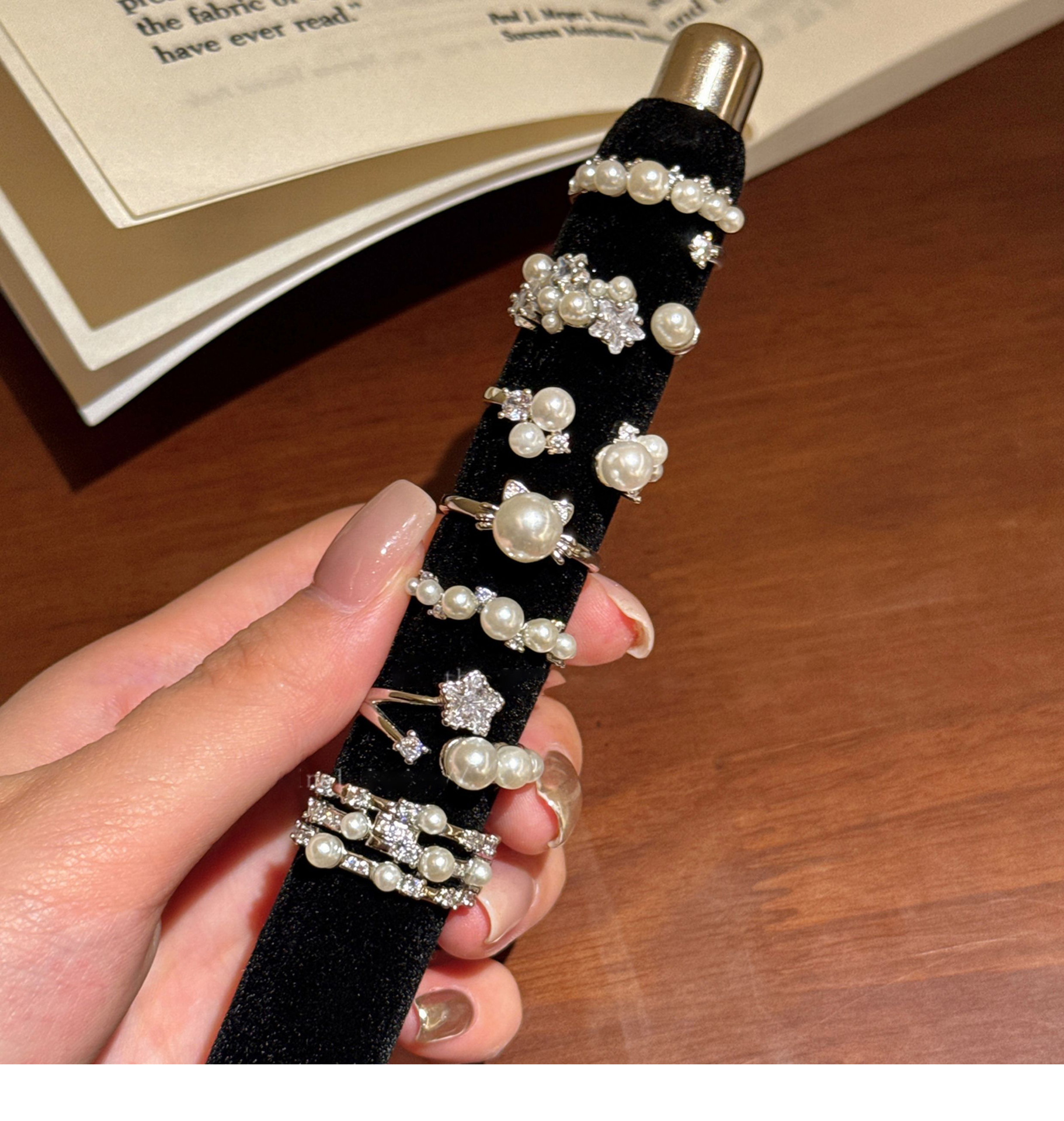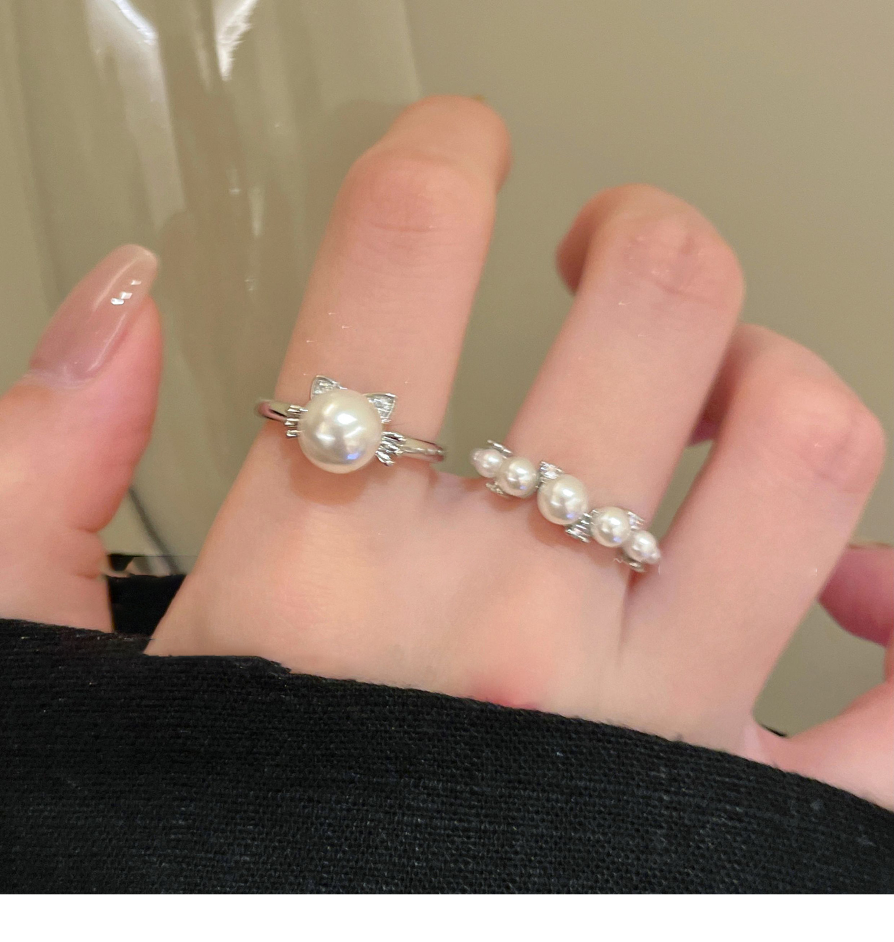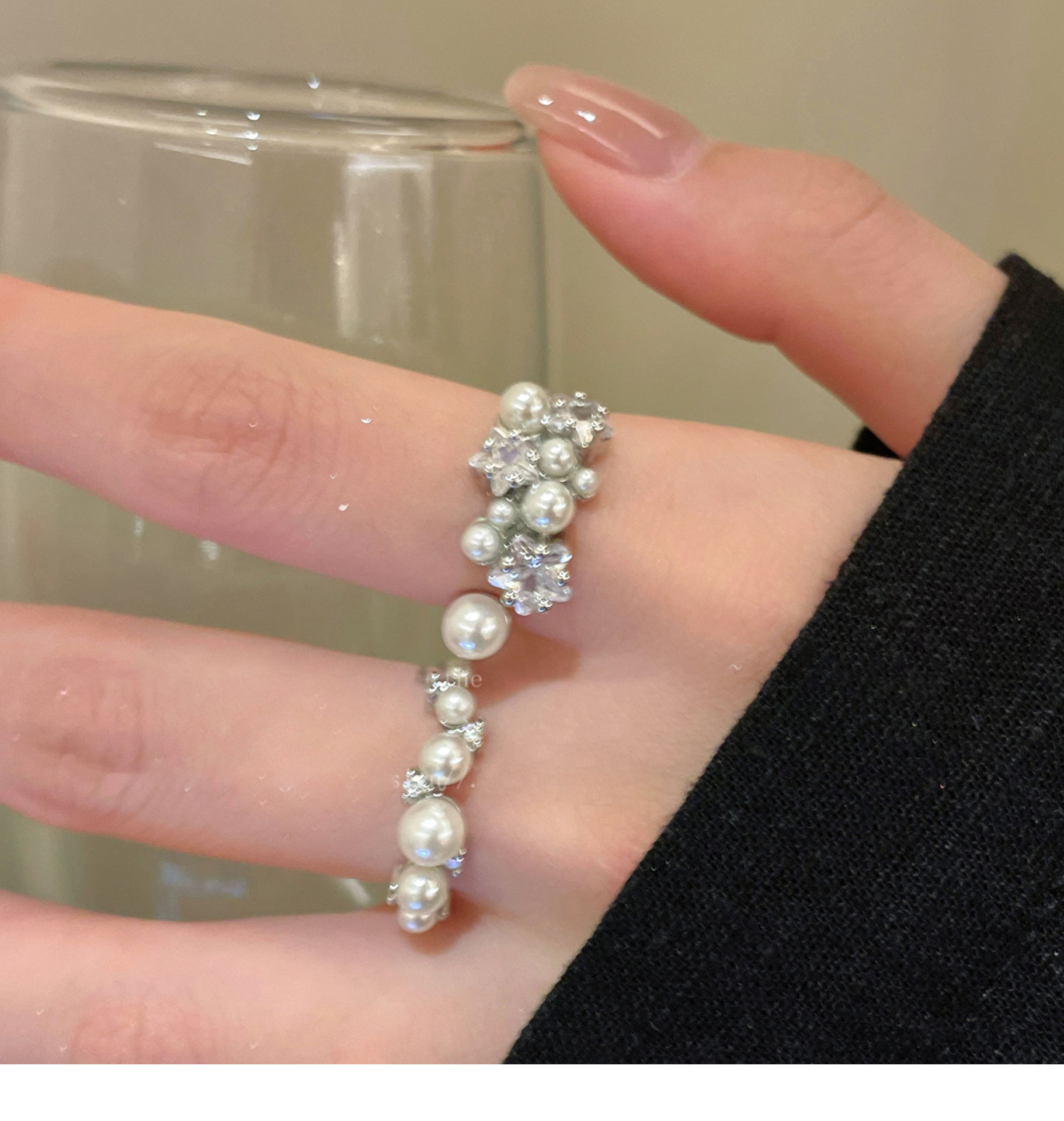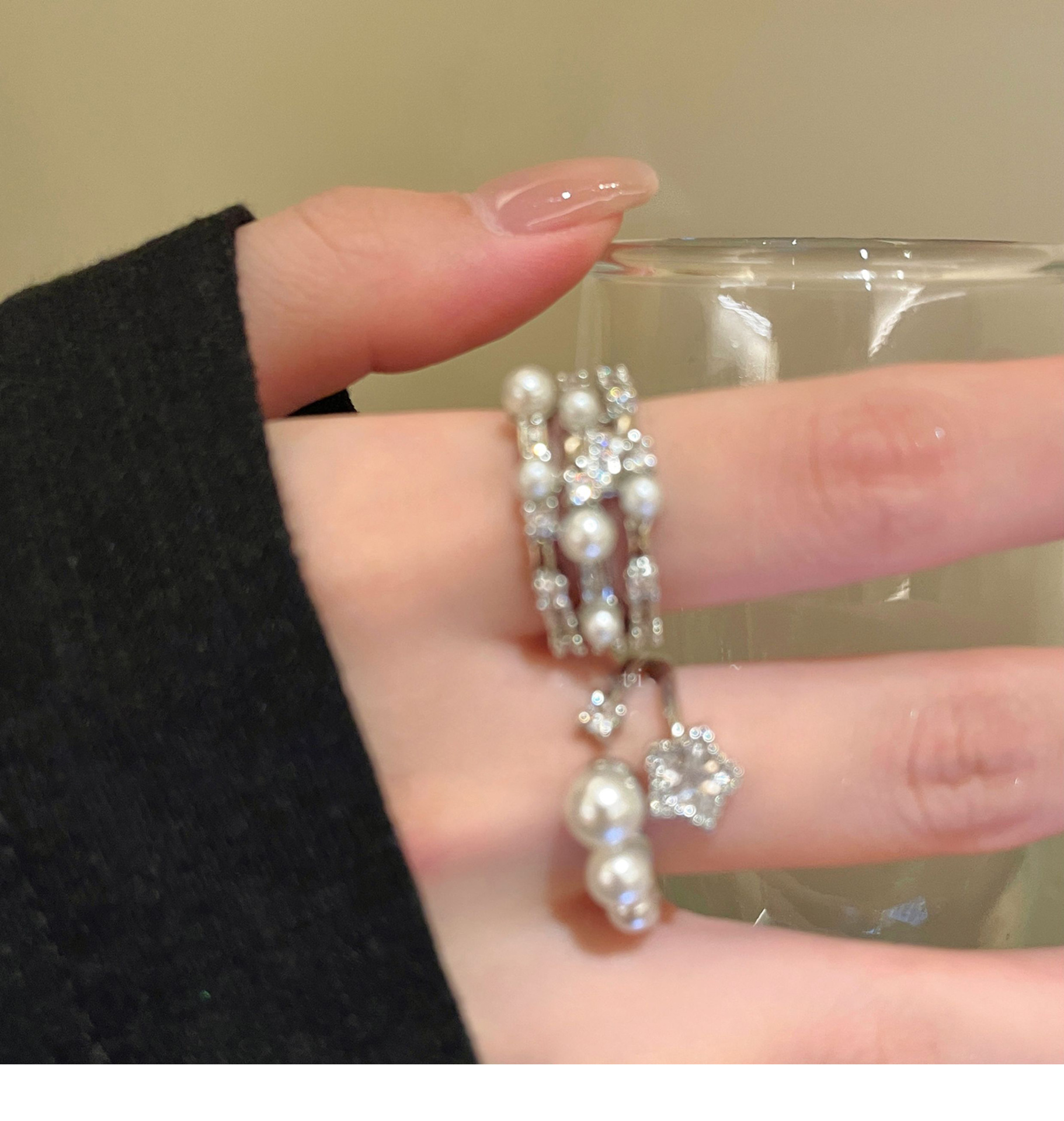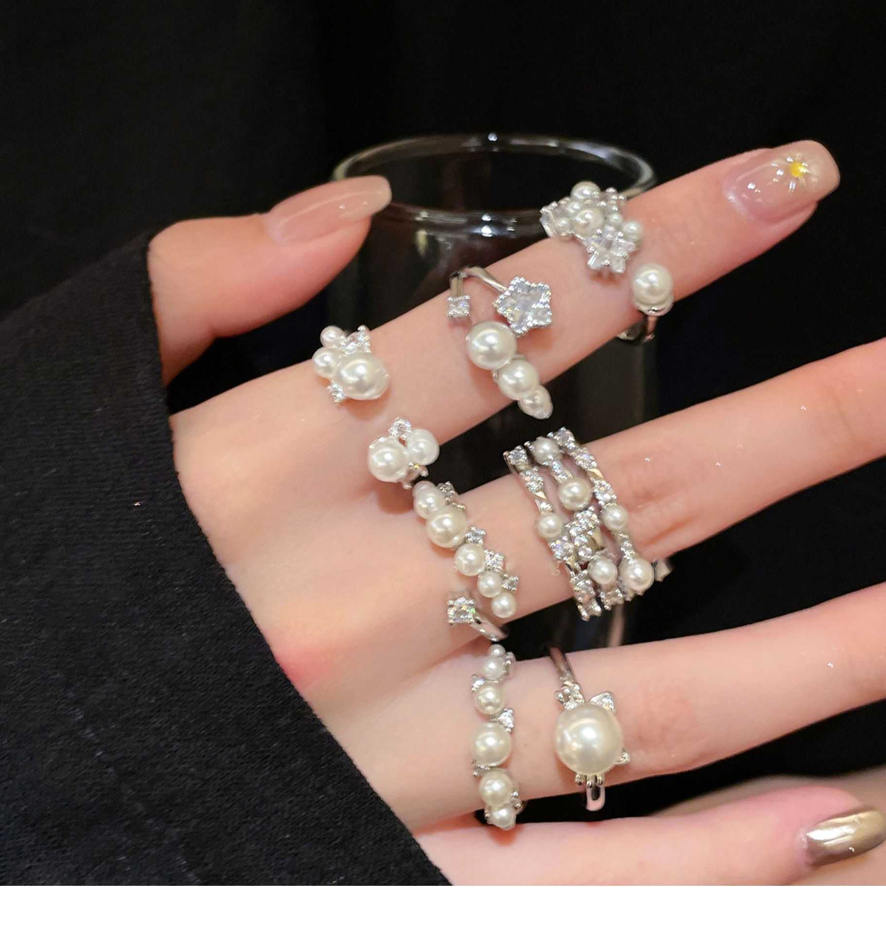 冷淡风锆石珍珠开口戒指韩系优雅气质百搭食指戒轻奢高级感手饰女