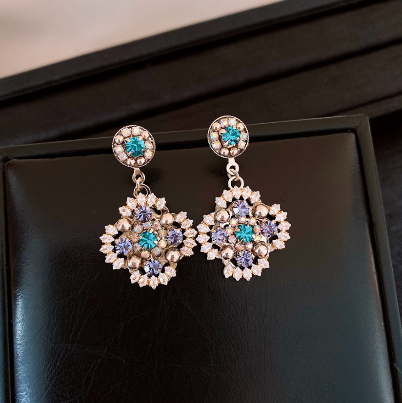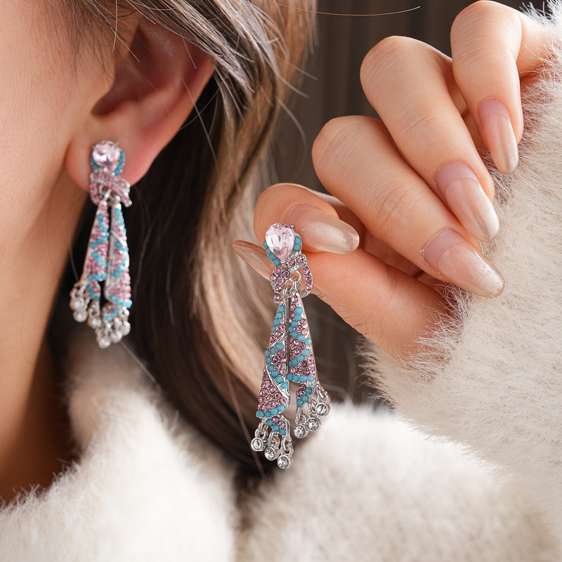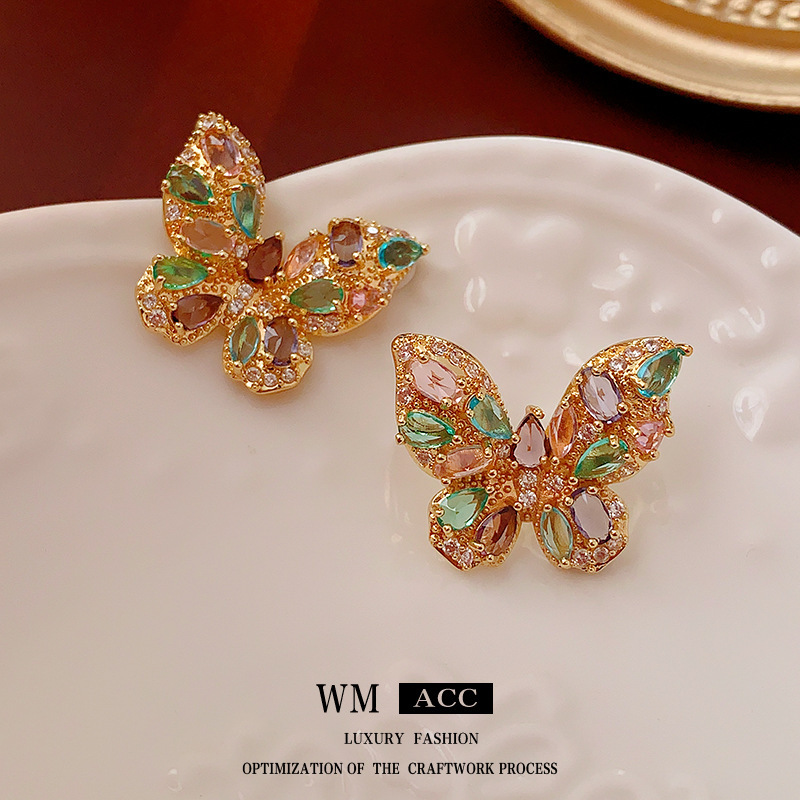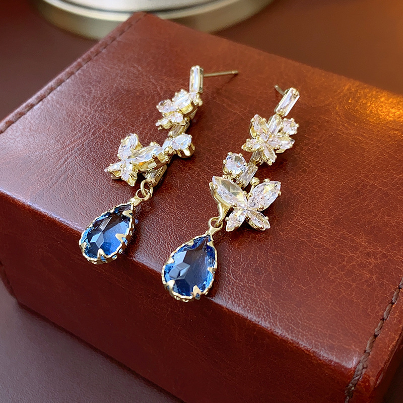 银针锆石蝴蝶水滴重工耳环复古宫廷风耳钉时尚百搭耳饰轻奢高级感