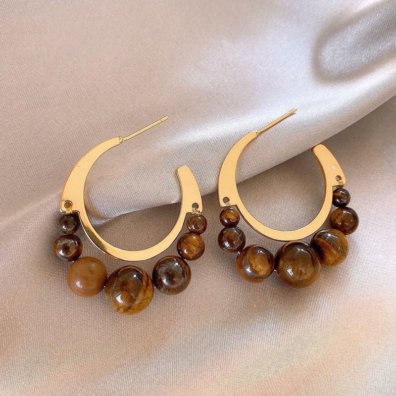 银针爆款虎眼石吊坠耳钉美拉德复古气质百搭耳环轻奢高级感耳饰女