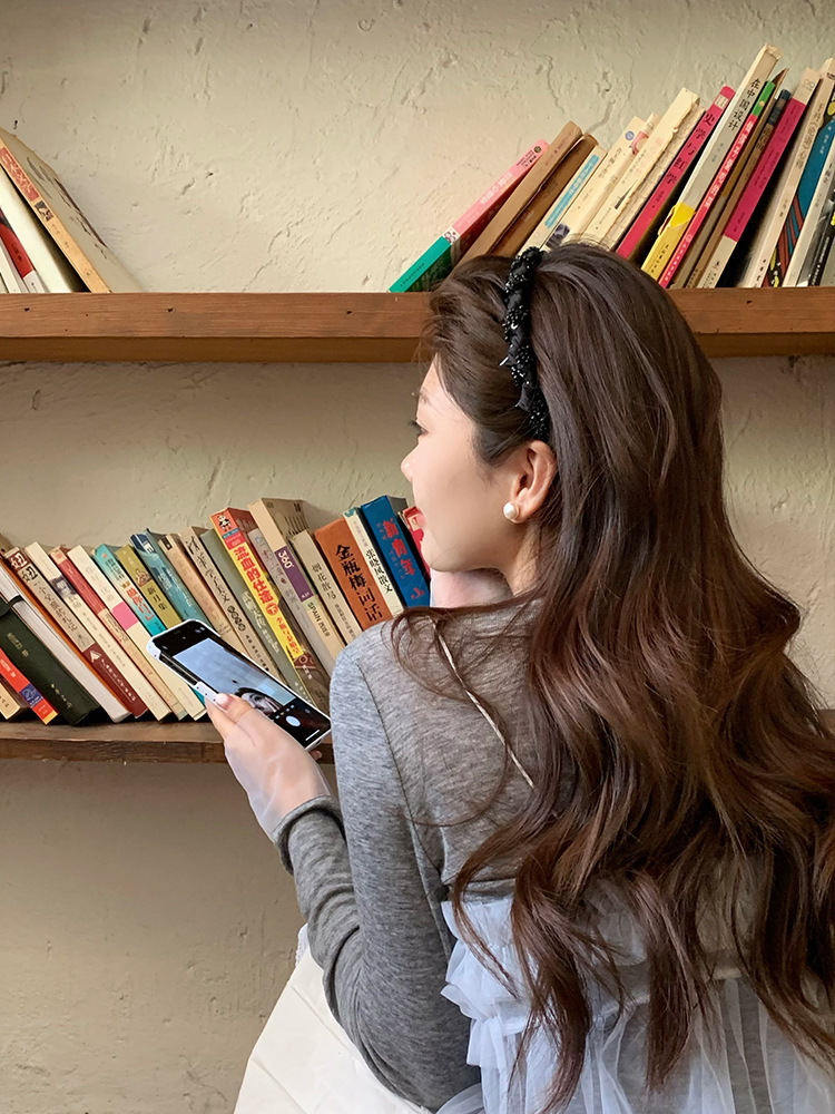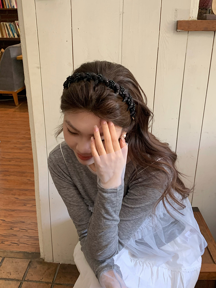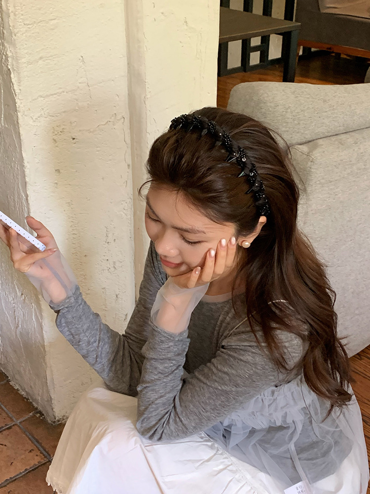 网纱缠绕水晶发箍2026新款带齿时尚简约头饰蓬松高颅顶高级感发饰