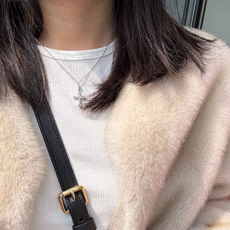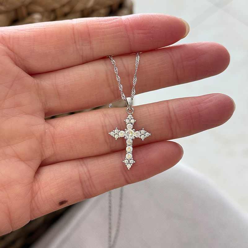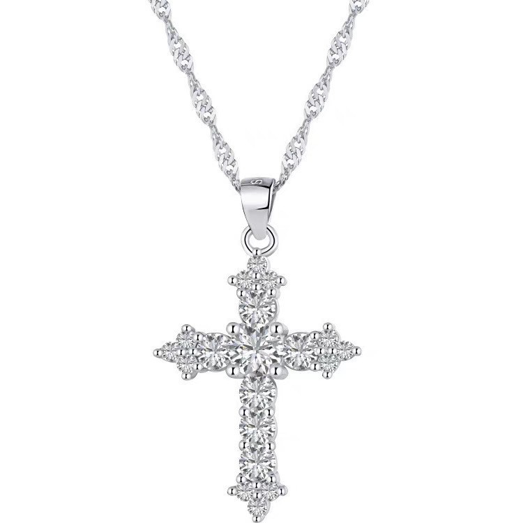 跨境热卖闪钻十字架项链时尚简约轻奢ins小众设计气质锆石吊坠