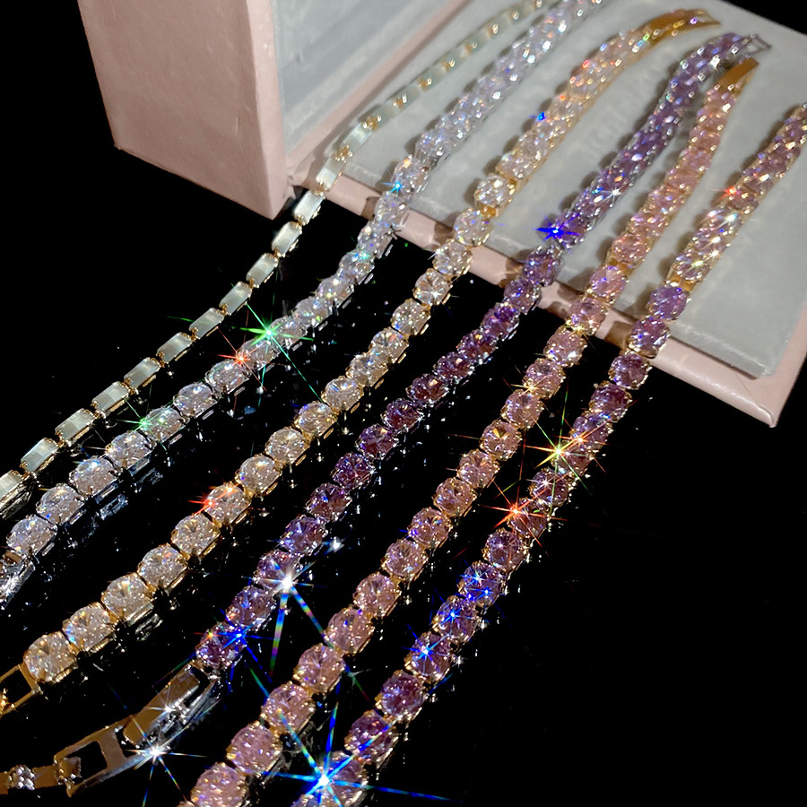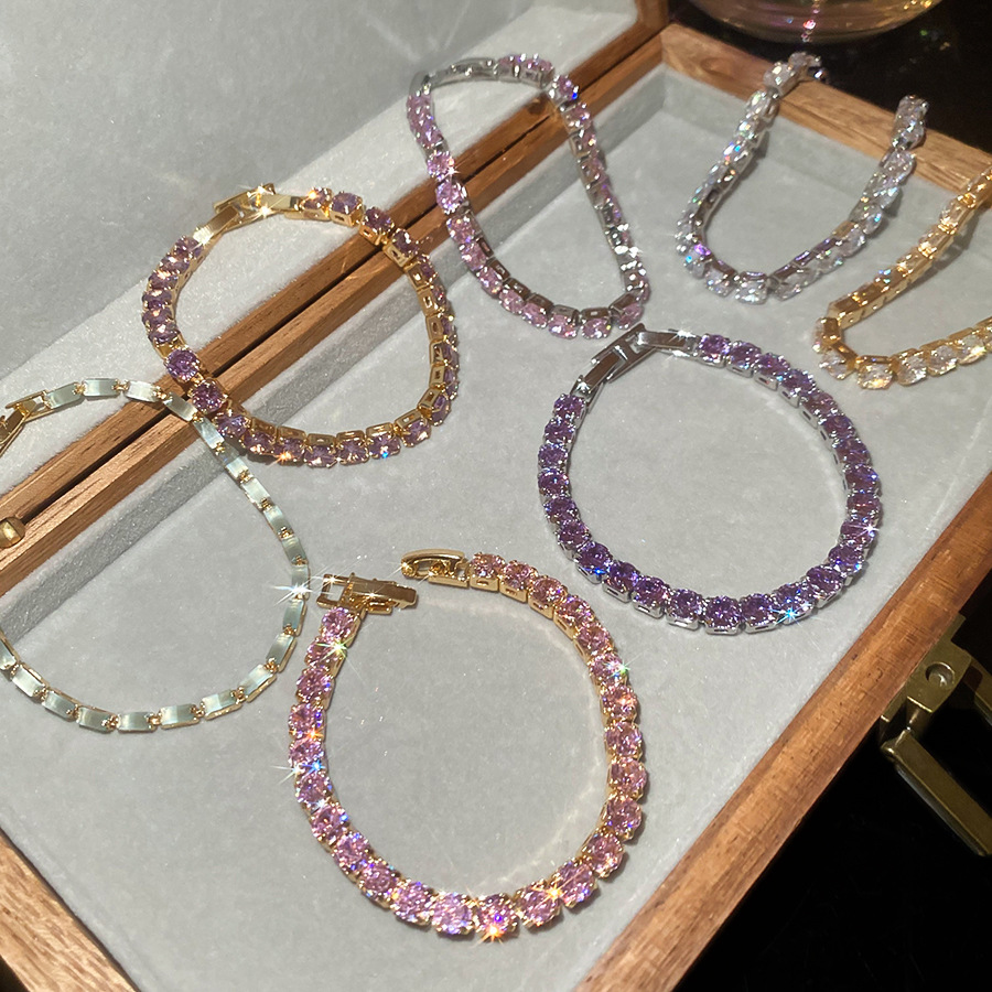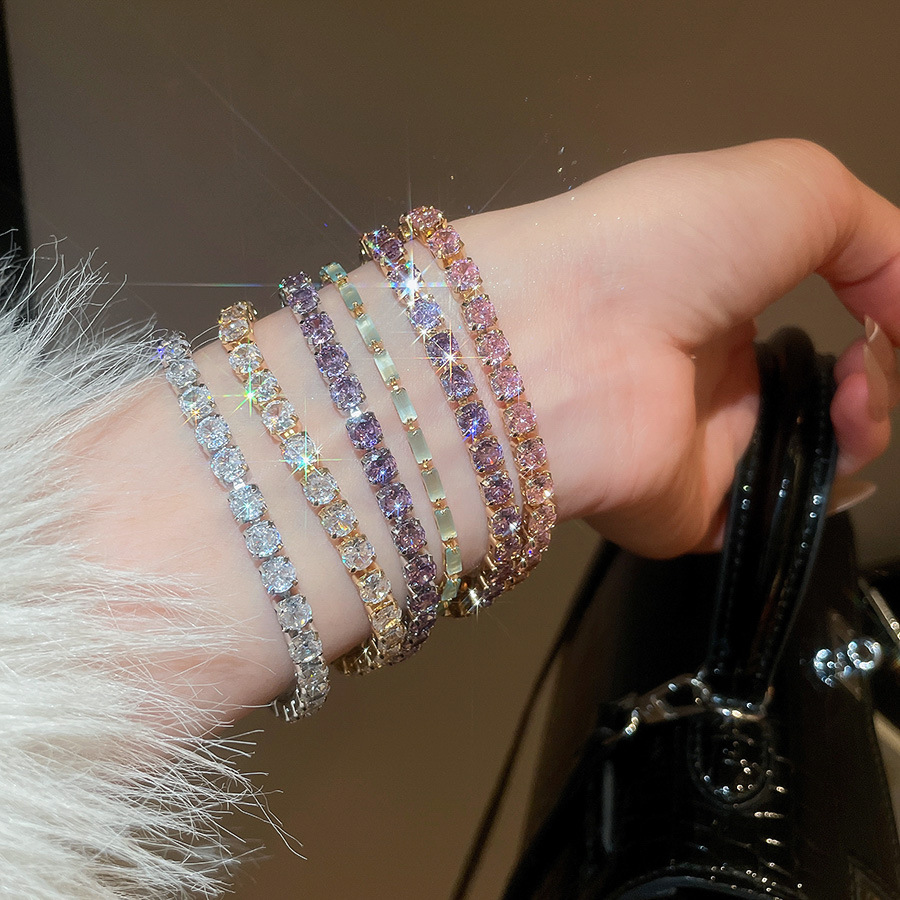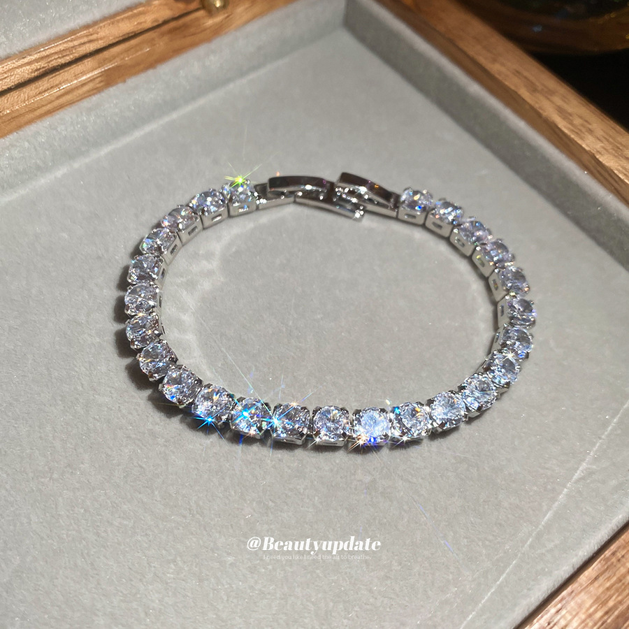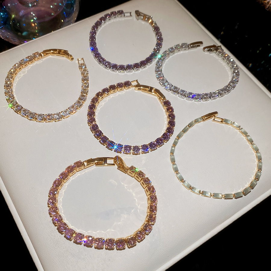 超闪锆石几何方形卡扣手链时尚简约百搭气质手环轻奢高级感手饰女