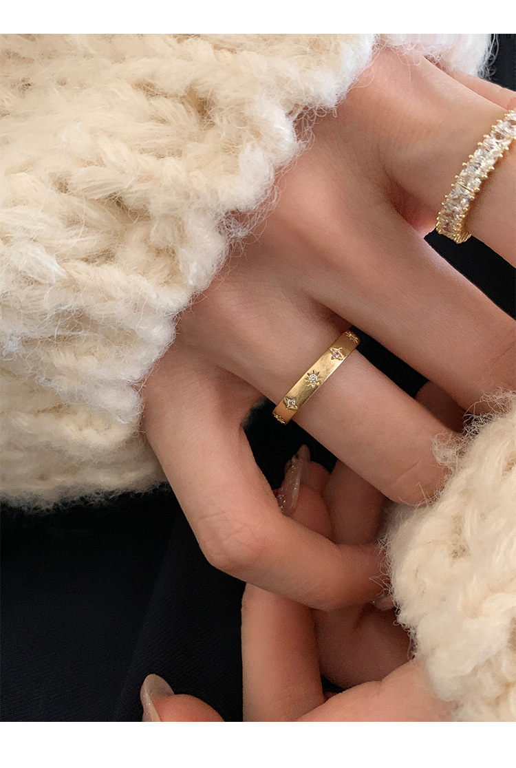 中古vintage方形锆石开口戒指女小众网红风指环ins小众高级感手饰