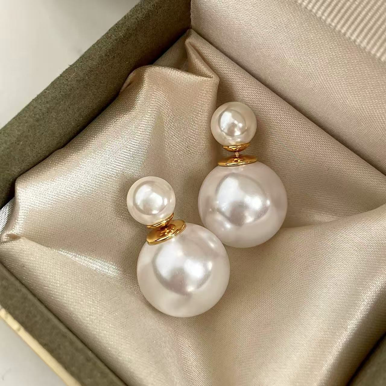 银针法式复古圆形珍珠耳钉简约时尚日常百搭耳环轻奢高级感耳饰女