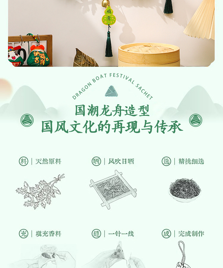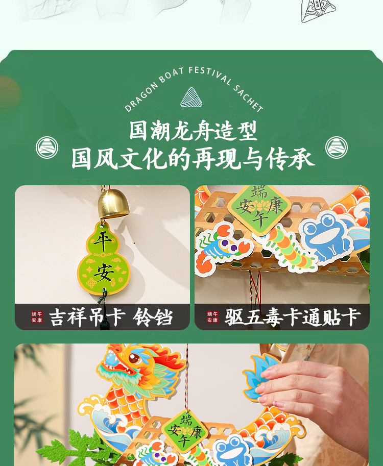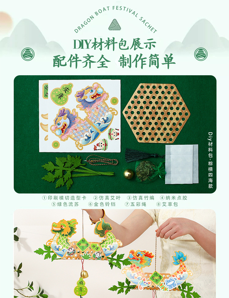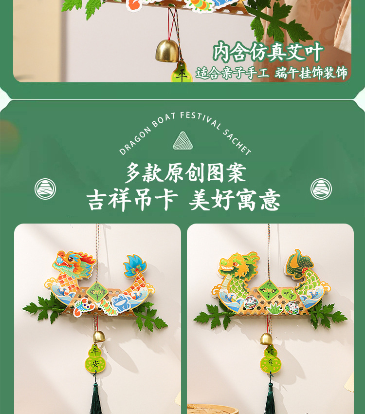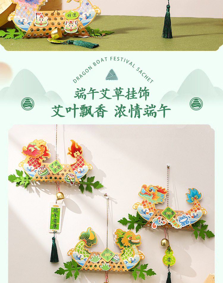 端午节艾草门挂国潮龙舟挂饰驱蚊香包小挂件手工DIY材料包礼物品