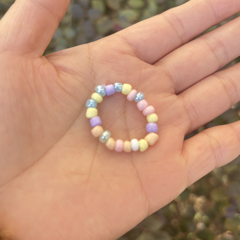 新款彩色米珠戒指串珠弹力指环时尚珍珠小米珠戒指批发