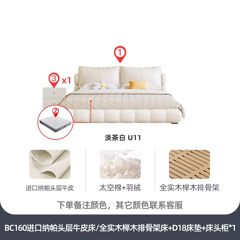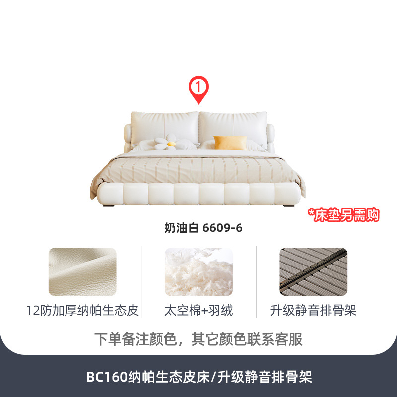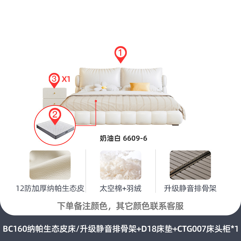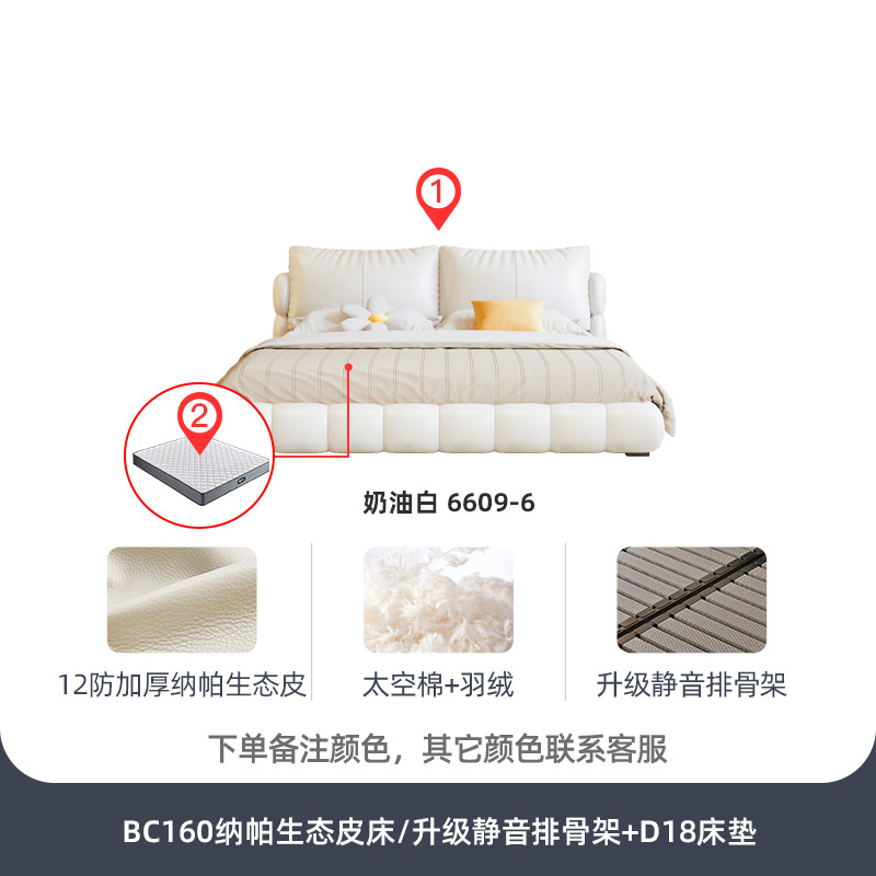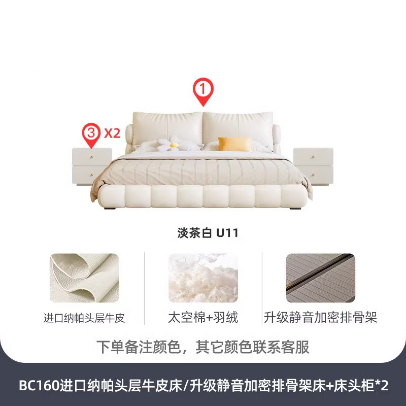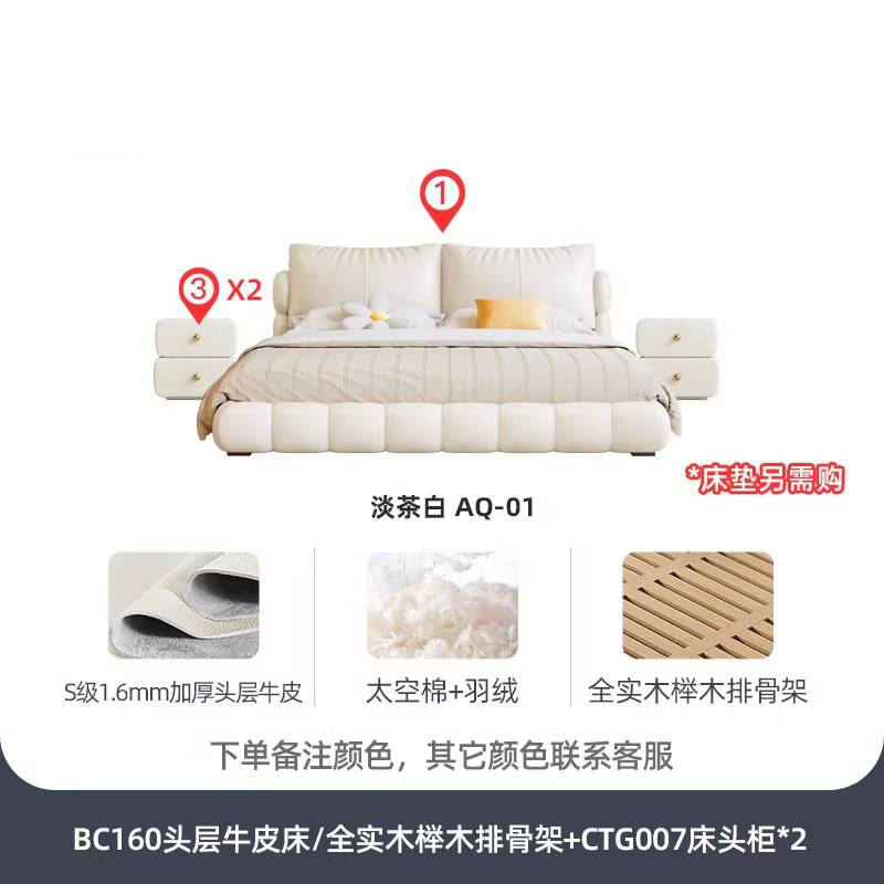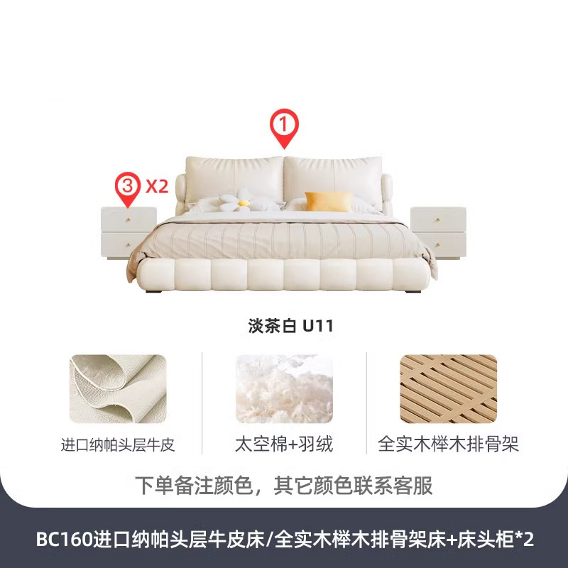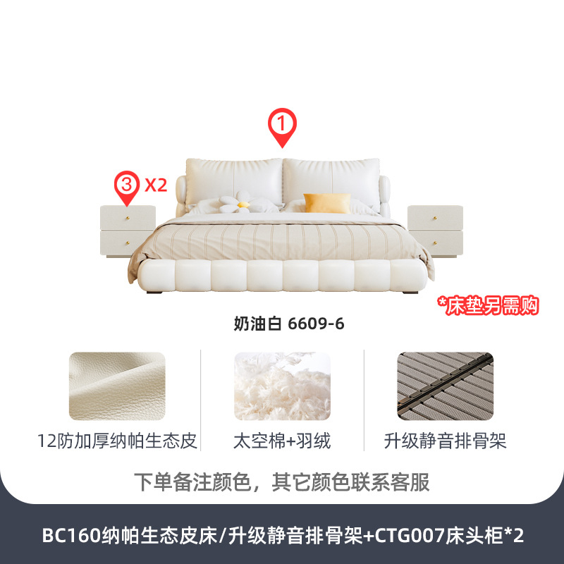 法式奶油风现代简约可拆床主卧佛山落地轻奢软包围边头层真皮床