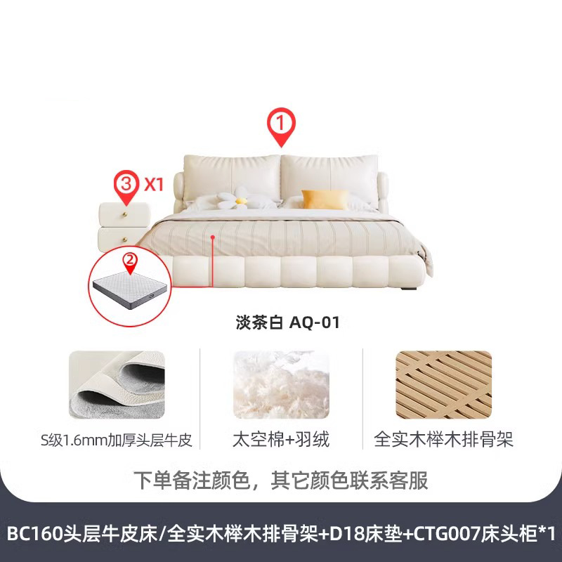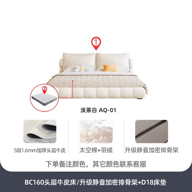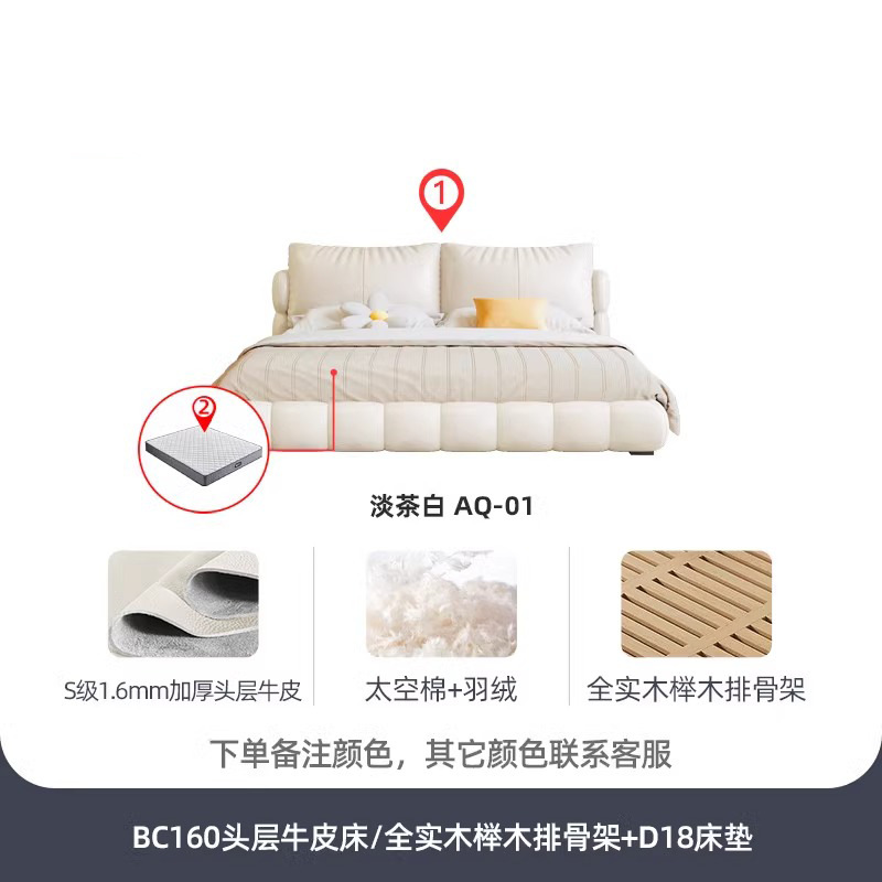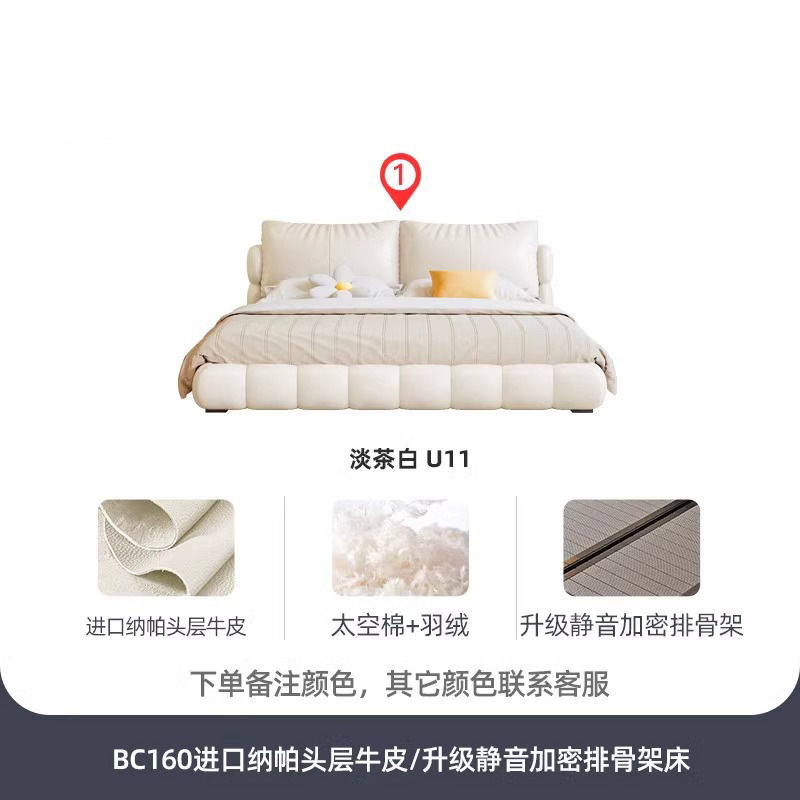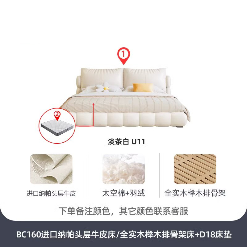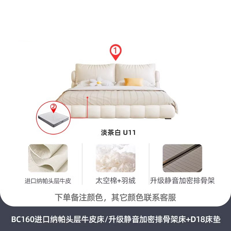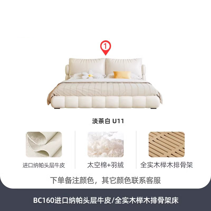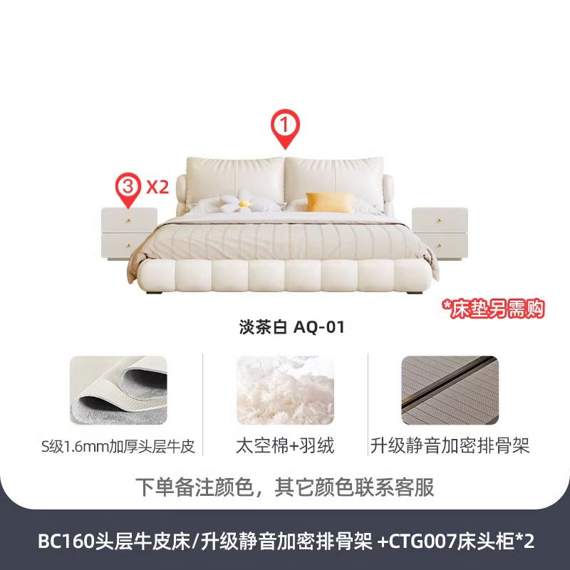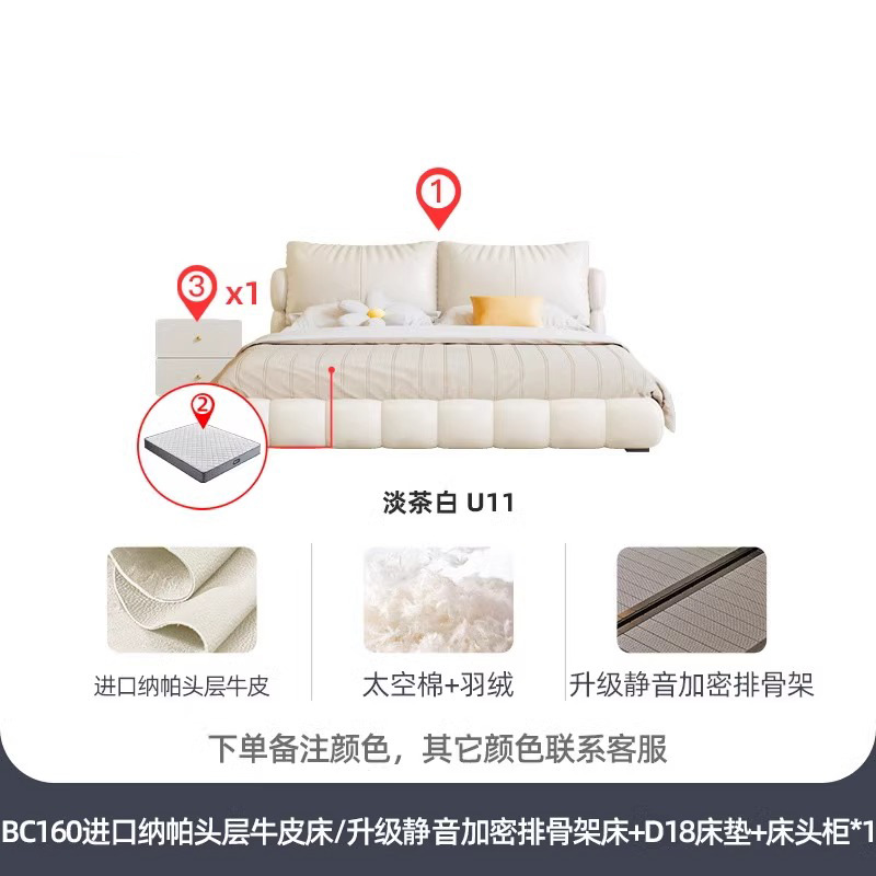 法式奶油风现代简约可拆床主卧佛山落地轻奢软包围边头层真皮床