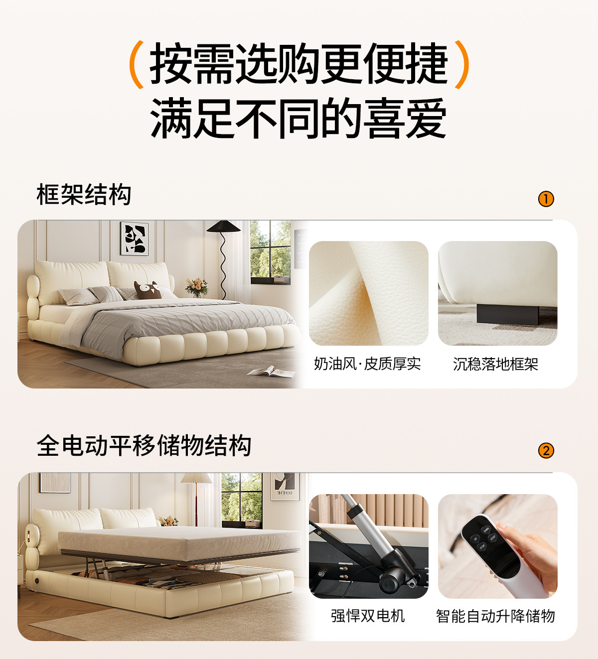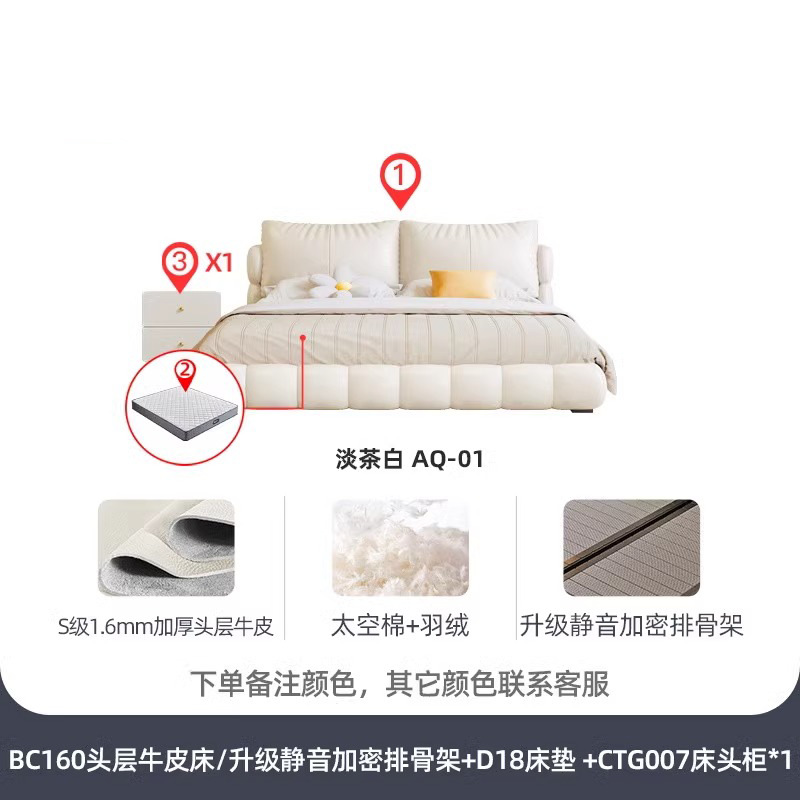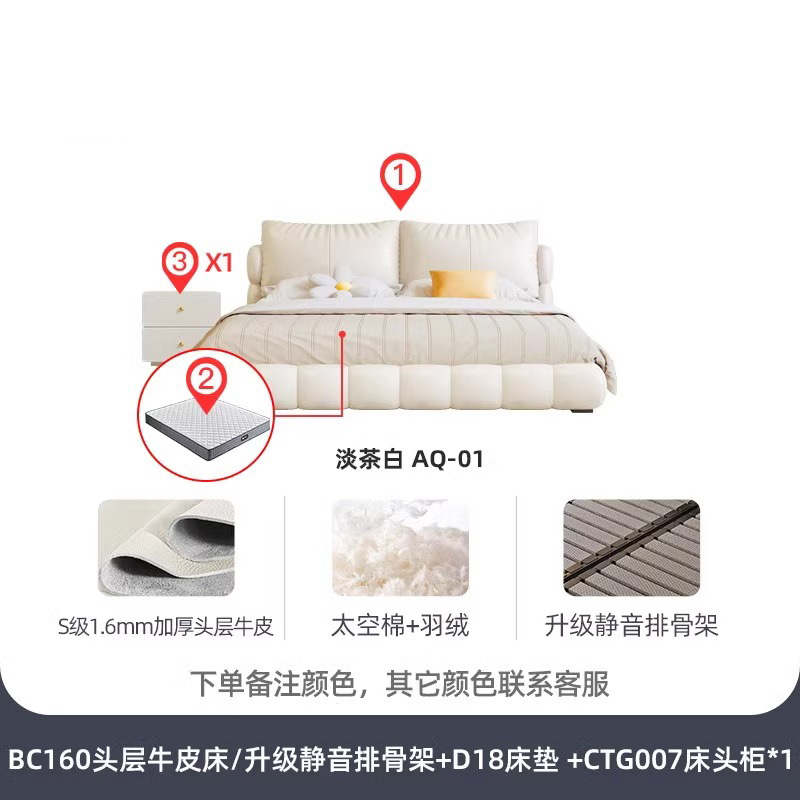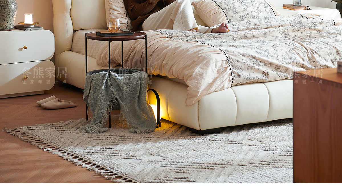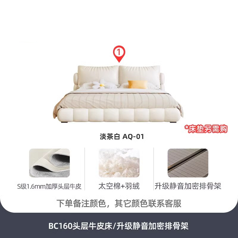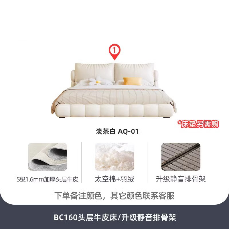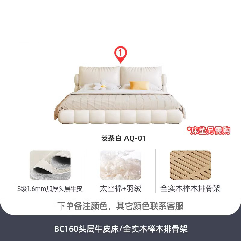法式奶油风现代简约可拆床主卧佛山落地轻奢软包围边头层真皮床