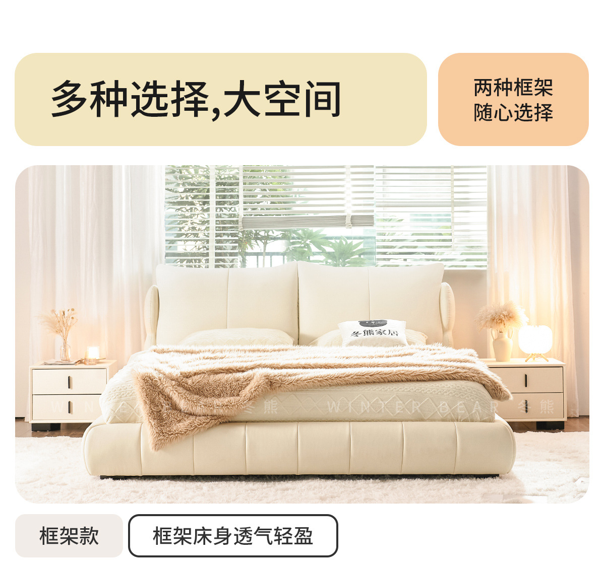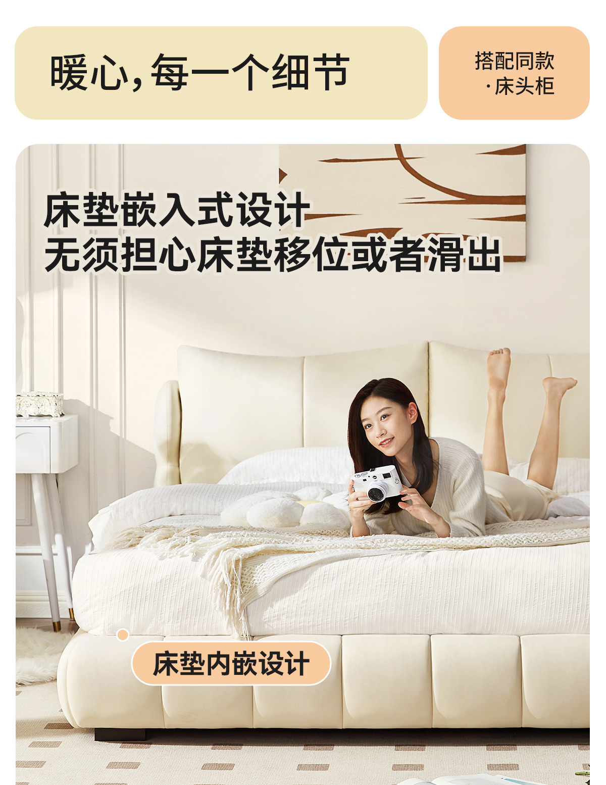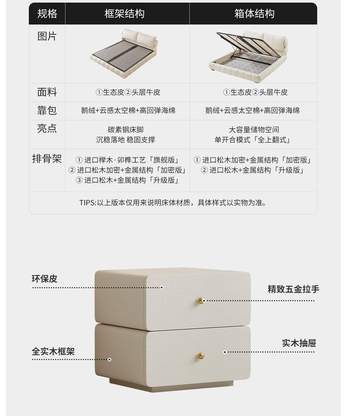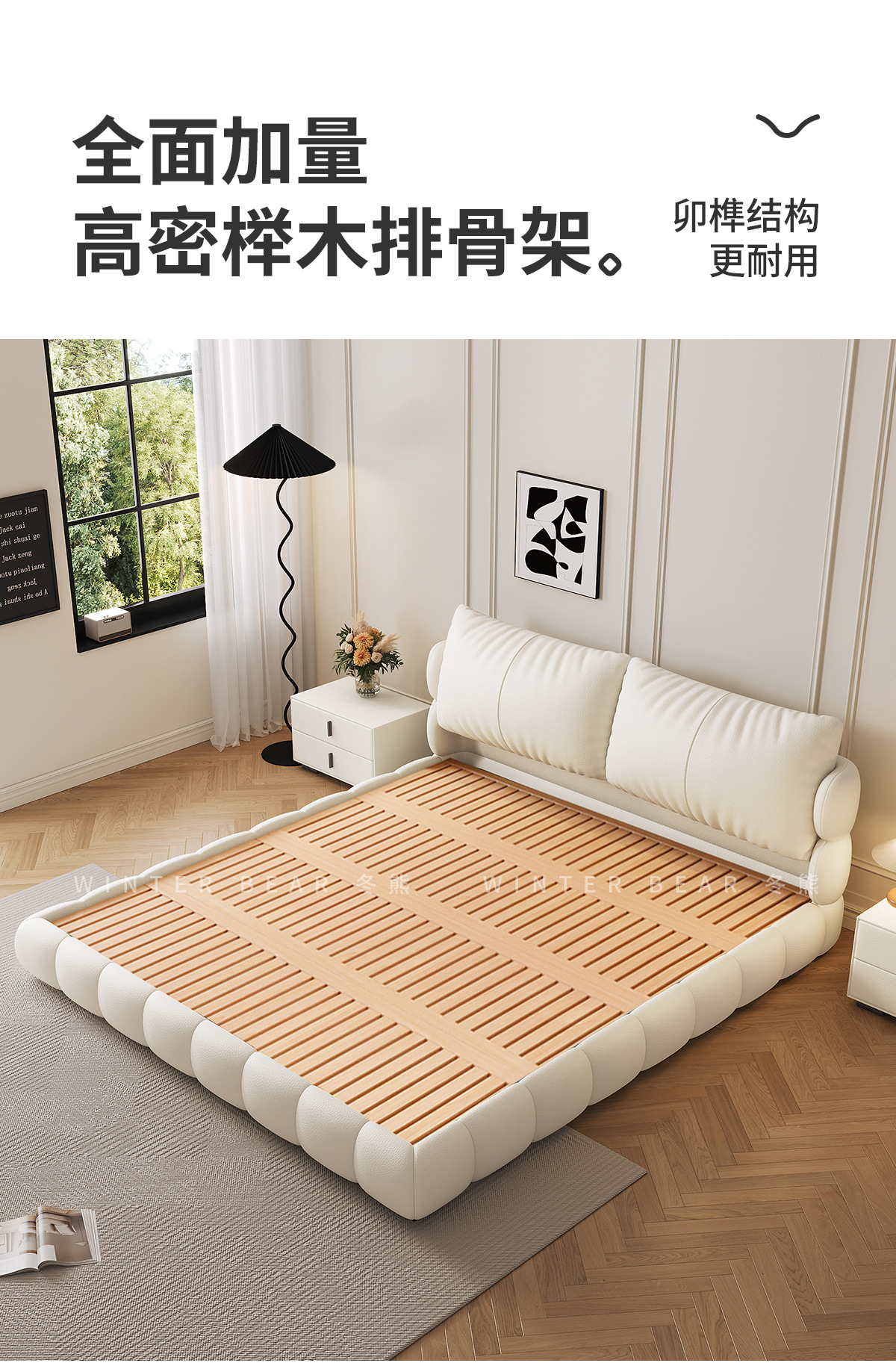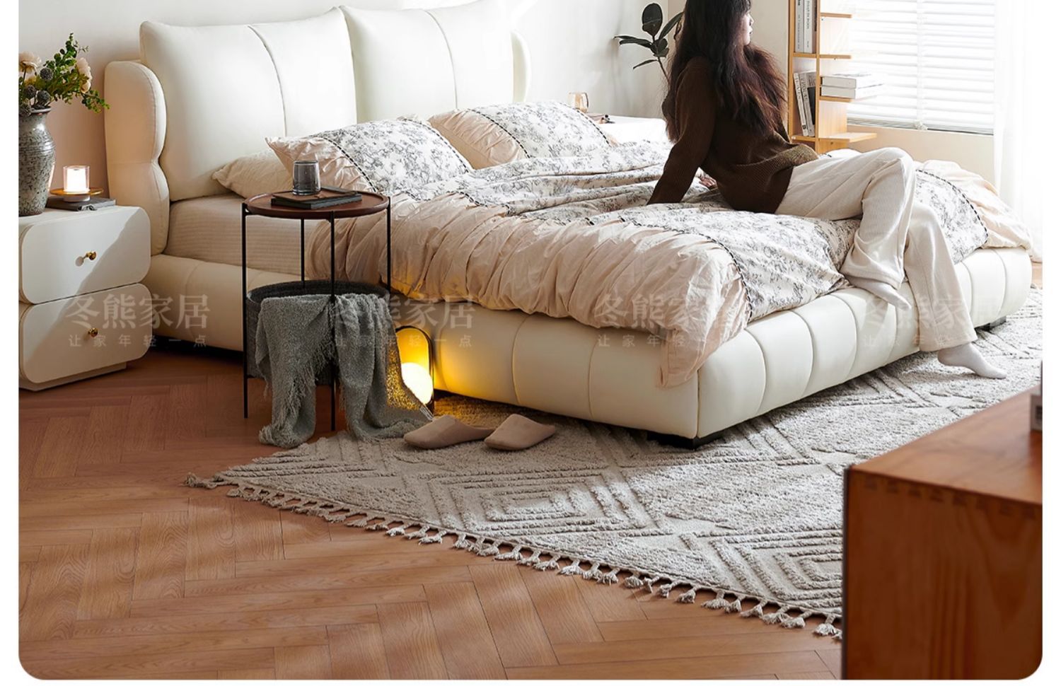 法式奶油风现代简约可拆床主卧佛山落地轻奢软包围边头层真皮床