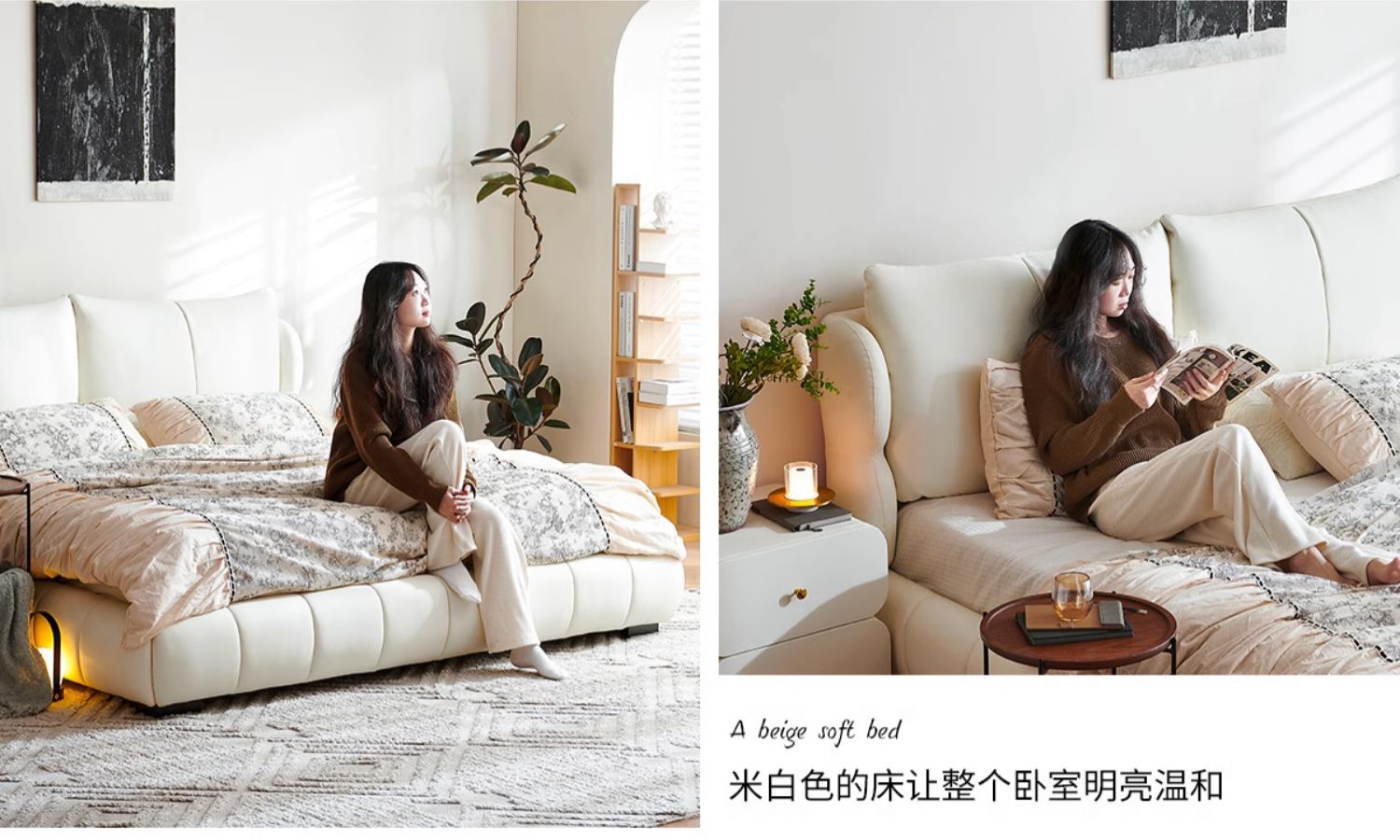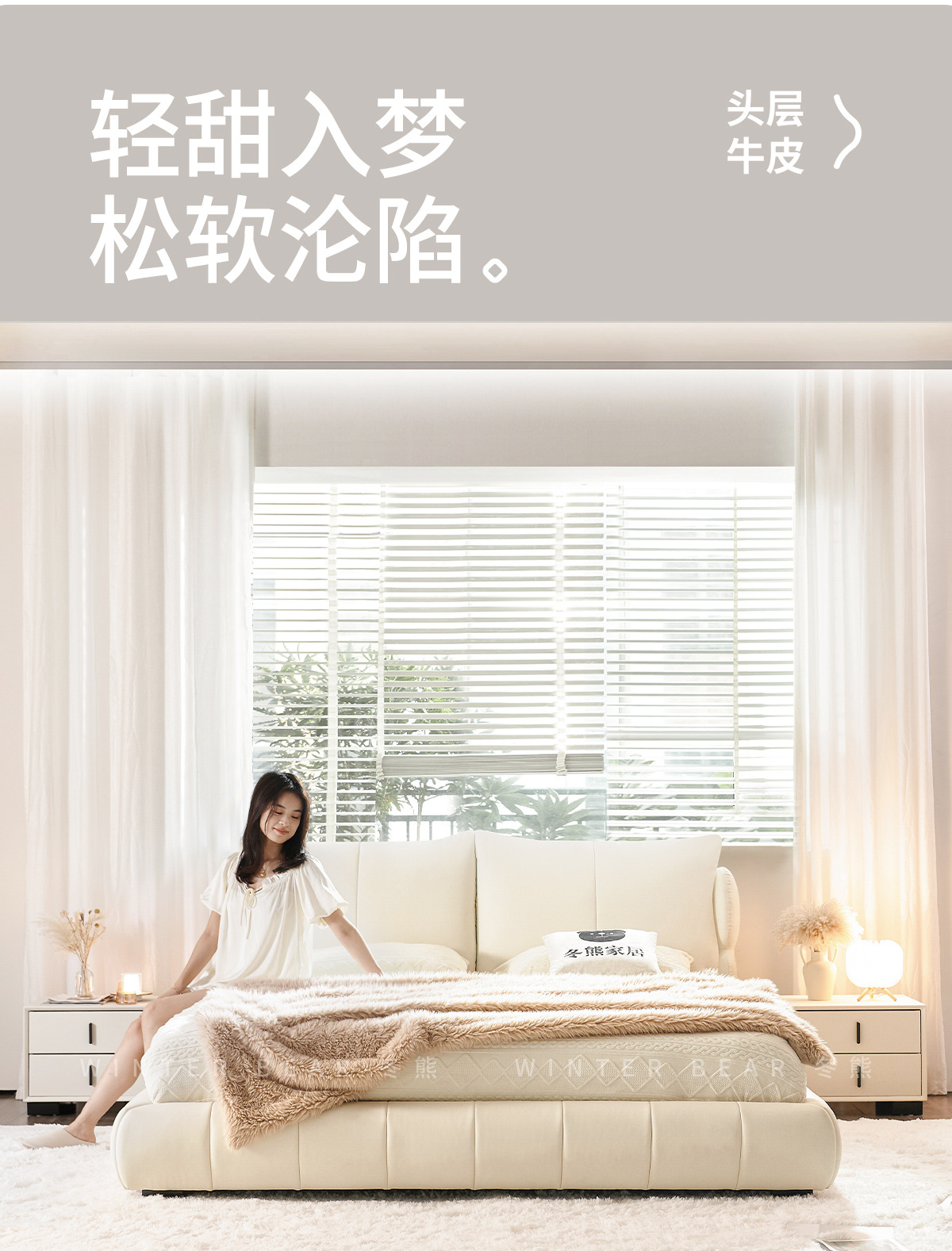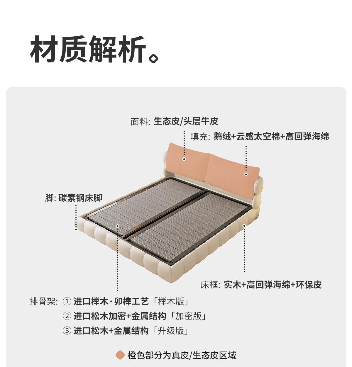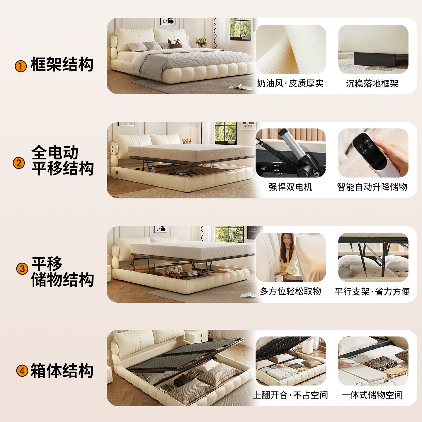 法式奶油风现代简约可拆床主卧佛山落地轻奢软包围边头层真皮床