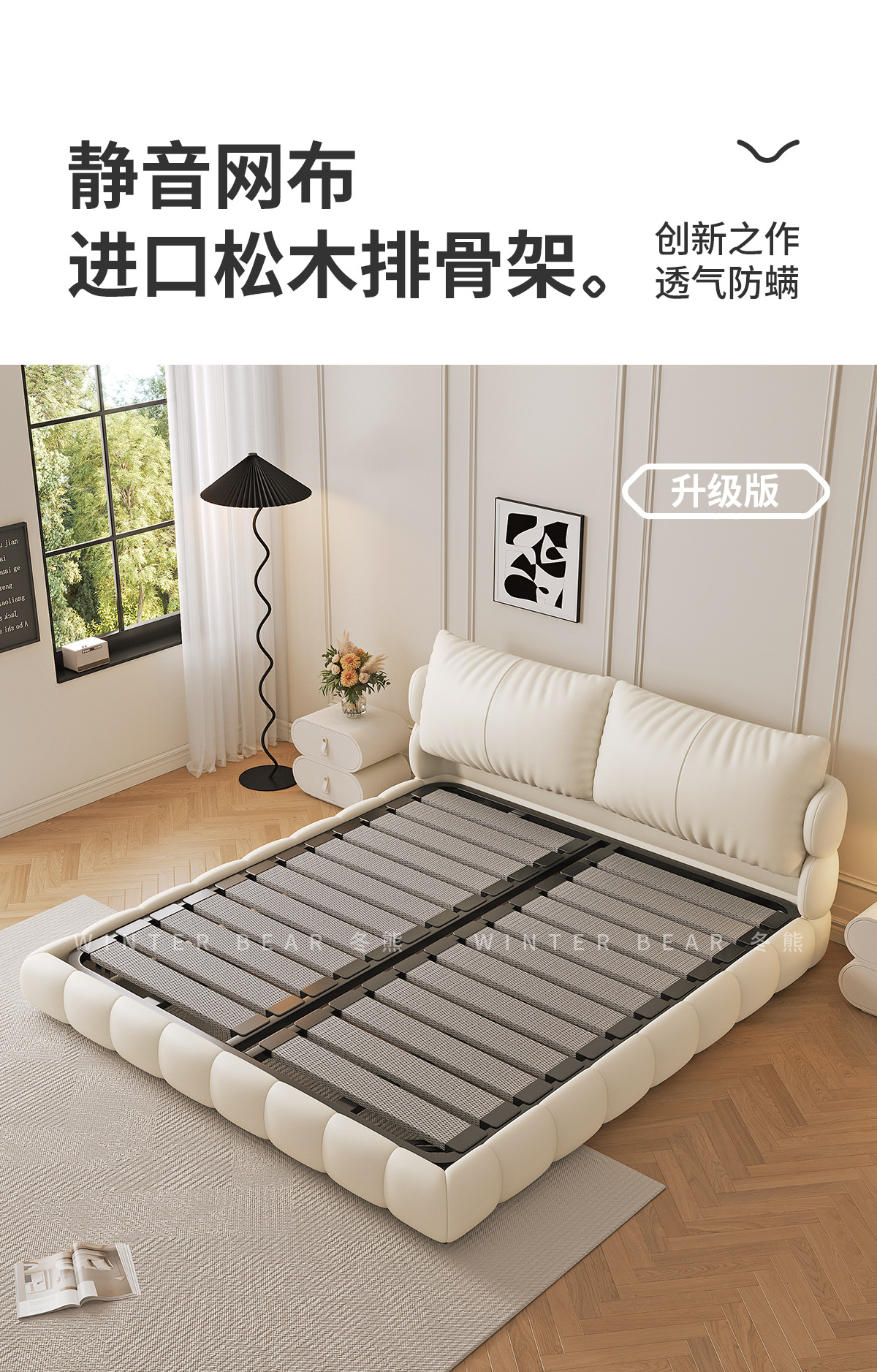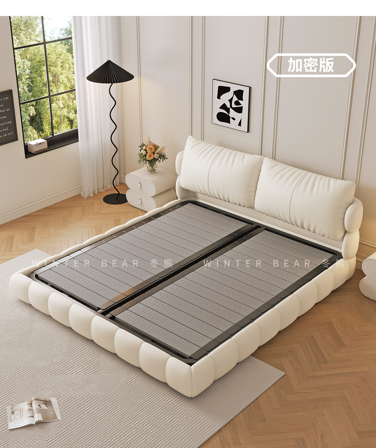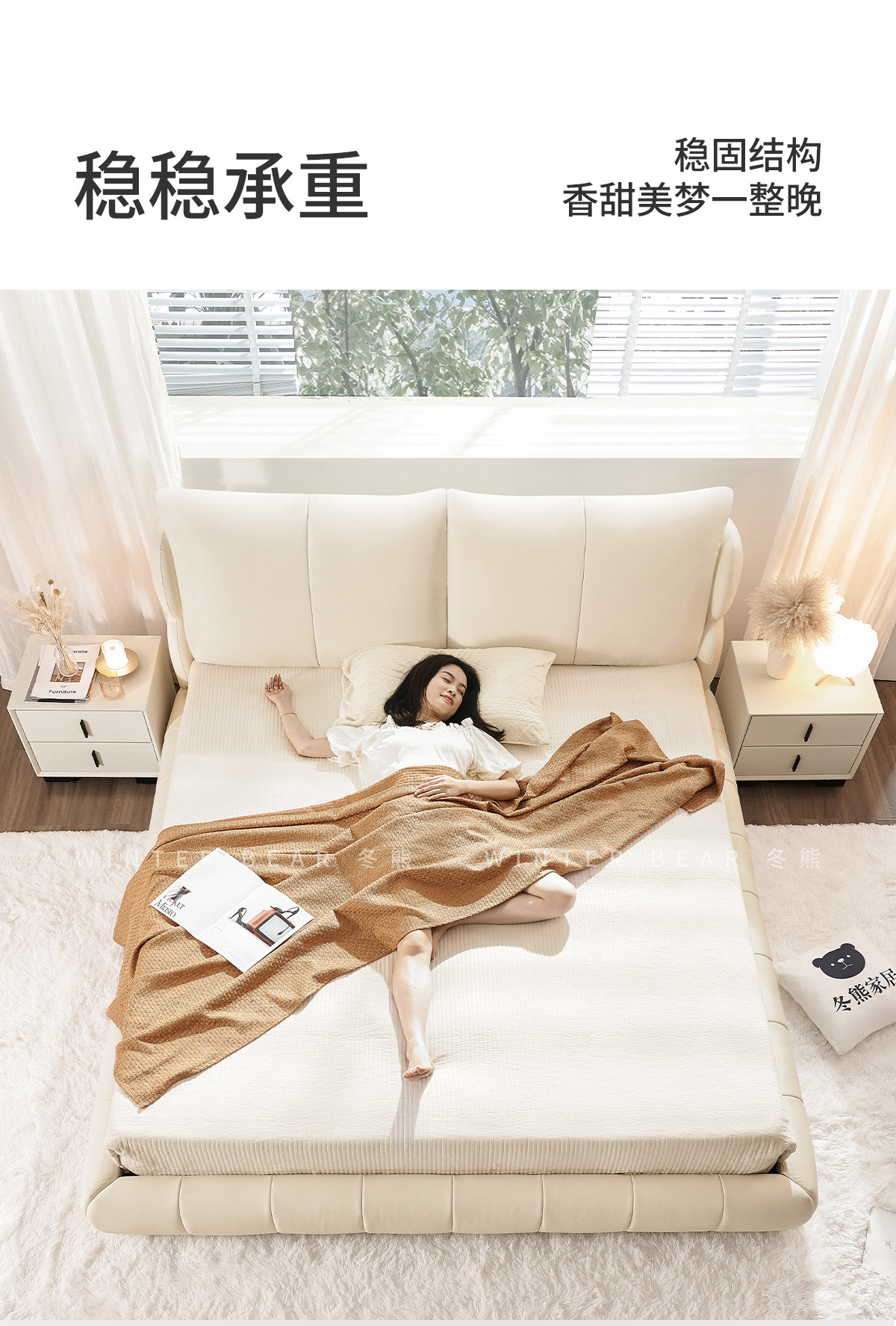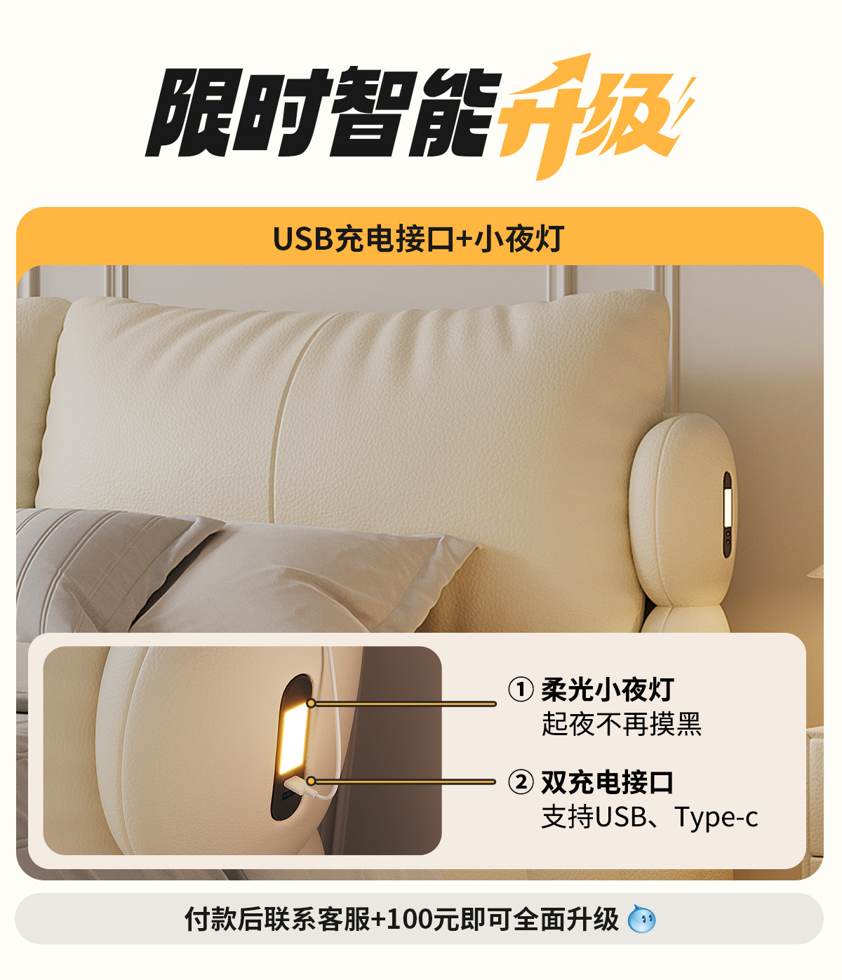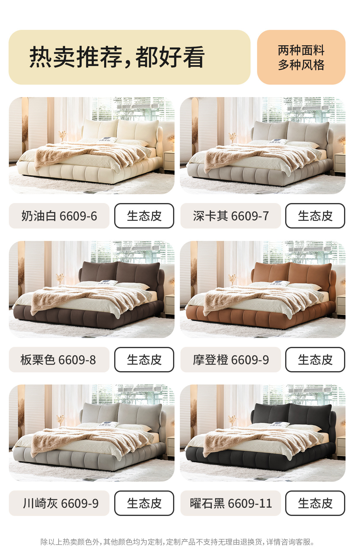 法式奶油风现代简约可拆床主卧佛山落地轻奢软包围边头层真皮床