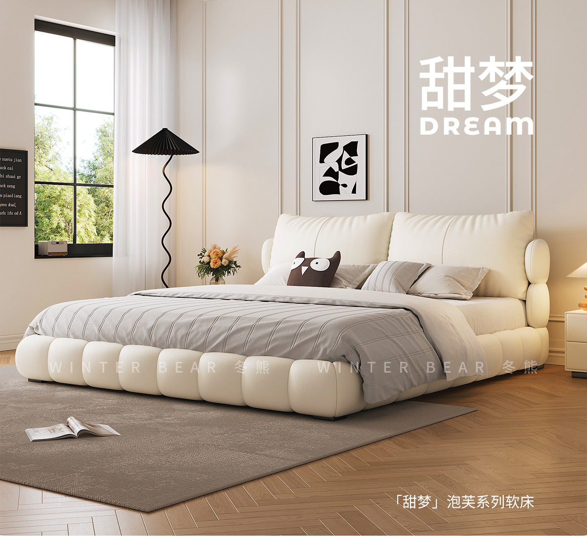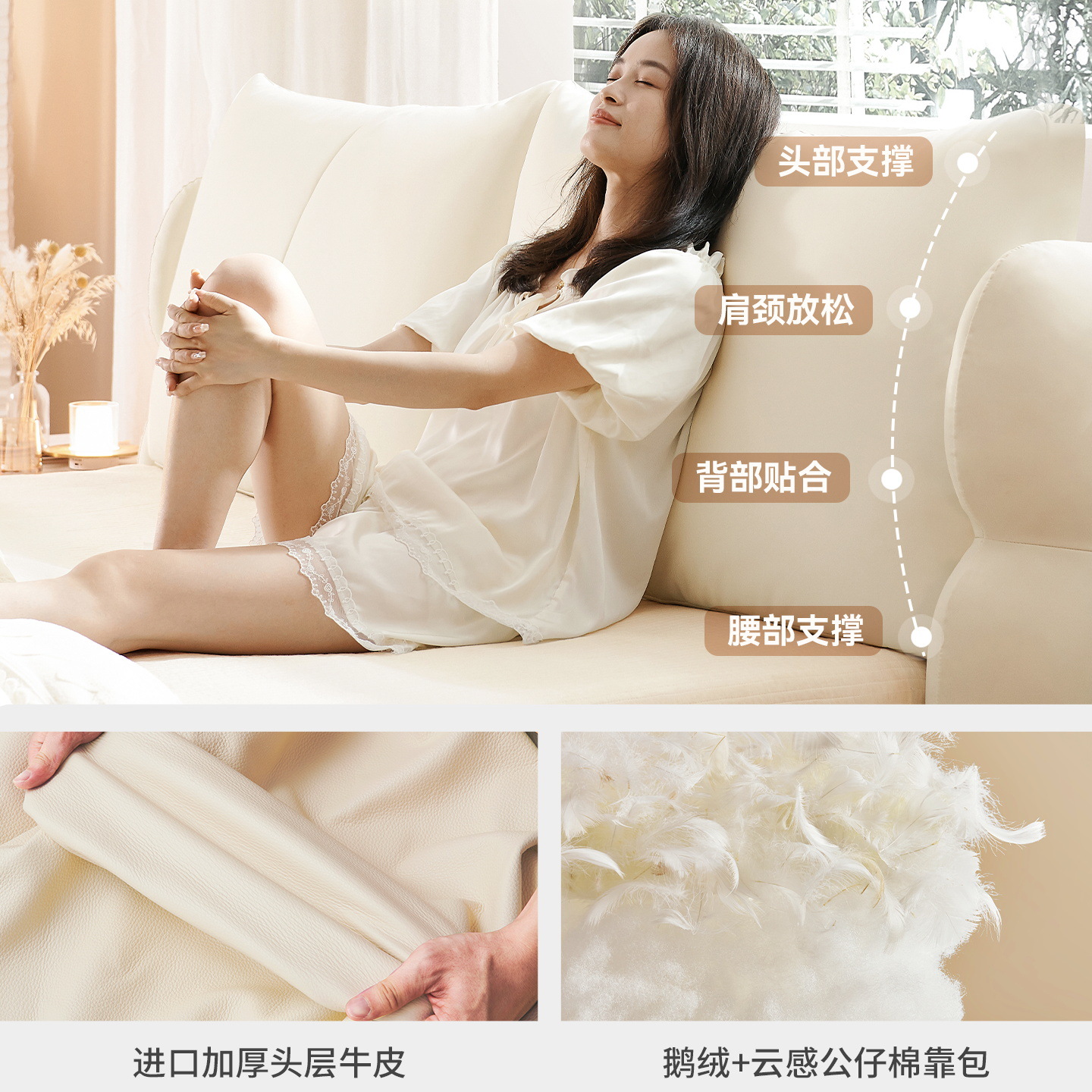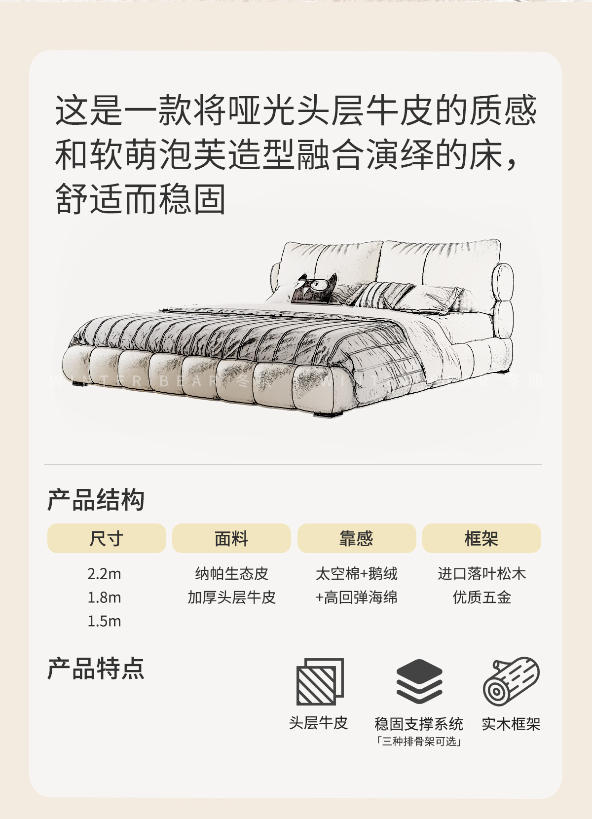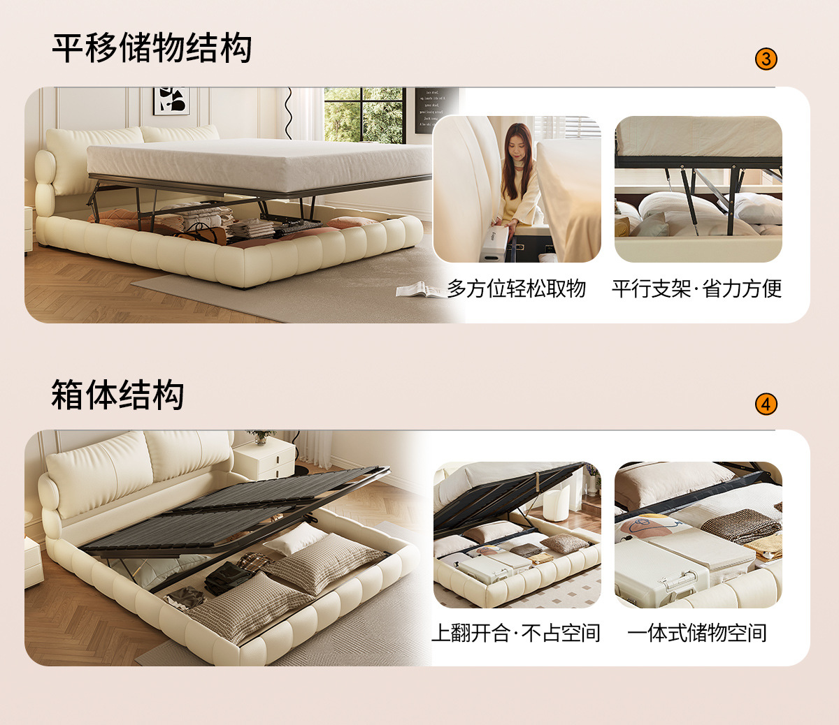 法式奶油风现代简约可拆床主卧佛山落地轻奢软包围边头层真皮床