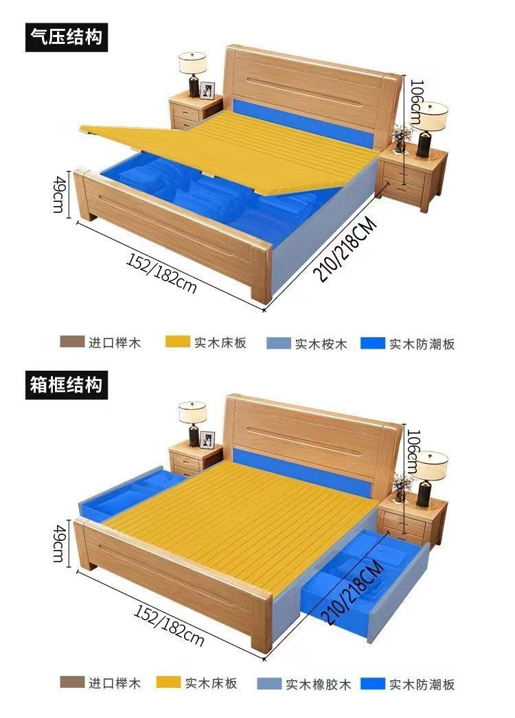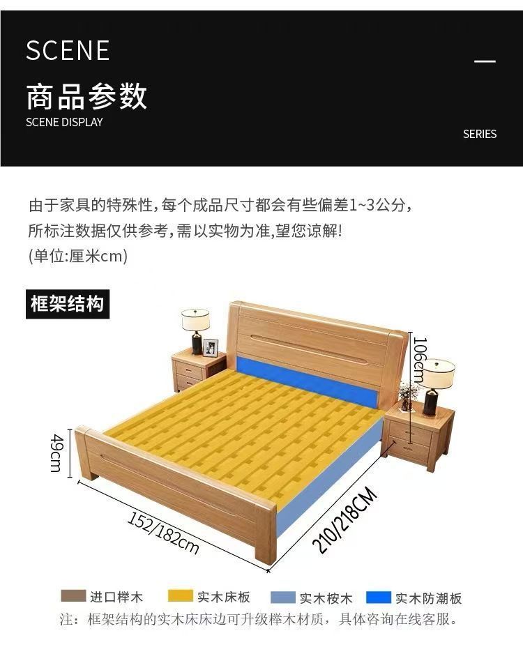 榉木实木床1.8米1.35m经济型1.2m工厂直销1.5米单双人床2米简约床