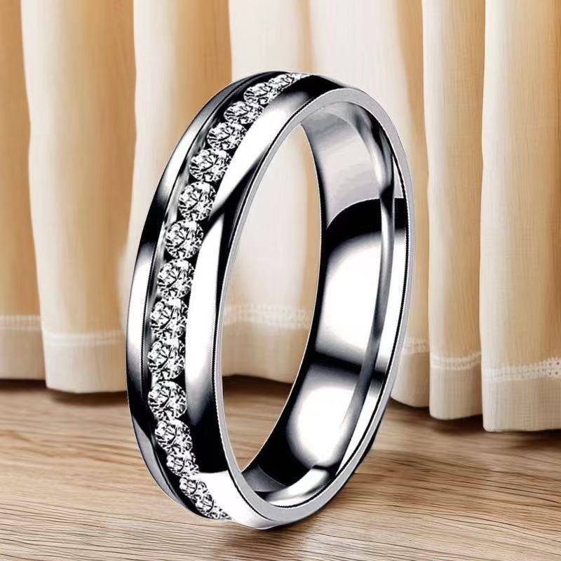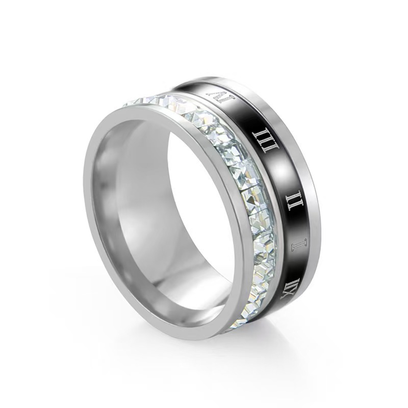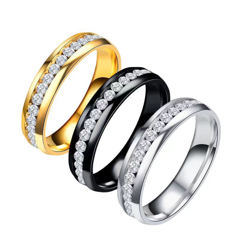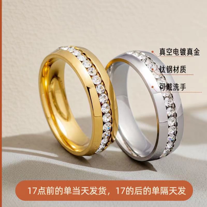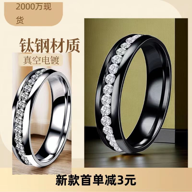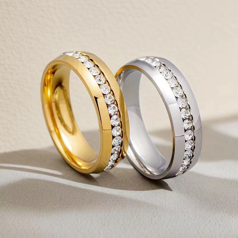 不锈钢戒指欧美跨境镶钻钛钢戒指 指环女冷淡韩版个性复古小众6mm