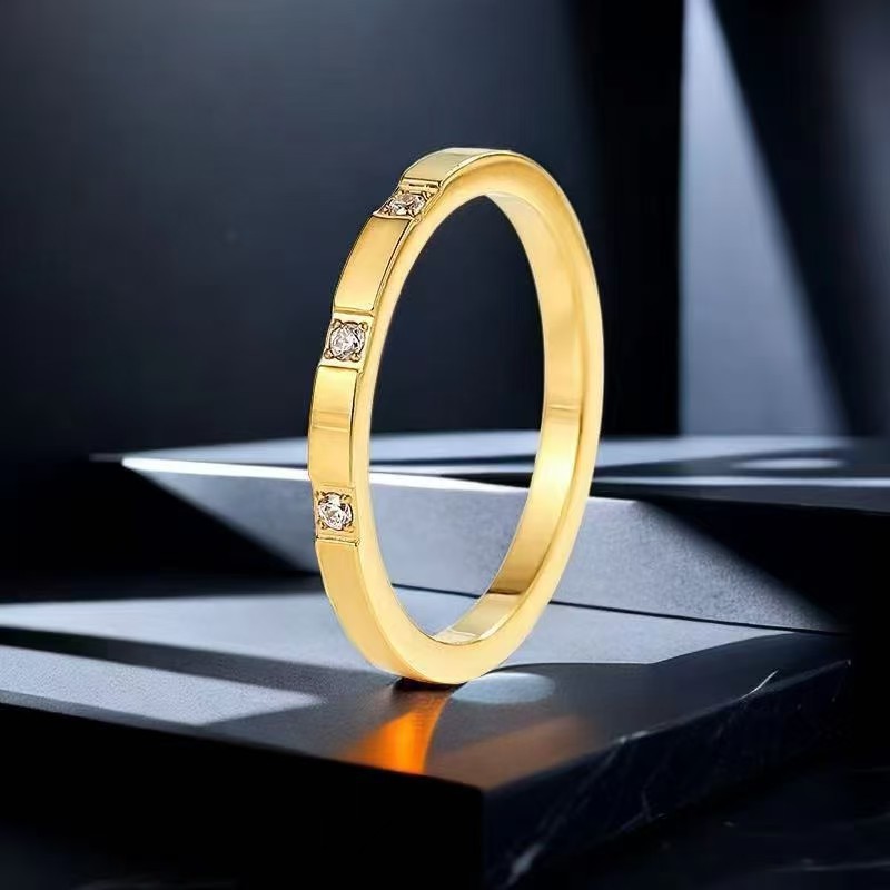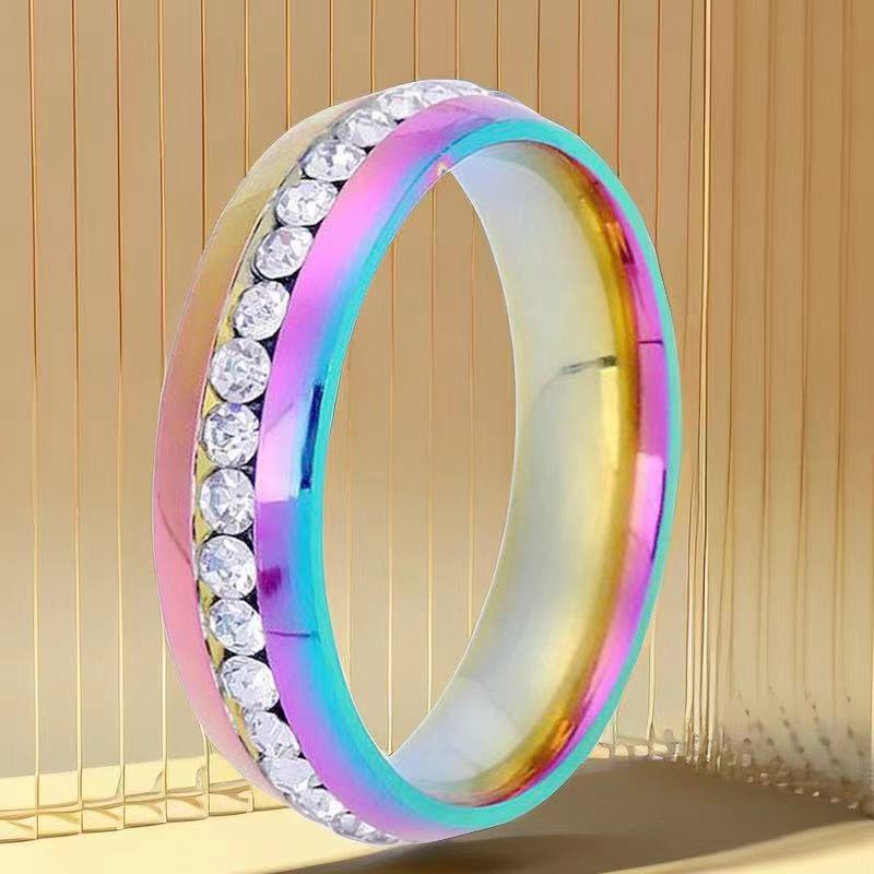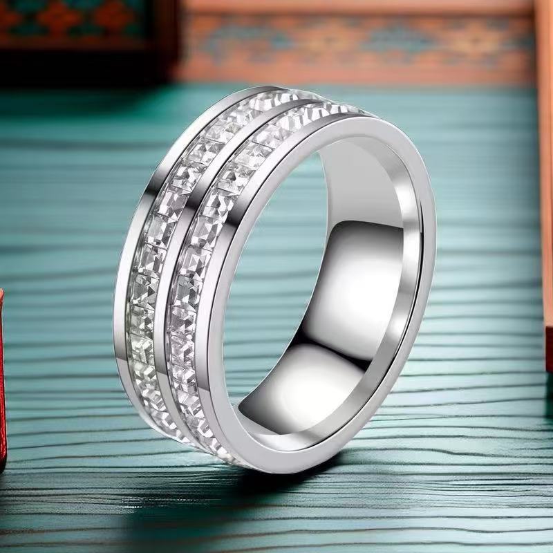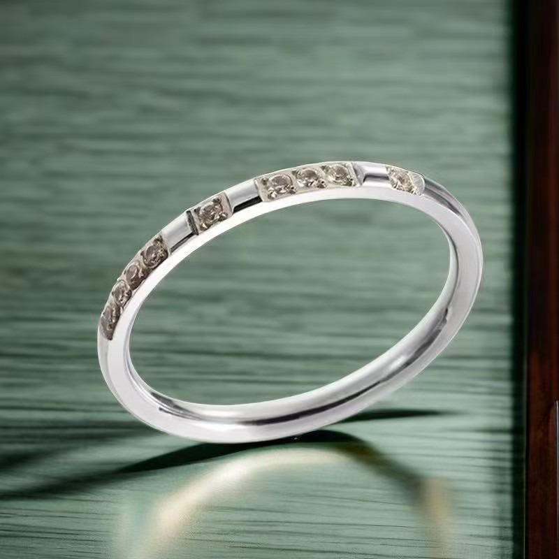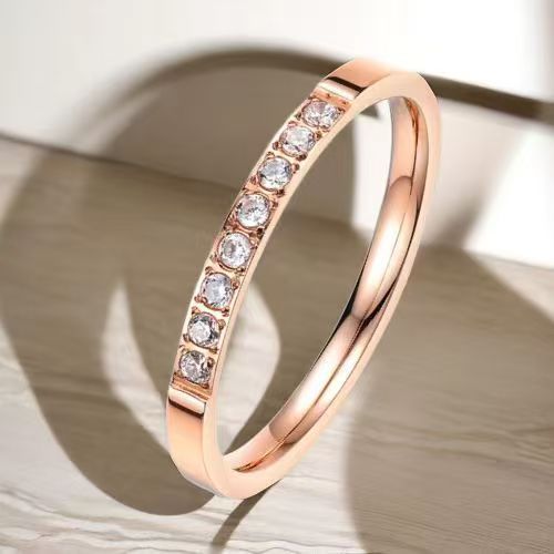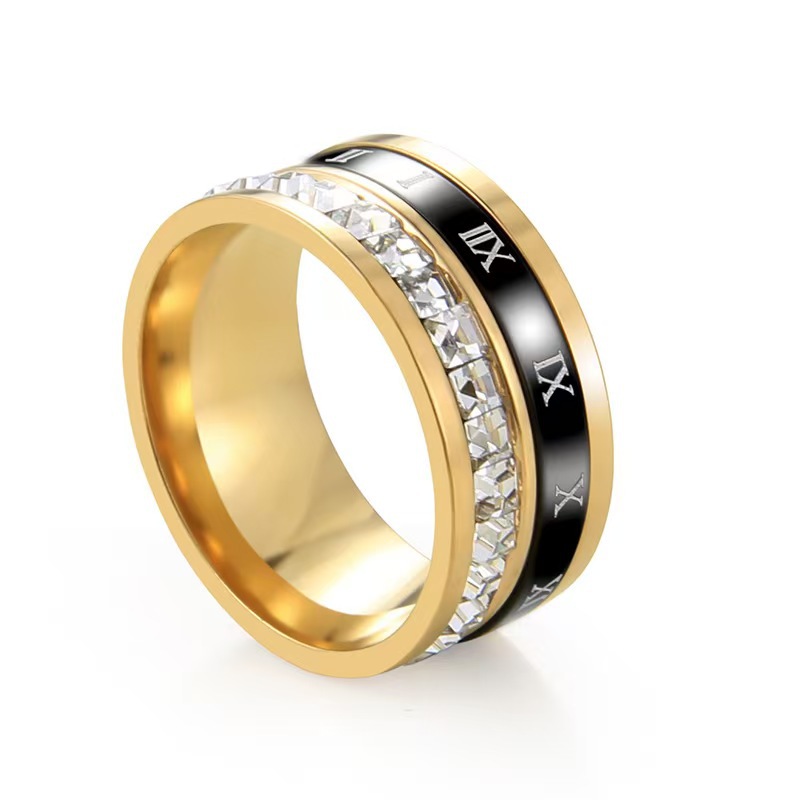 不锈钢戒指欧美跨境镶钻钛钢戒指 指环女冷淡韩版个性复古小众6mm