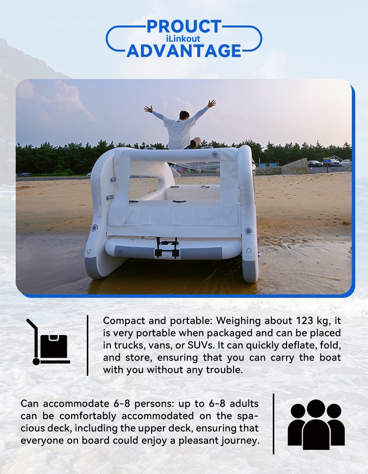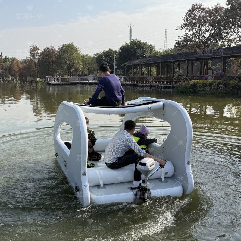 跨境出口水上充气游艇厂家直供游艇景区观光游船太阳能永动机浮台