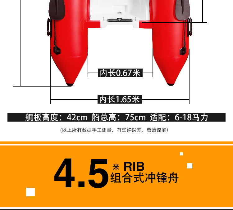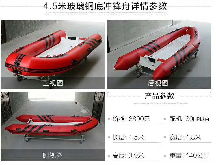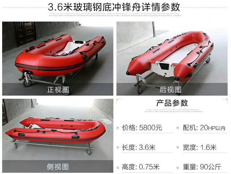 RIB玻璃钢冲锋舟钓鱼船漂流冲浪游艇前操高速艇充气船硬底耐磨艇