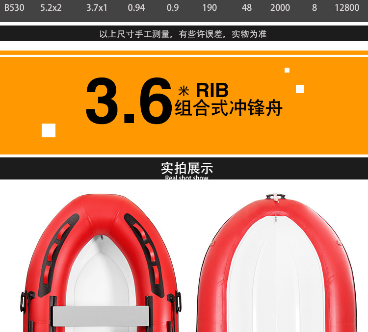 | 3.6米RIB冲锋舟厚度 1.2MM | USD $1593.25 | 88 piece available |