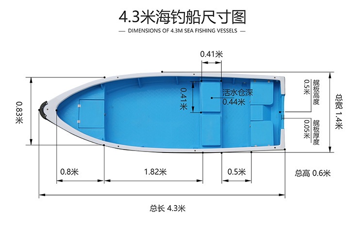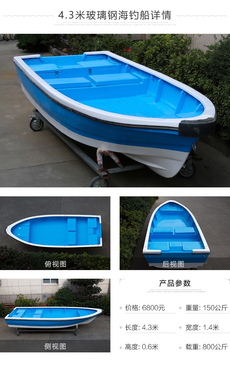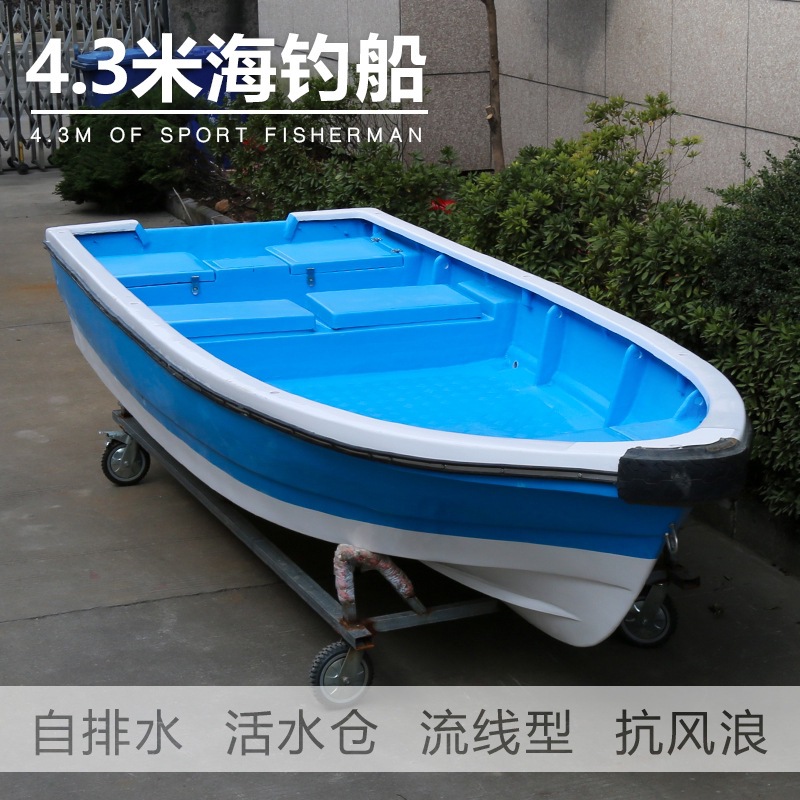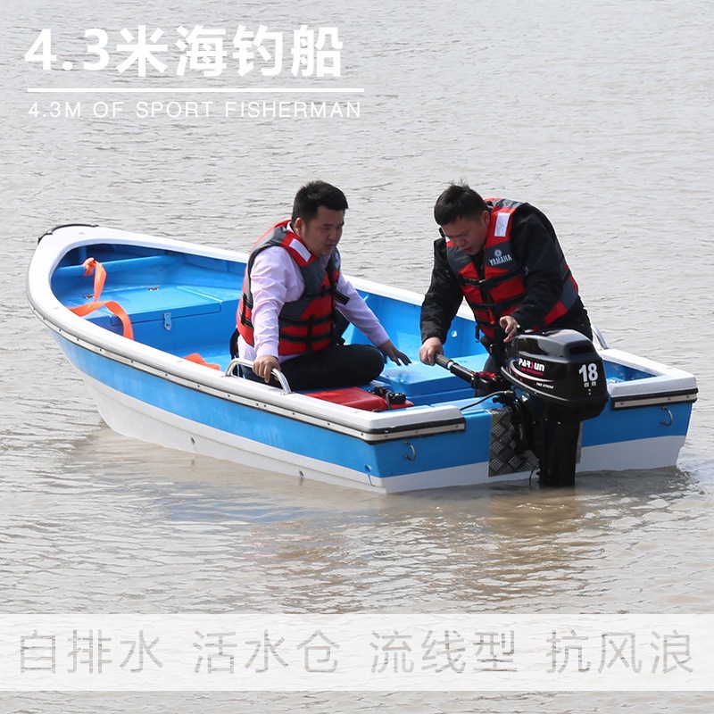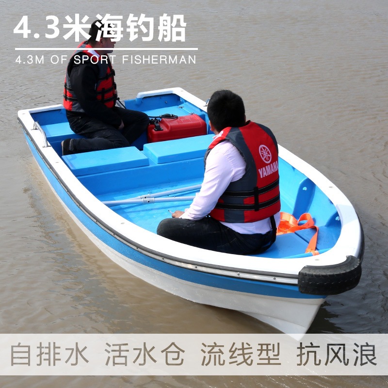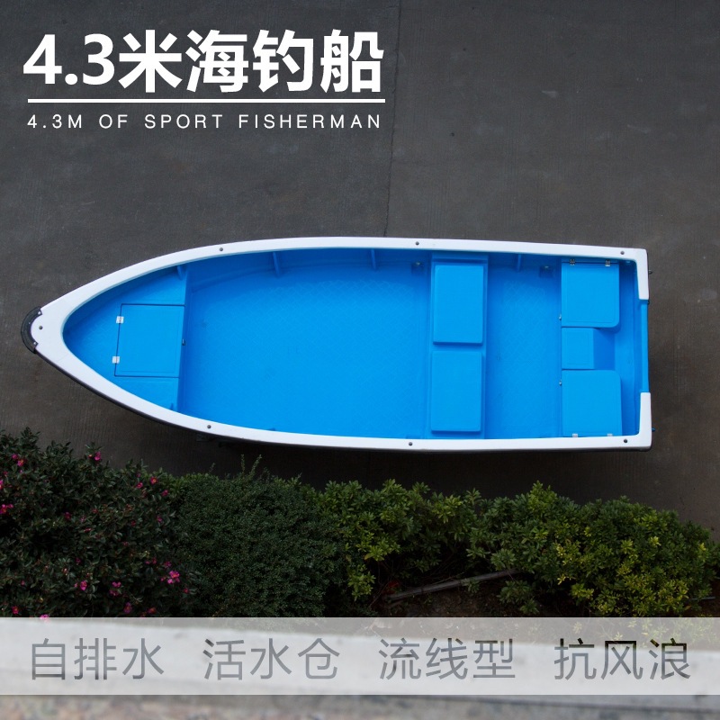 4.3米玻璃钢海钓船 带活水仓 游钓艇 自排水 捕鱼艇 运输船 渔船