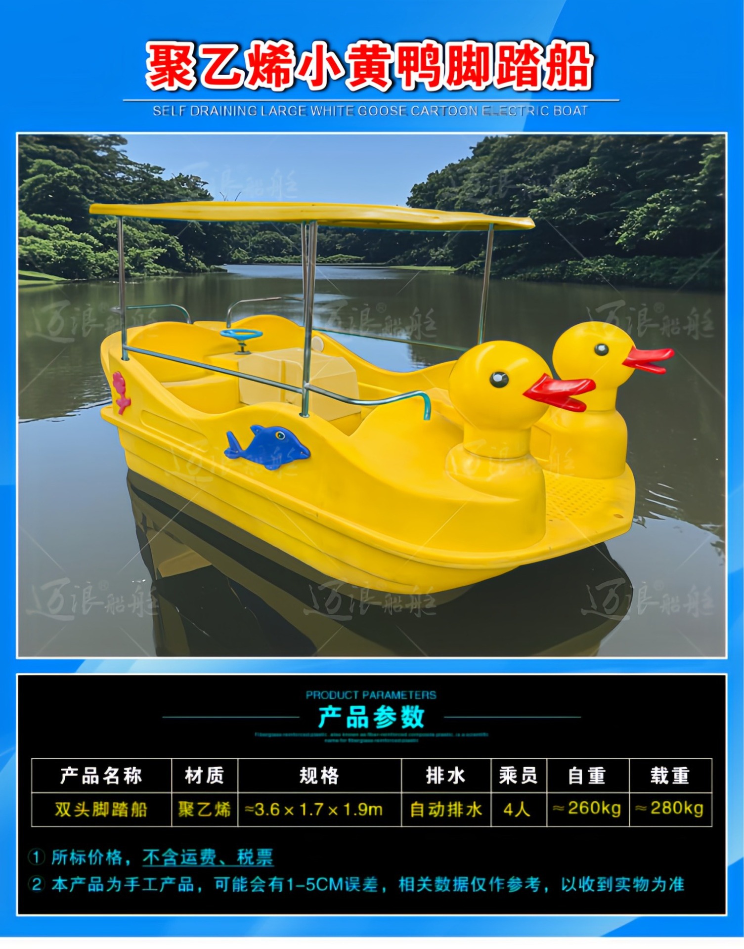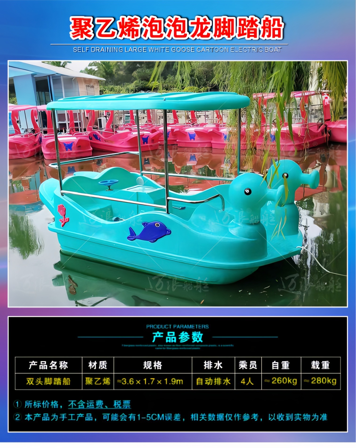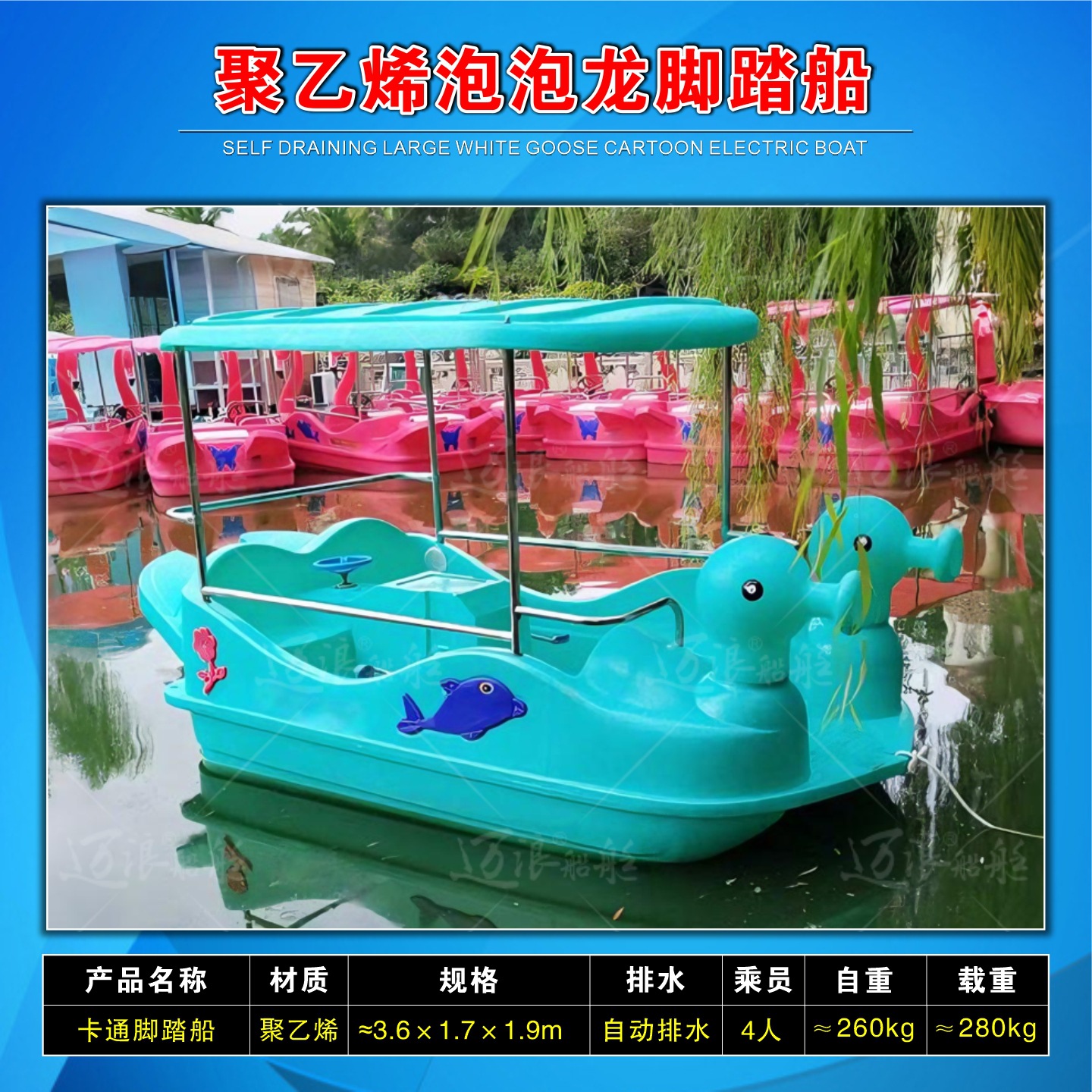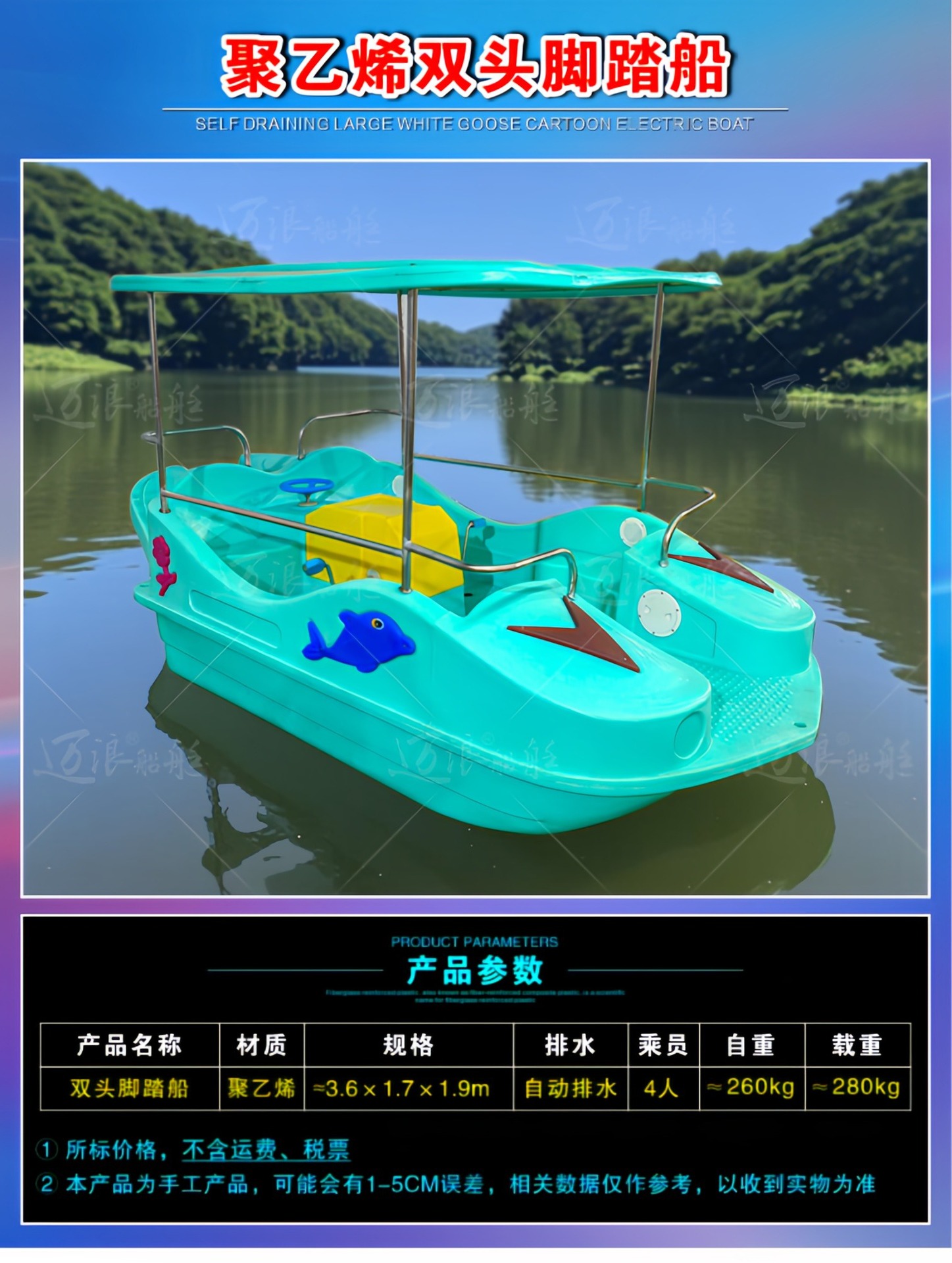 聚乙烯自排水脚踏船脚踏车 休闲观光游船 脚踩公园景区游乐设备