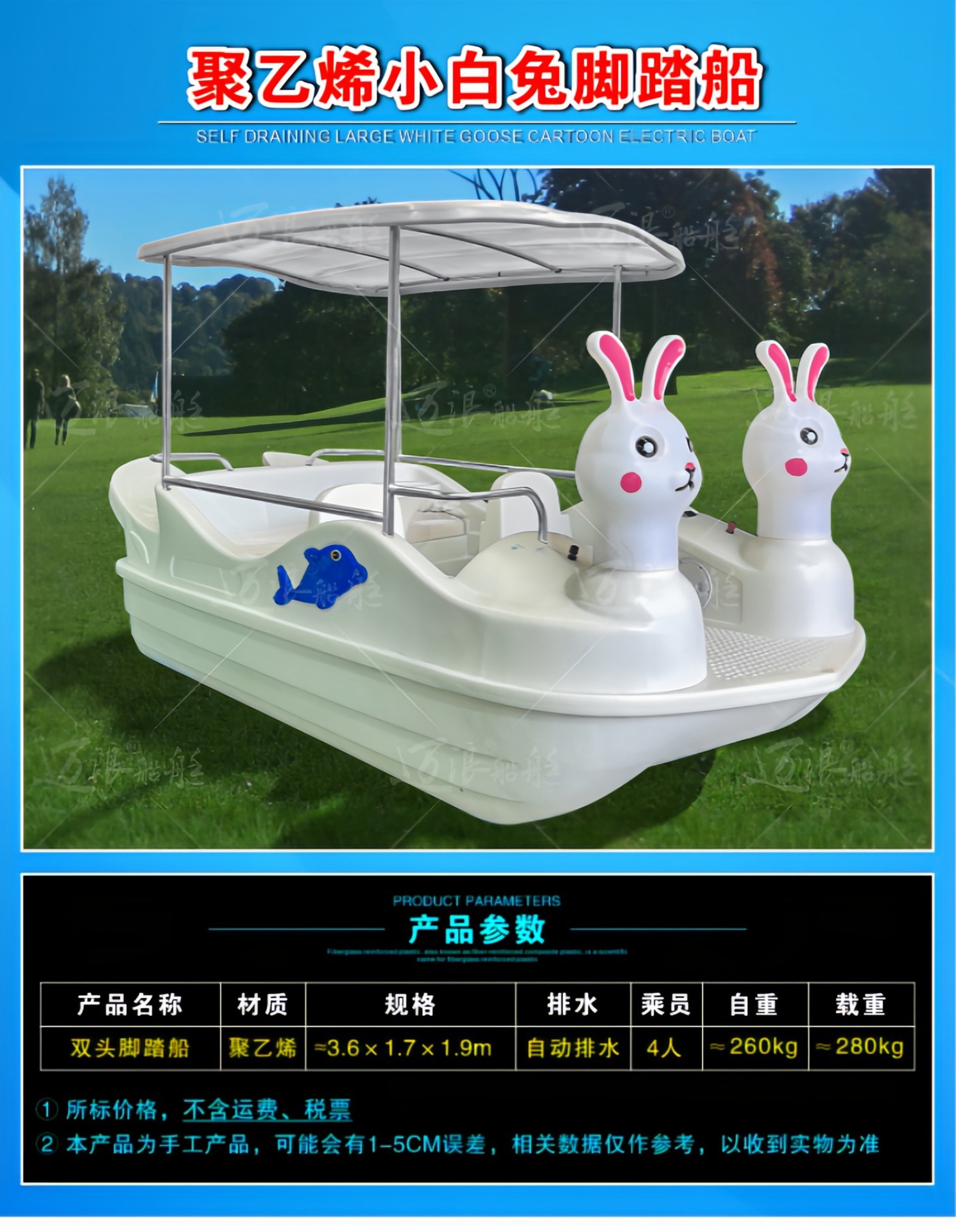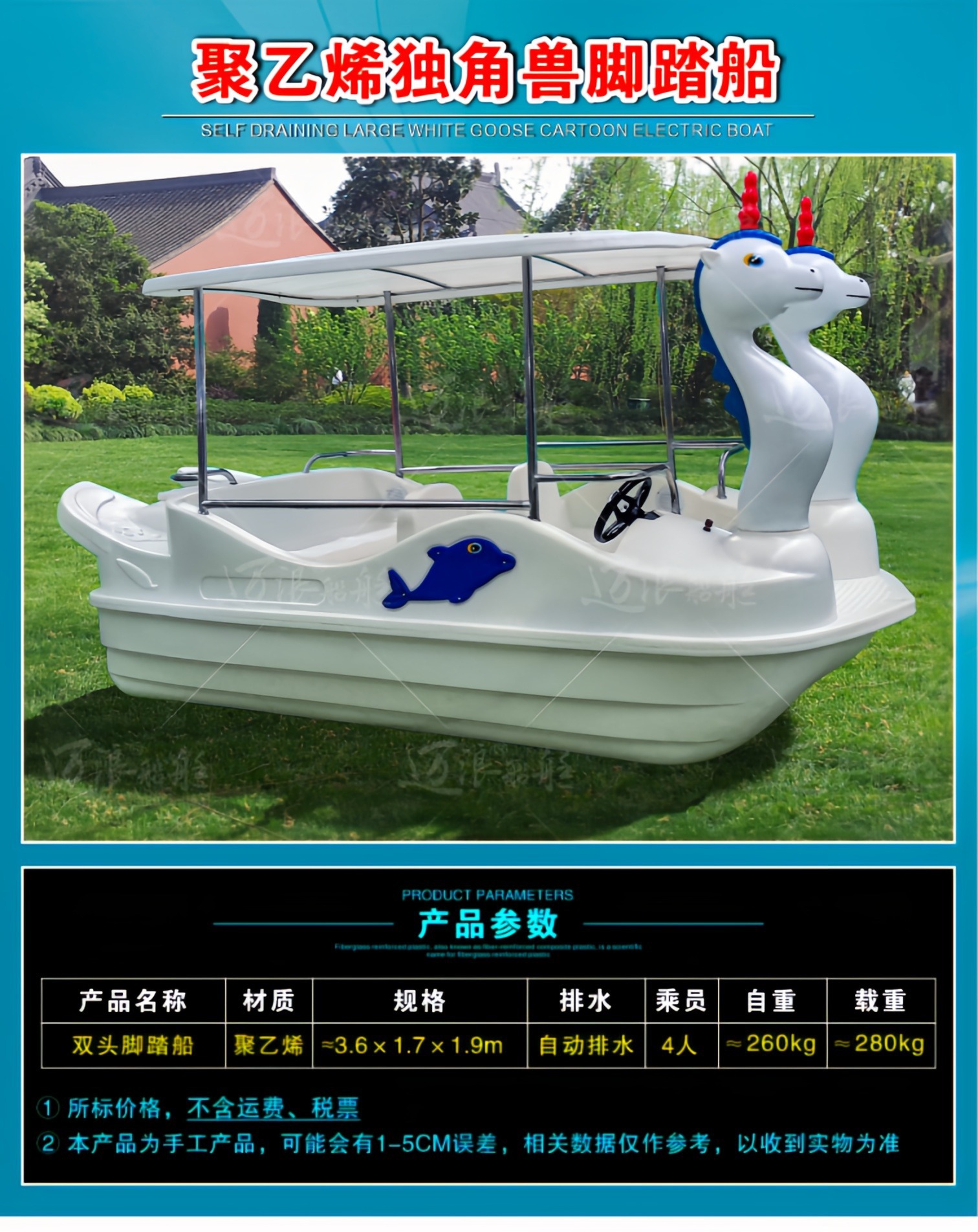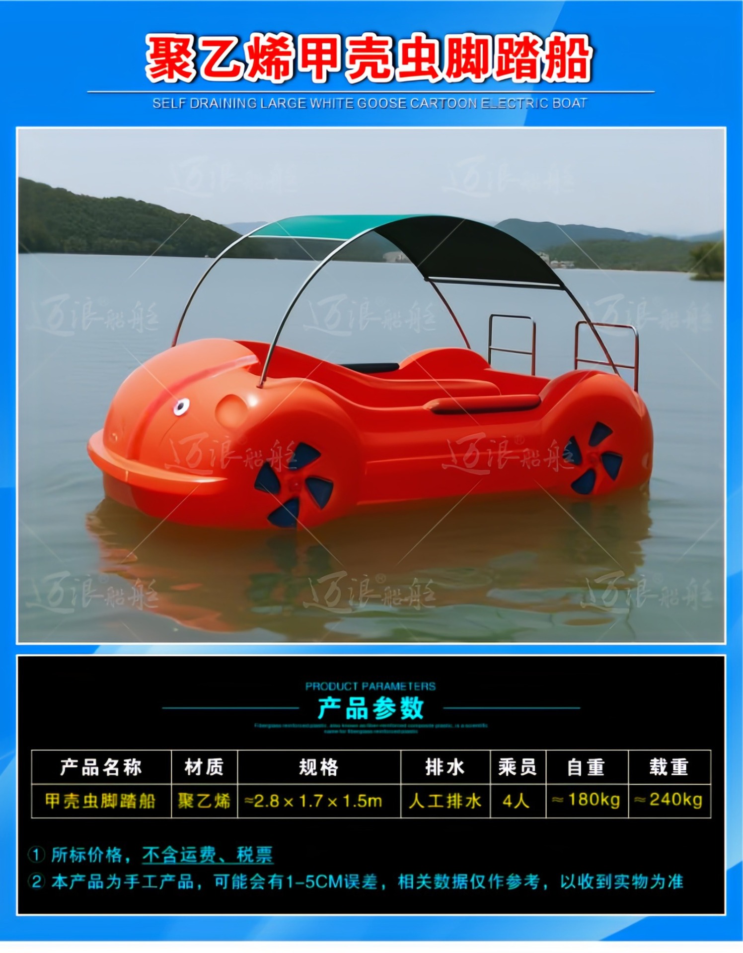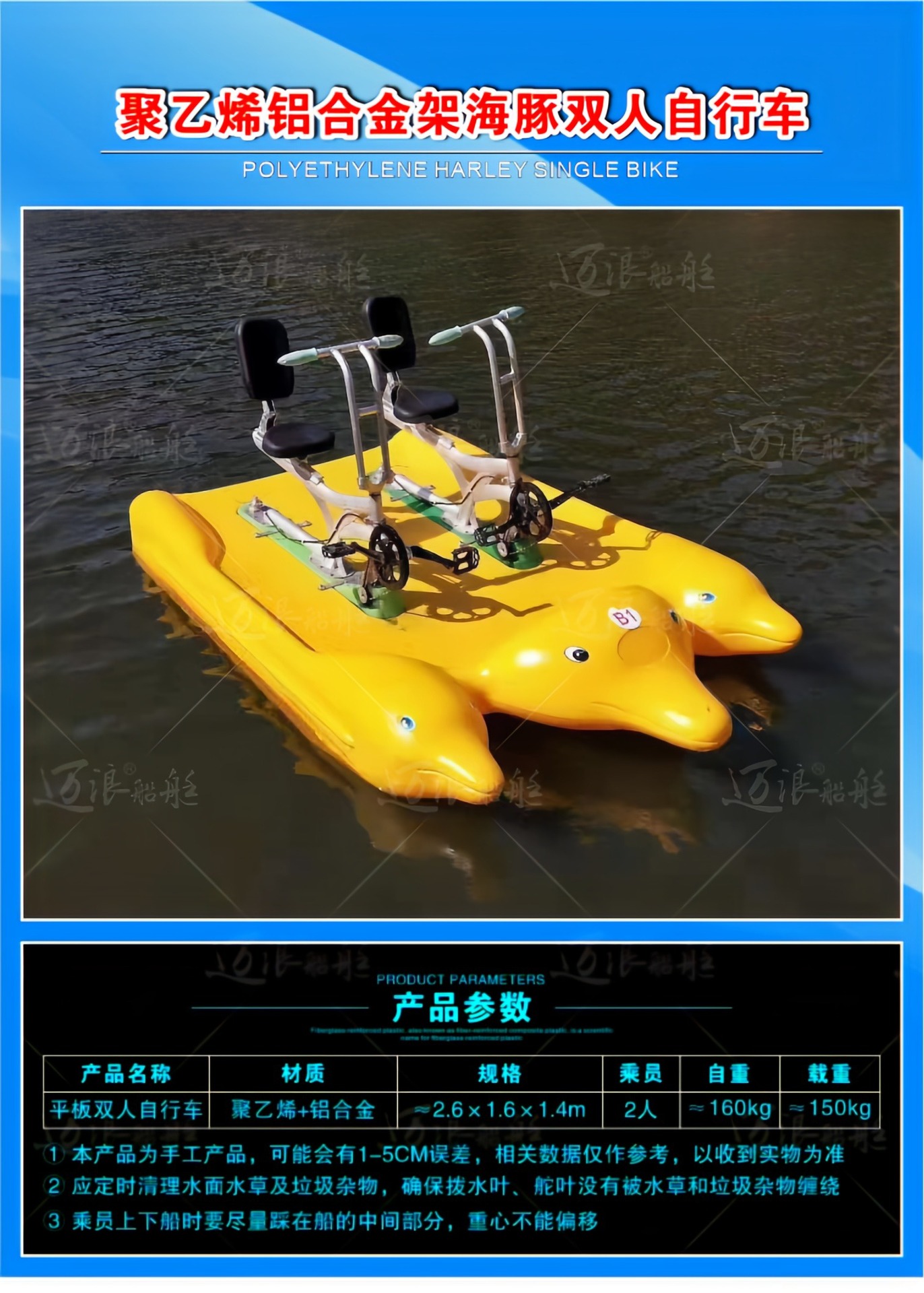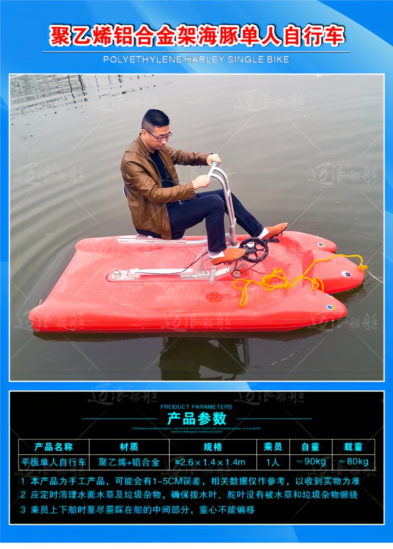 聚乙烯自排水脚踏船脚踏车 休闲观光游船 脚踩公园景区游乐设备