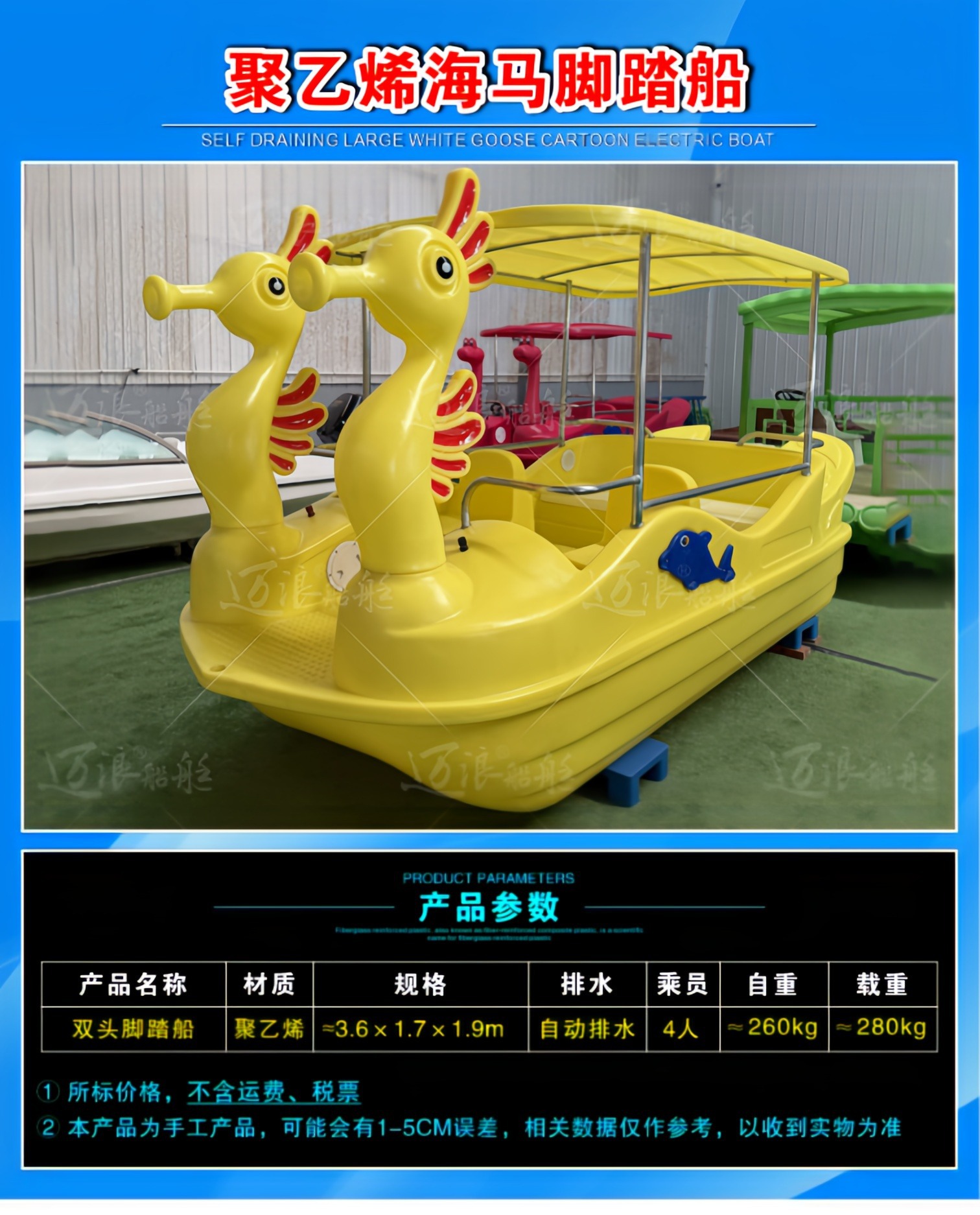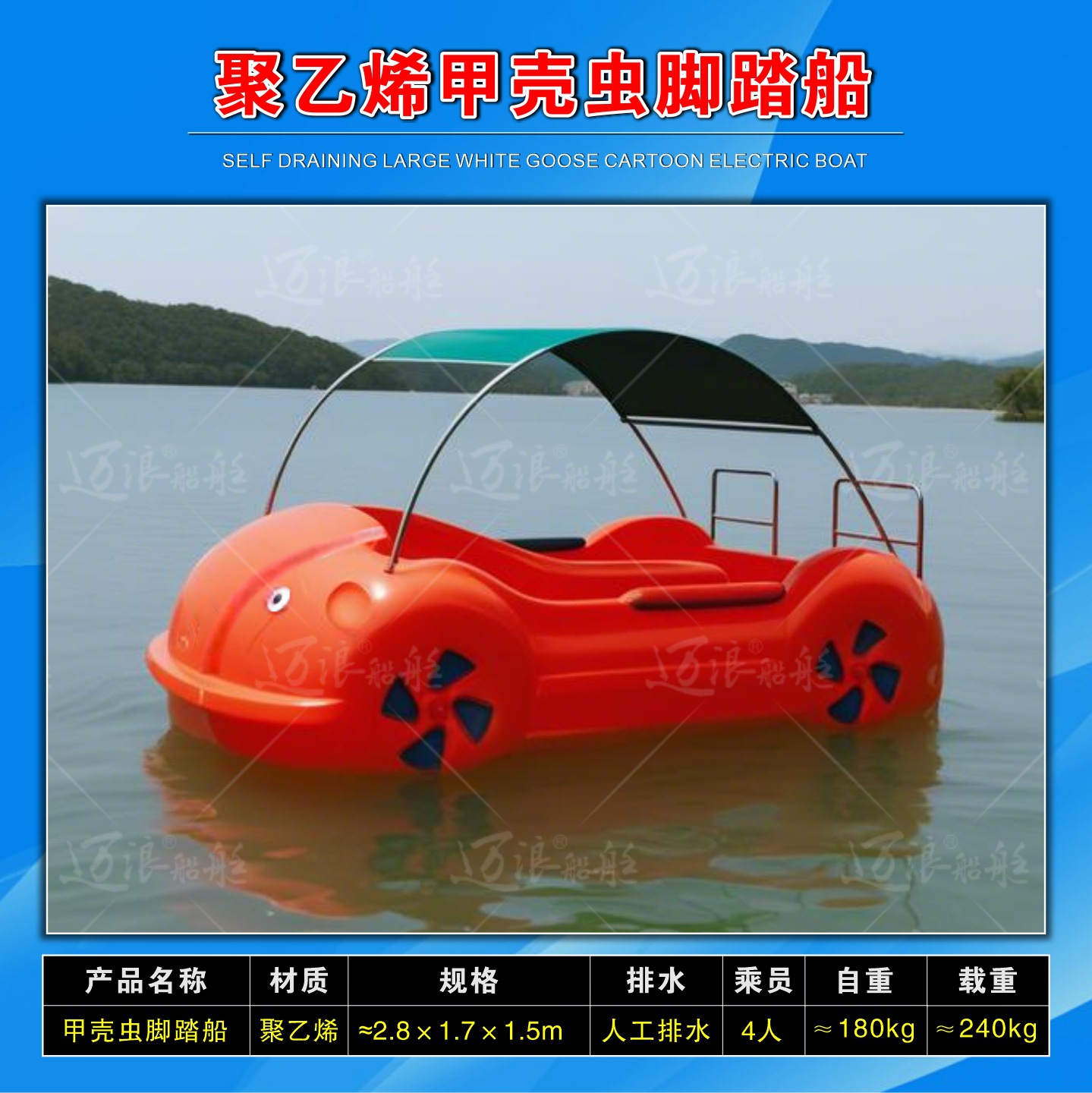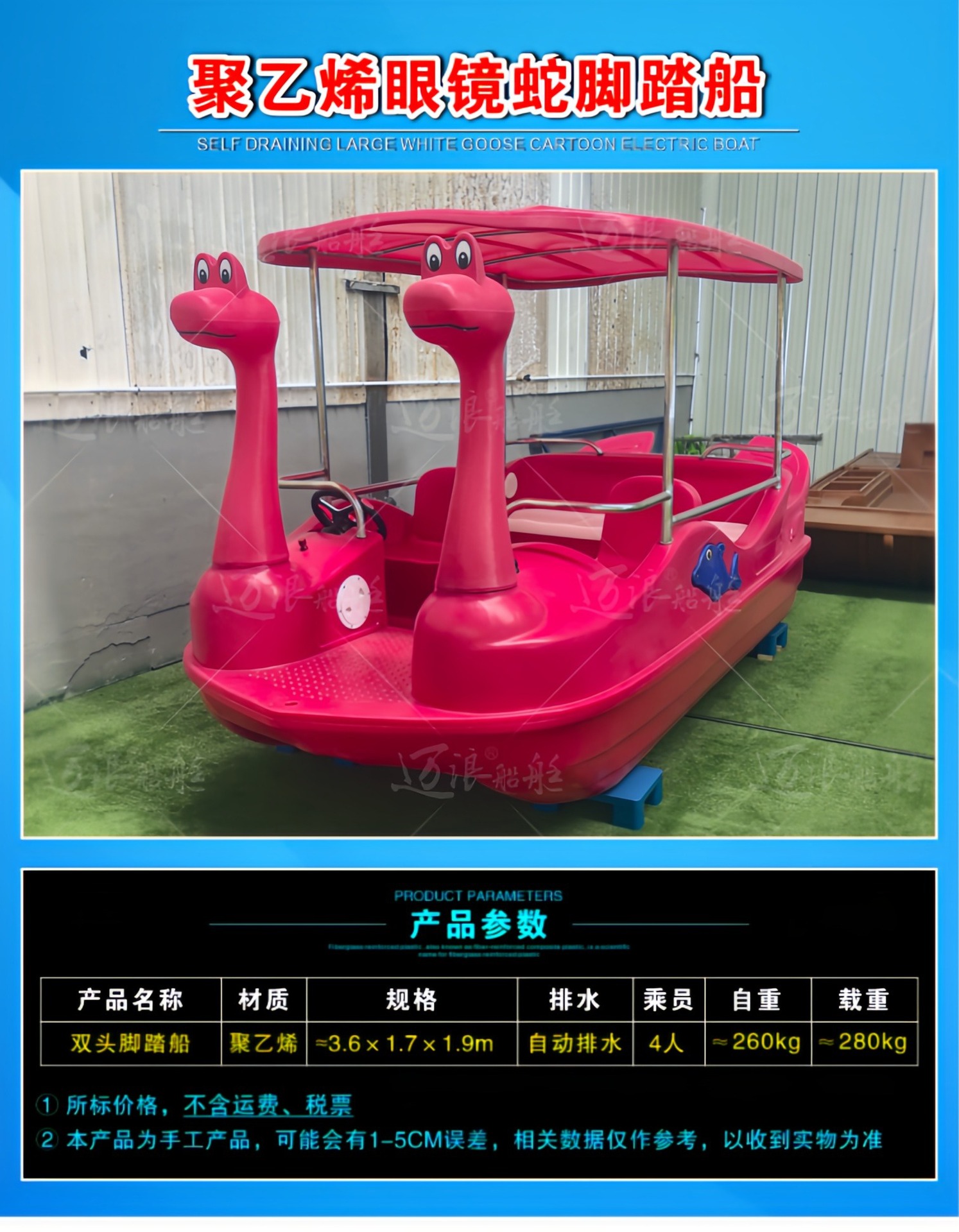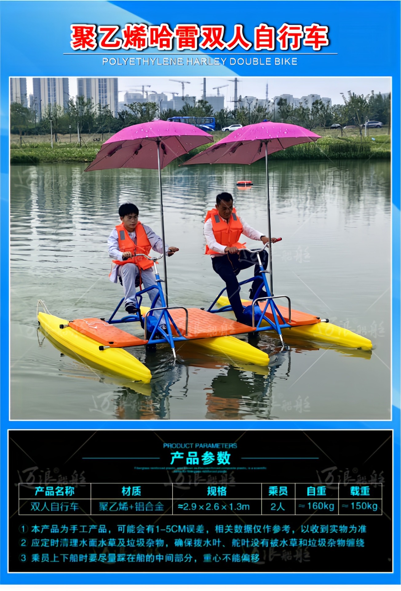 聚乙烯自排水脚踏船脚踏车 休闲观光游船 脚踩公园景区游乐设备
