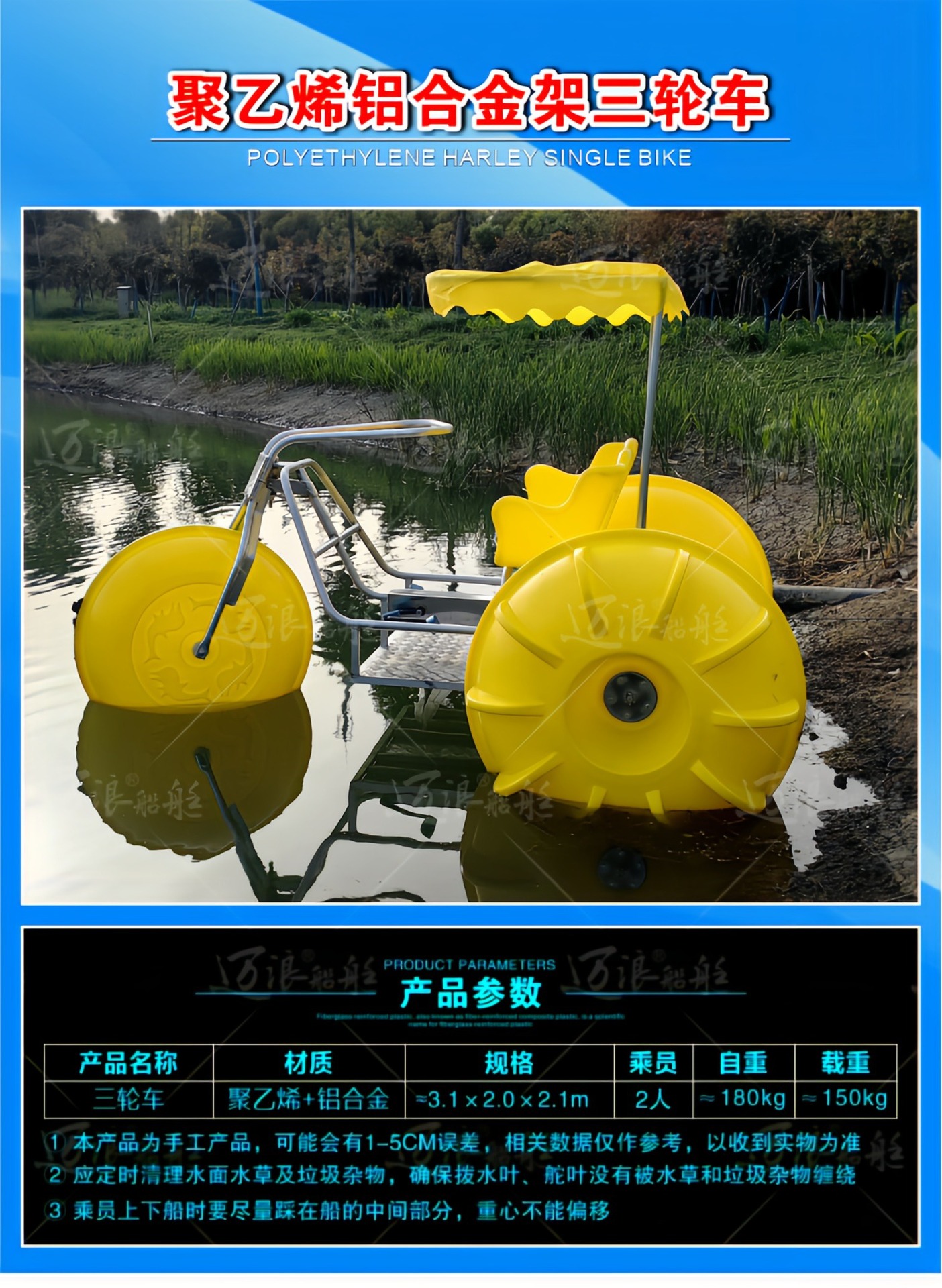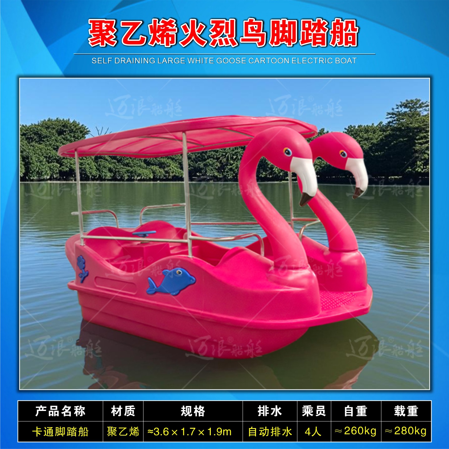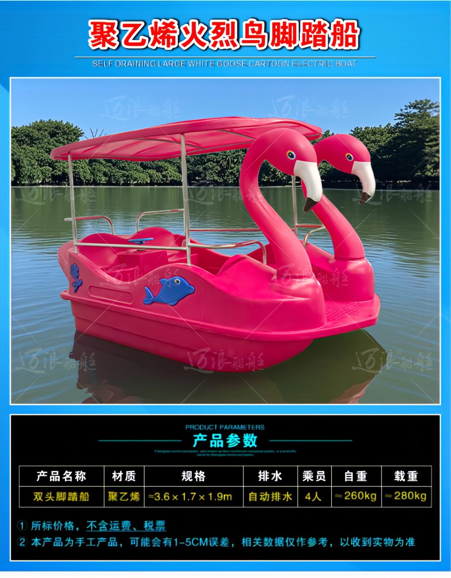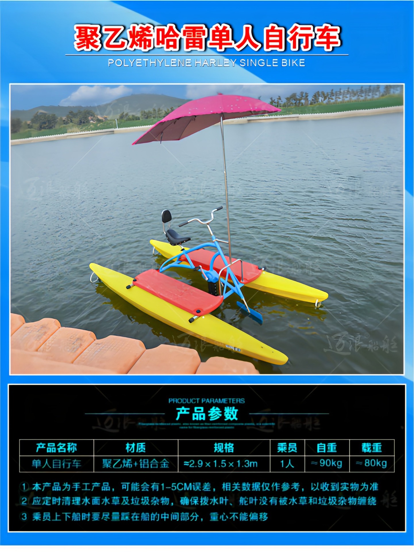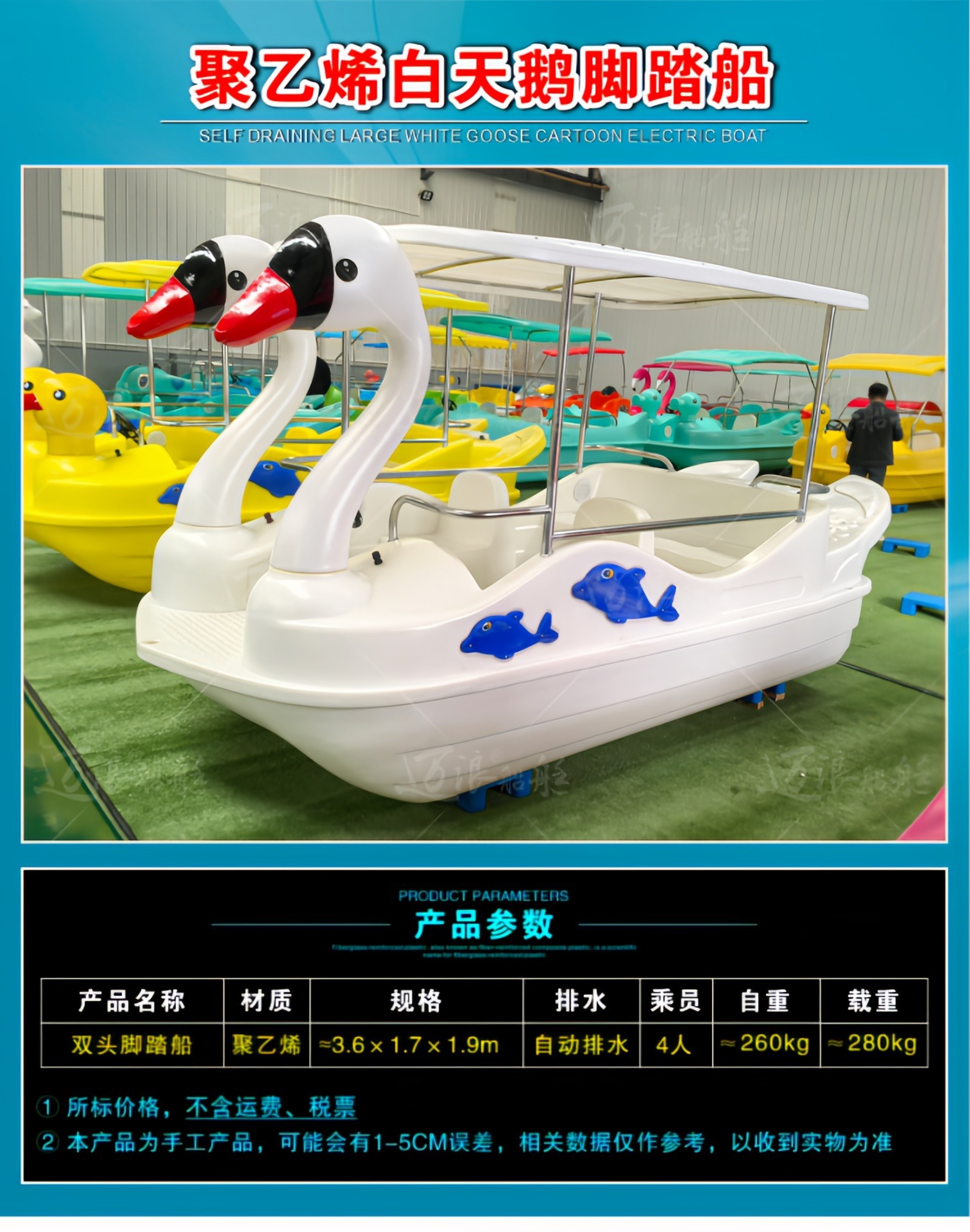 聚乙烯自排水脚踏船脚踏车 休闲观光游船 脚踩公园景区游乐设备